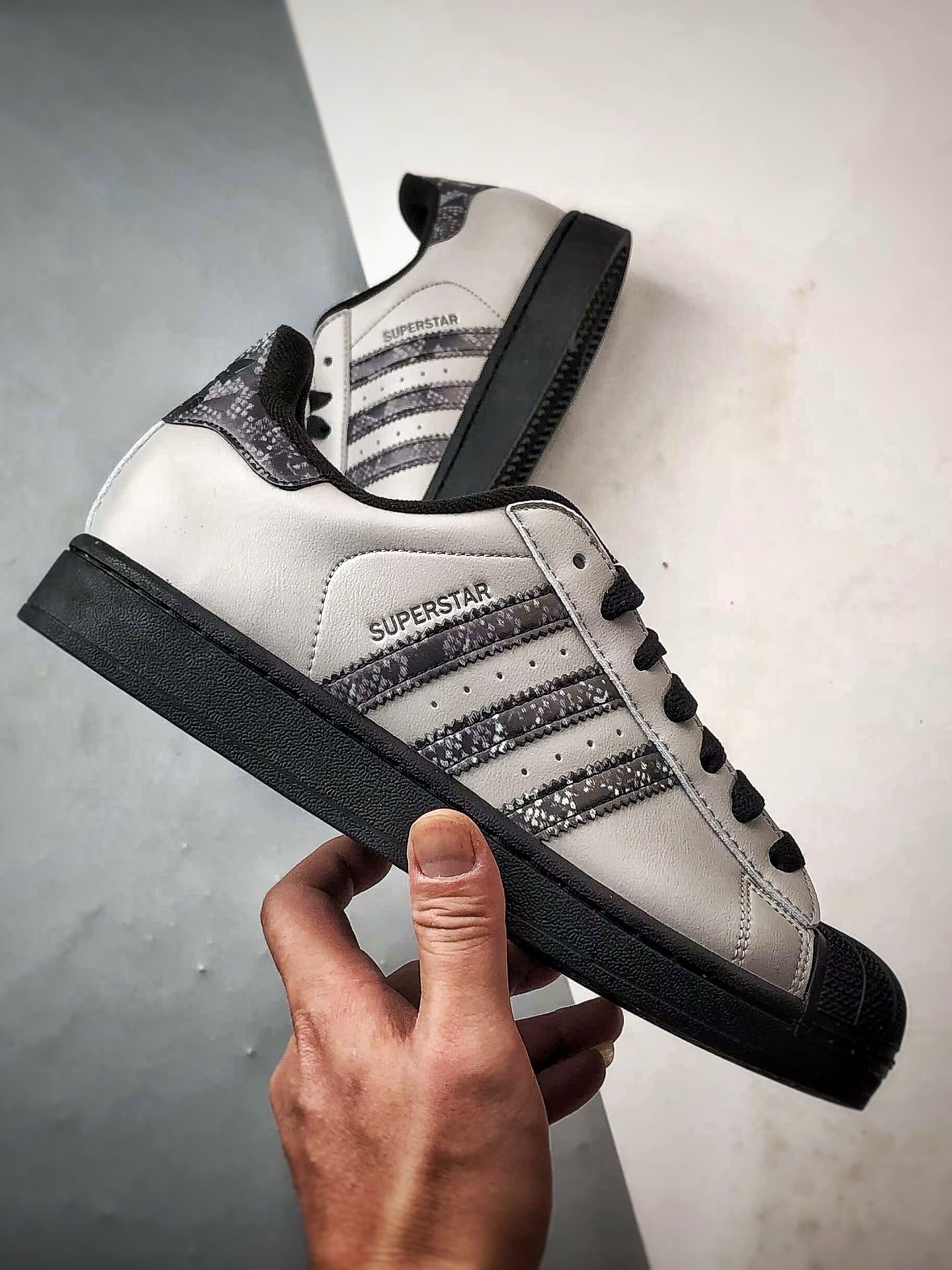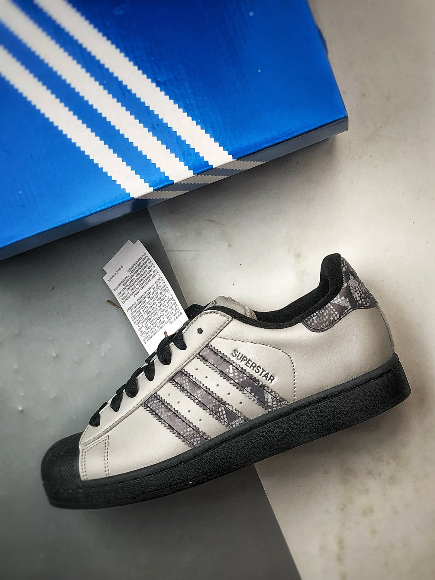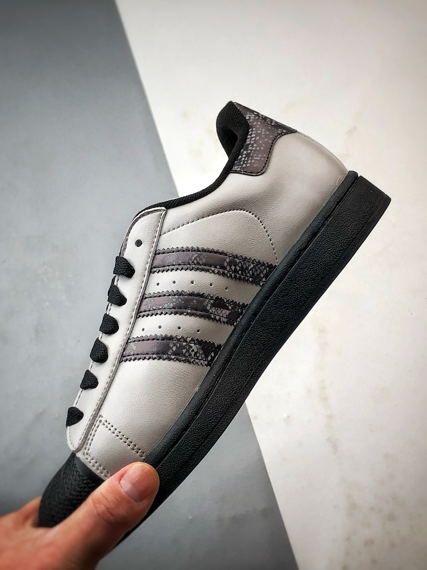 Grey-black snake print shell toe, original company-grade real shot