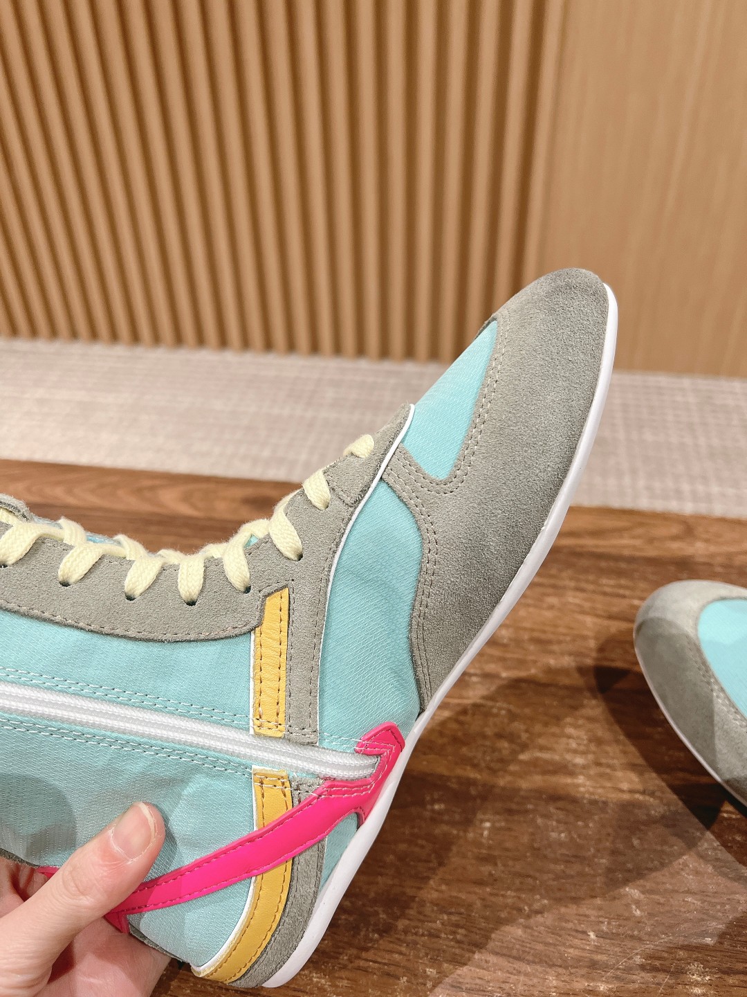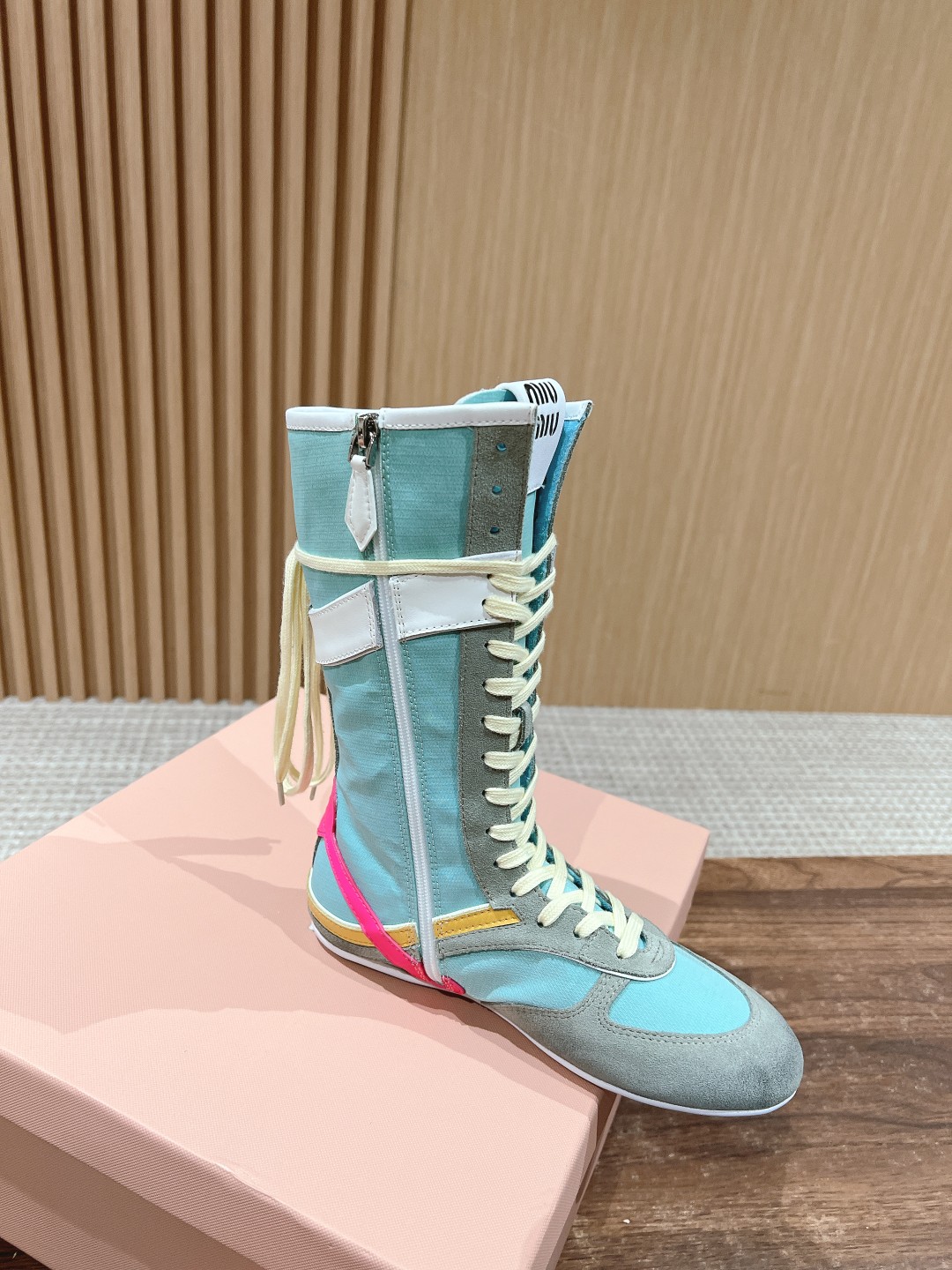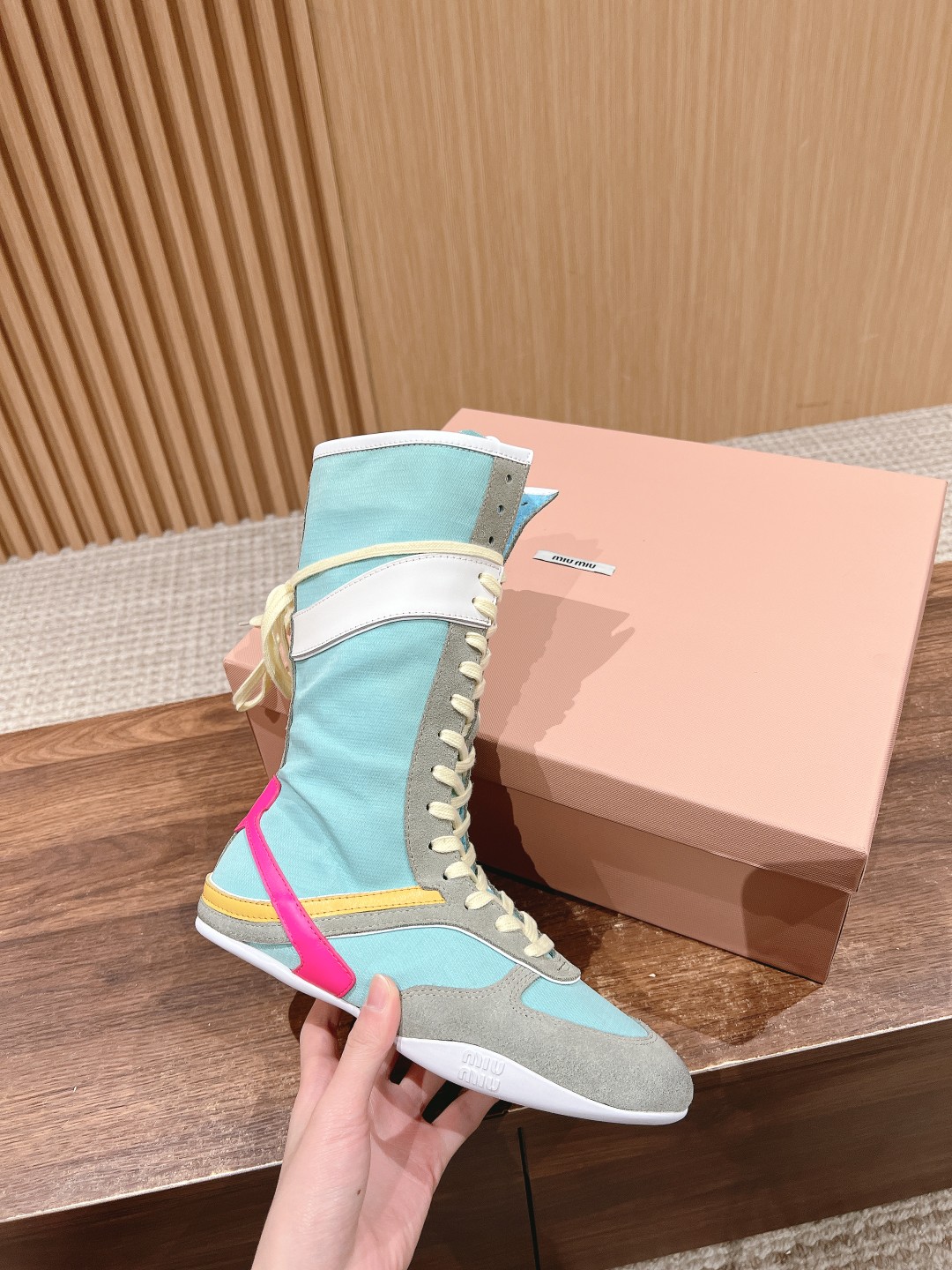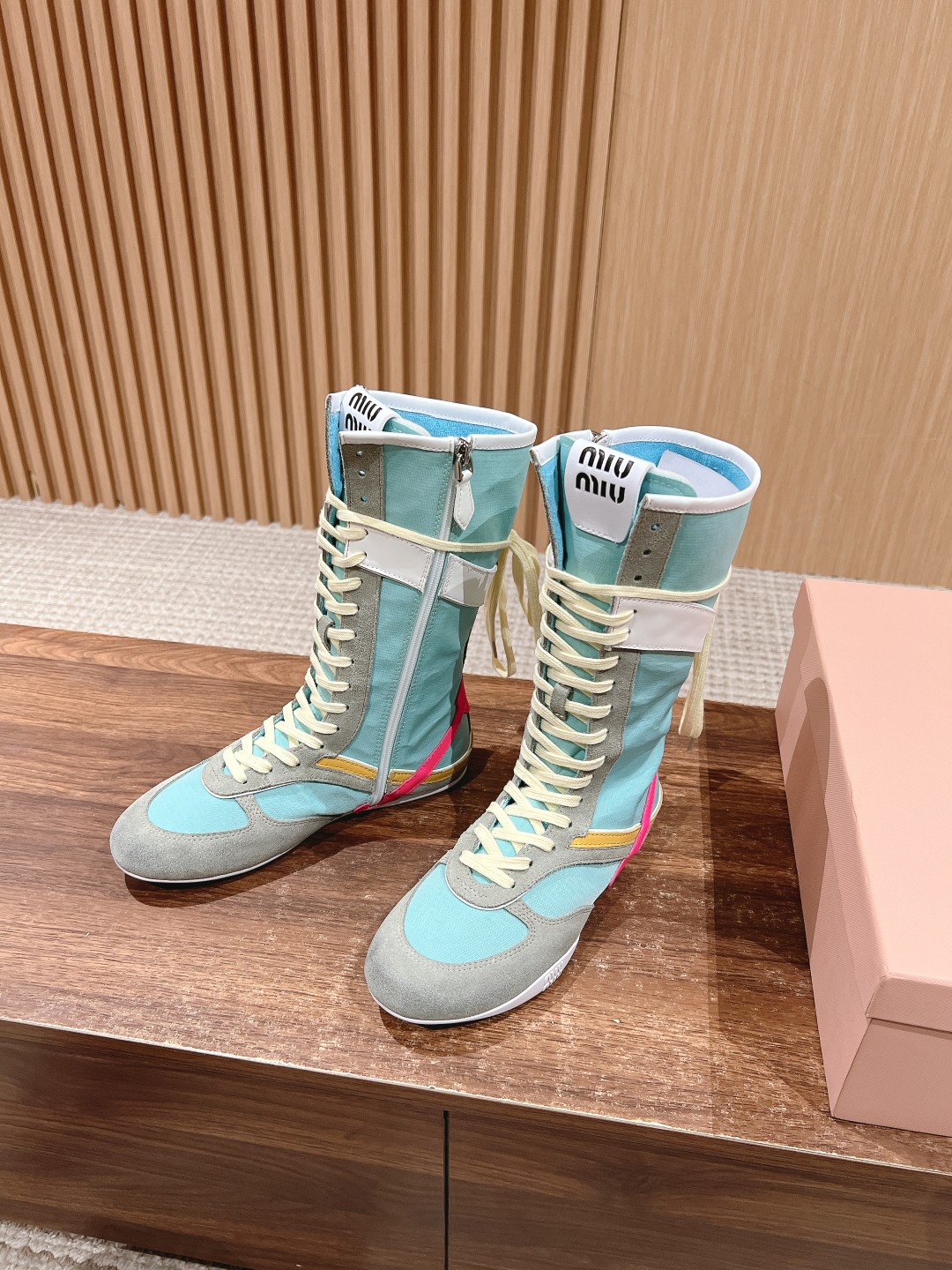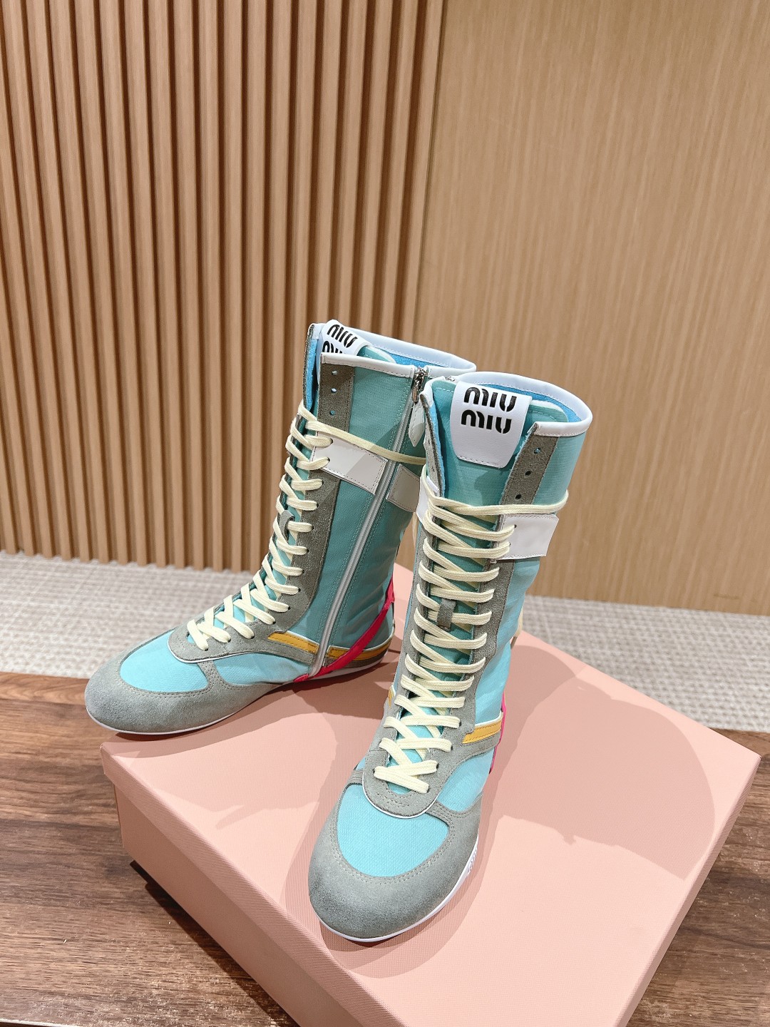 These athletic, military-training inspired casual boots, these rider boots have attracted attention. The Miu Miu and New Balance collaboration series is undoubtedly one of the most successful sneaker items in recent years. This season, Miu Miu continues this style and launched an exclusive model. The overall shoe silhouette features simple lines and a lightweight sole design, with bold and fashionable color schemes~ It is believed it will