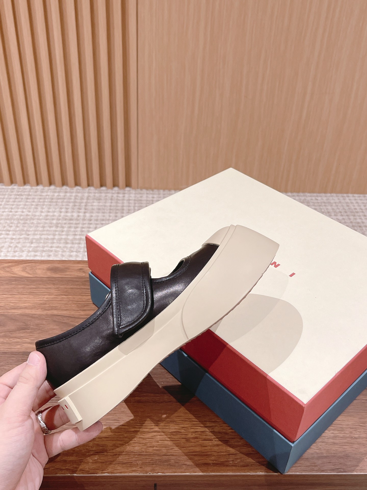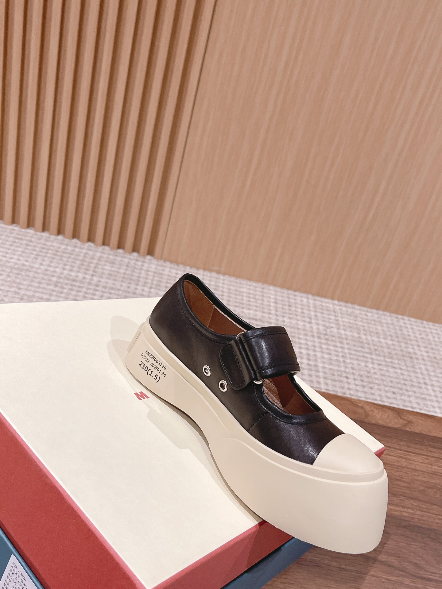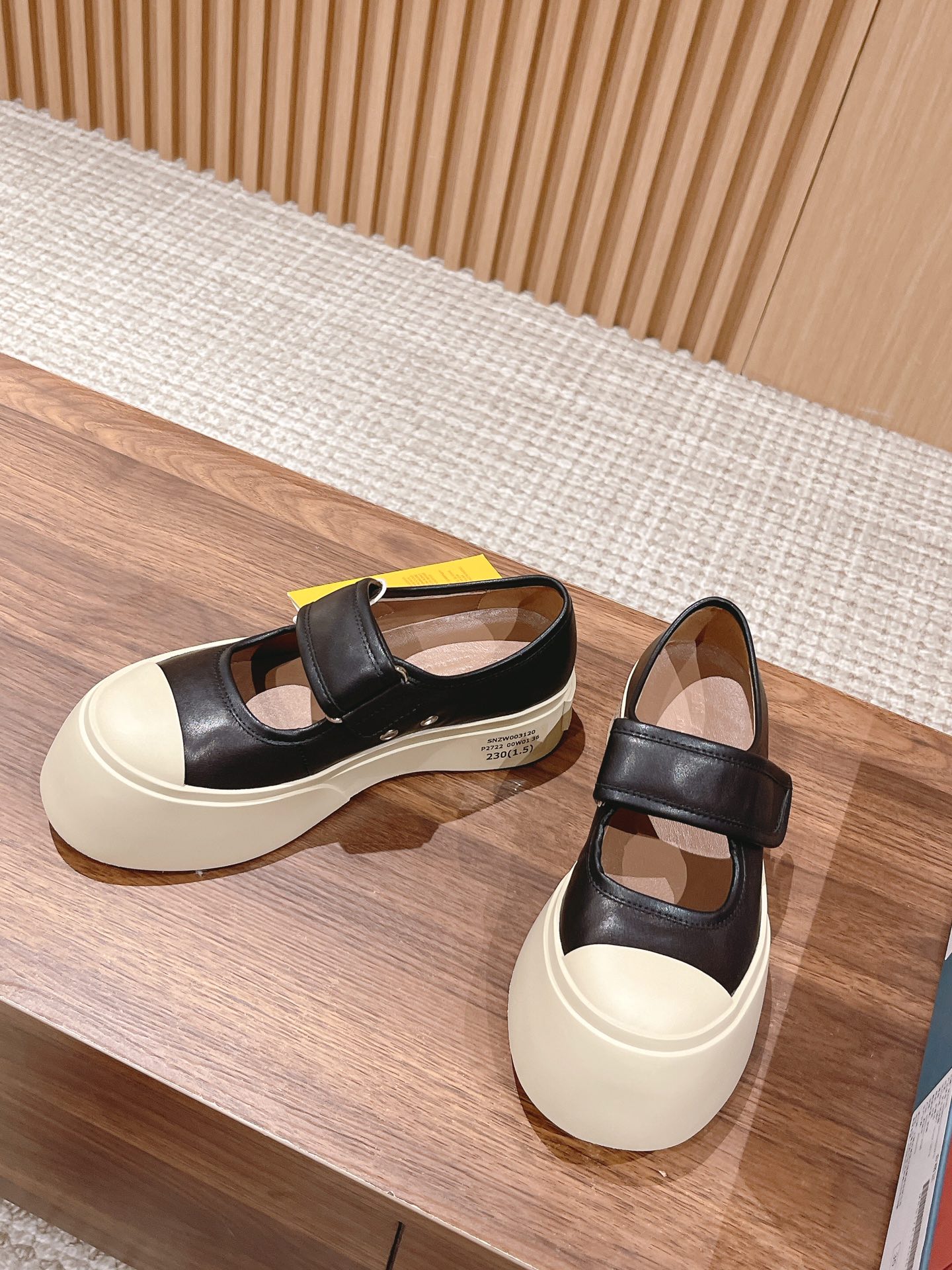 [Top Version] [#Strap Leather Upper] MARNI's latest women's platform shoes, very high-end and comfortable, both white and black are easy to maintain, excellent feel on foot, completely comfortable, mainly makes feet look slender! Also adds height, the large toe cap gives a cute feel, makes people want to touch them, very versatile, there's nothing it can't match. Original specific cowhide material, lambskin lining, lambskin insole, exclusive molded sole. The toe is round, the sole is height-increasing, can be paired with skirts or pants, sweet or cool, makes you look taller and legs slimmer. While increasing height, it doesn't lose fashion sense and is very comfortable, the kind of shoe that gets softer the more you wear it. Always thought platform shoes would be particularly bulky, but surprisingly they are super great and elegant on foot, and very light. Most importantly, the leather upper is super easy to maintain, just wipe with a wet tissue and it's clean, go out beautifully to watch a movie. Size: 35-40M