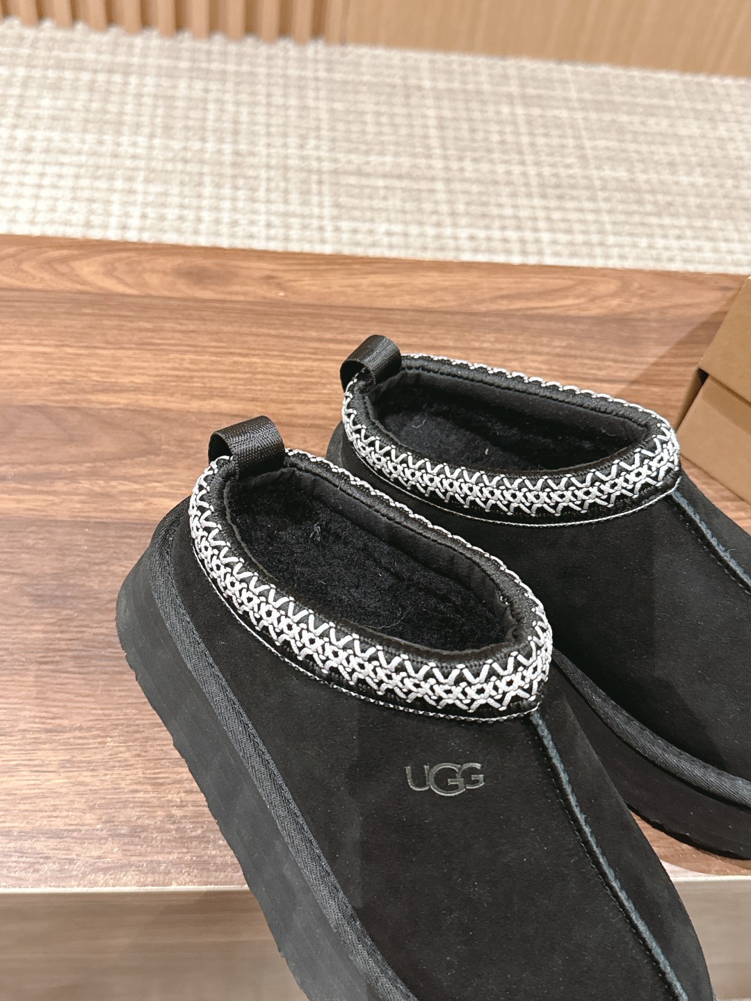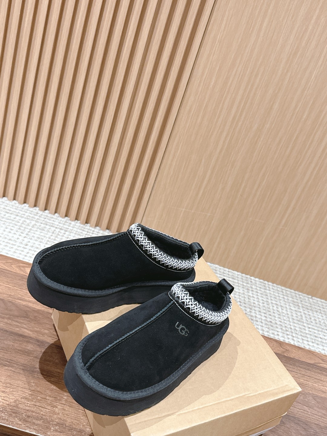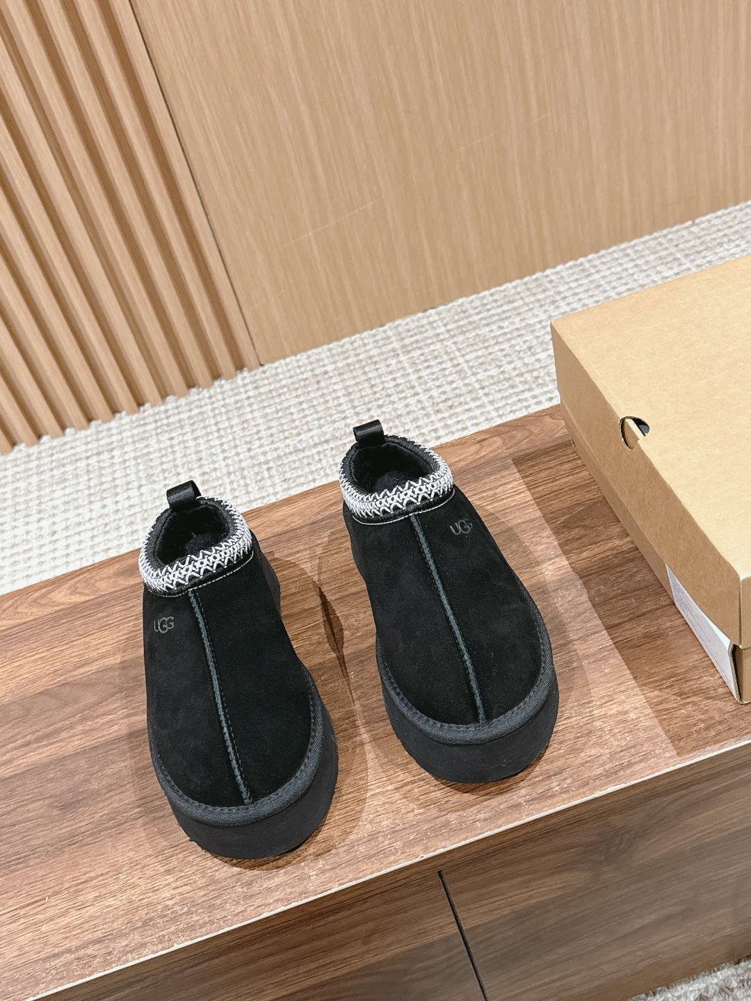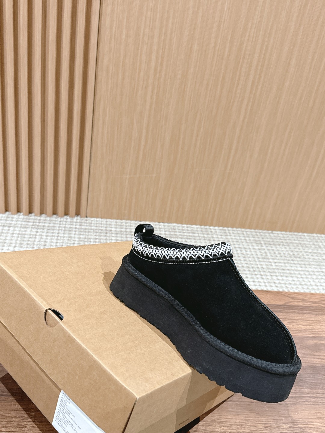 [Top Version] [Dongguan Production] UGG Tazz Suede #Autumn Winter New Product Tazz Platform Slippers. The new furry slippers feature ethnic style woven embroidery, retro and stylish. Super comfortable slip-on design, worn by many celebrities. How popular it is on Instagram and Xiaohongshu, no need to say more – it sells out as soon as the season hits! Luxuriously thick and plush fur, integrated with the leather. PVC foam ultra-light sole, sole thickness about 4cm. Size: 35-39 (Size 40 is custom-made and non-returnable).