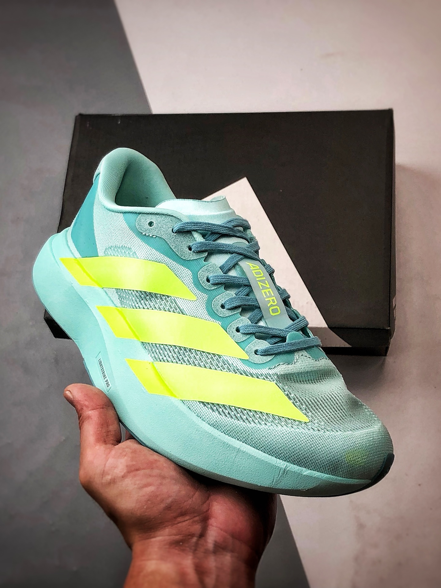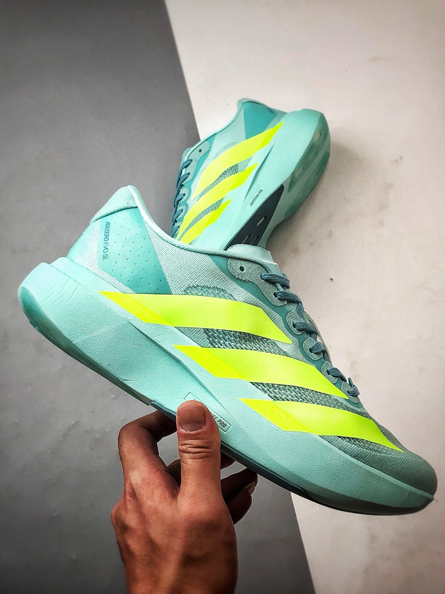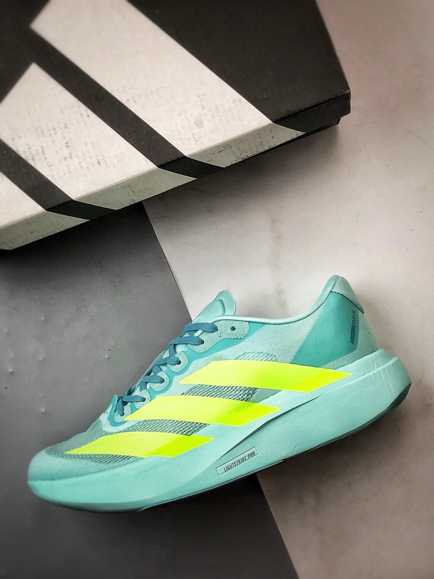 Everyone must still remember the "top supercar" that adidas suddenly released last year, the adiZero Adios Pro EVO 1! Not only did it claim the title of the lightest running shoe in Adidas history, but it also continued to achieve astonishing results in subsequent global marathon events, earning it the nickname "Adidas God Shoe" as it flooded the internet! The minimalist design language and the strong sense of speed and presence from the three stripes on the side make it unforgettable and highly desirable! Among them, the adidas Adizero Evo SL, positioned for middle and long-distance running training, has an overall appearance very similar to the adiZero Adios Pro EVO 1. In terms of midsole configuration, it features full-length Lightstrike Pro, and the upper uses a breathable mesh, aligning with the positioning of daily training shoes for greater durability. The outsole is equipped with Continental rubber and a distribution similar to the previous generation's racing flagship, the adidas Adizero Adios Pro 3. Overall, whether it's the distinct visual identity or the solid configuration, it's top-notch.