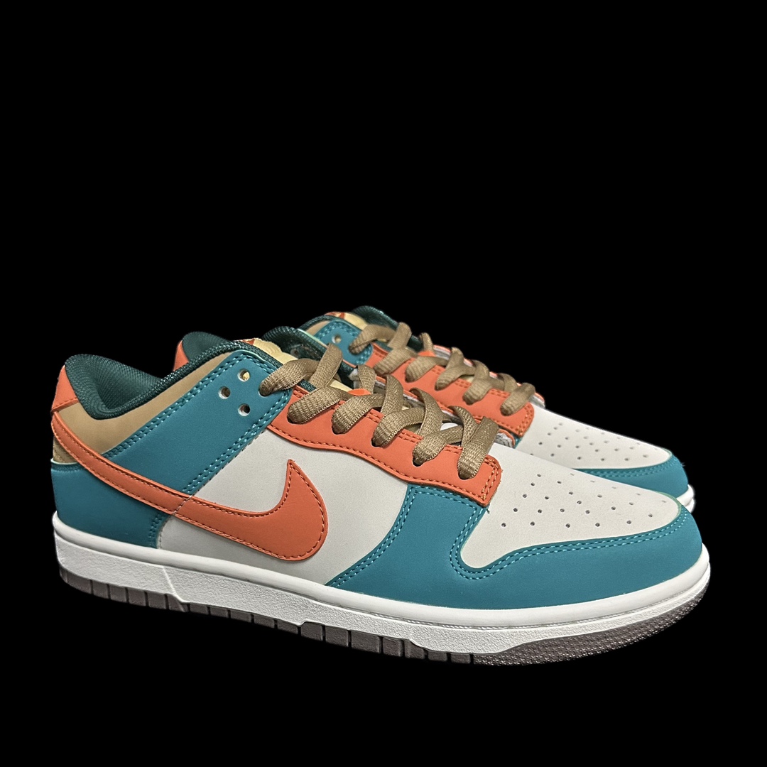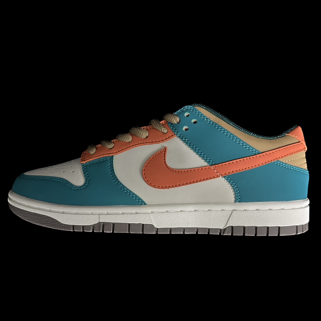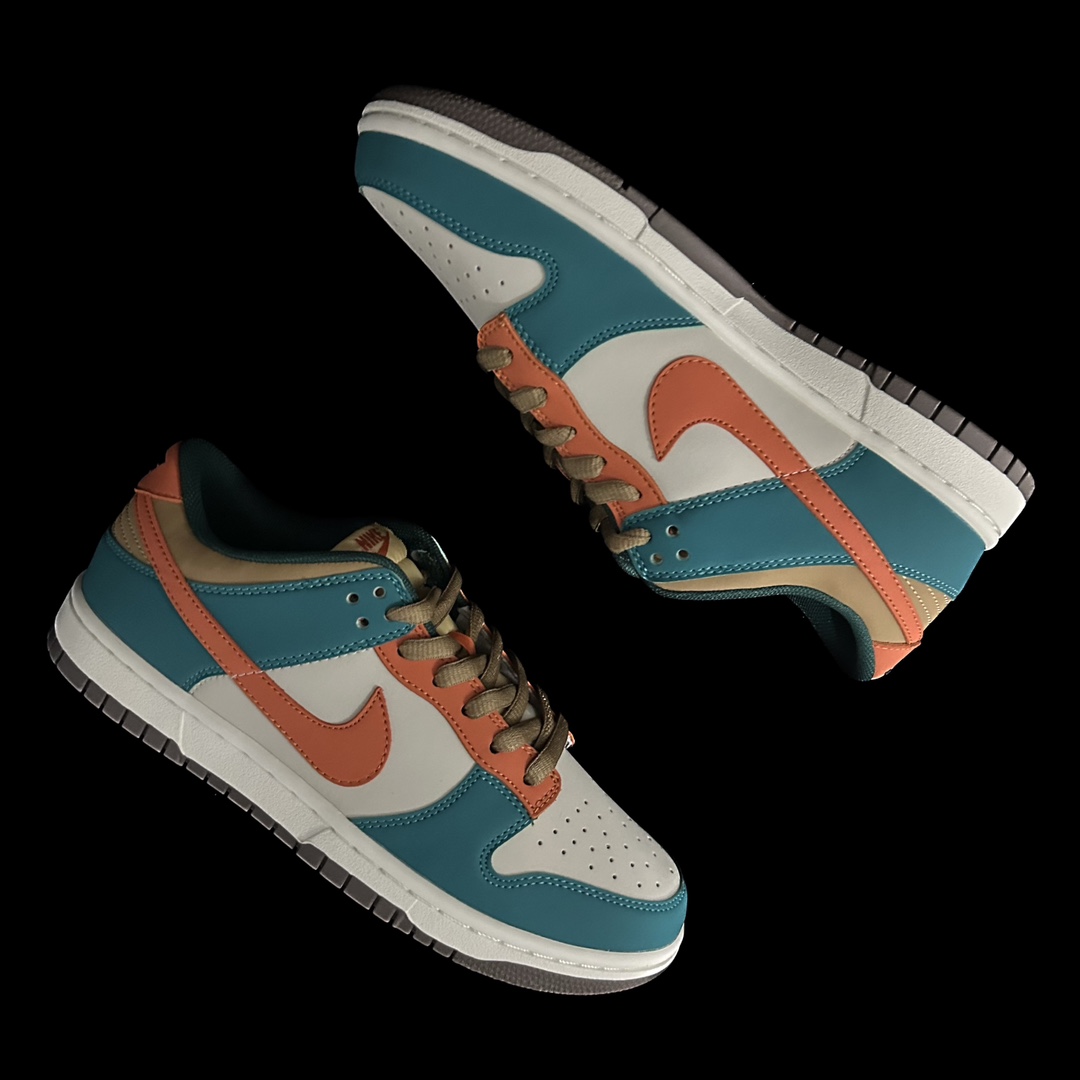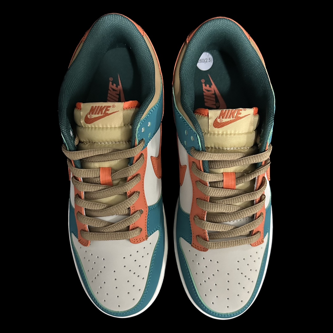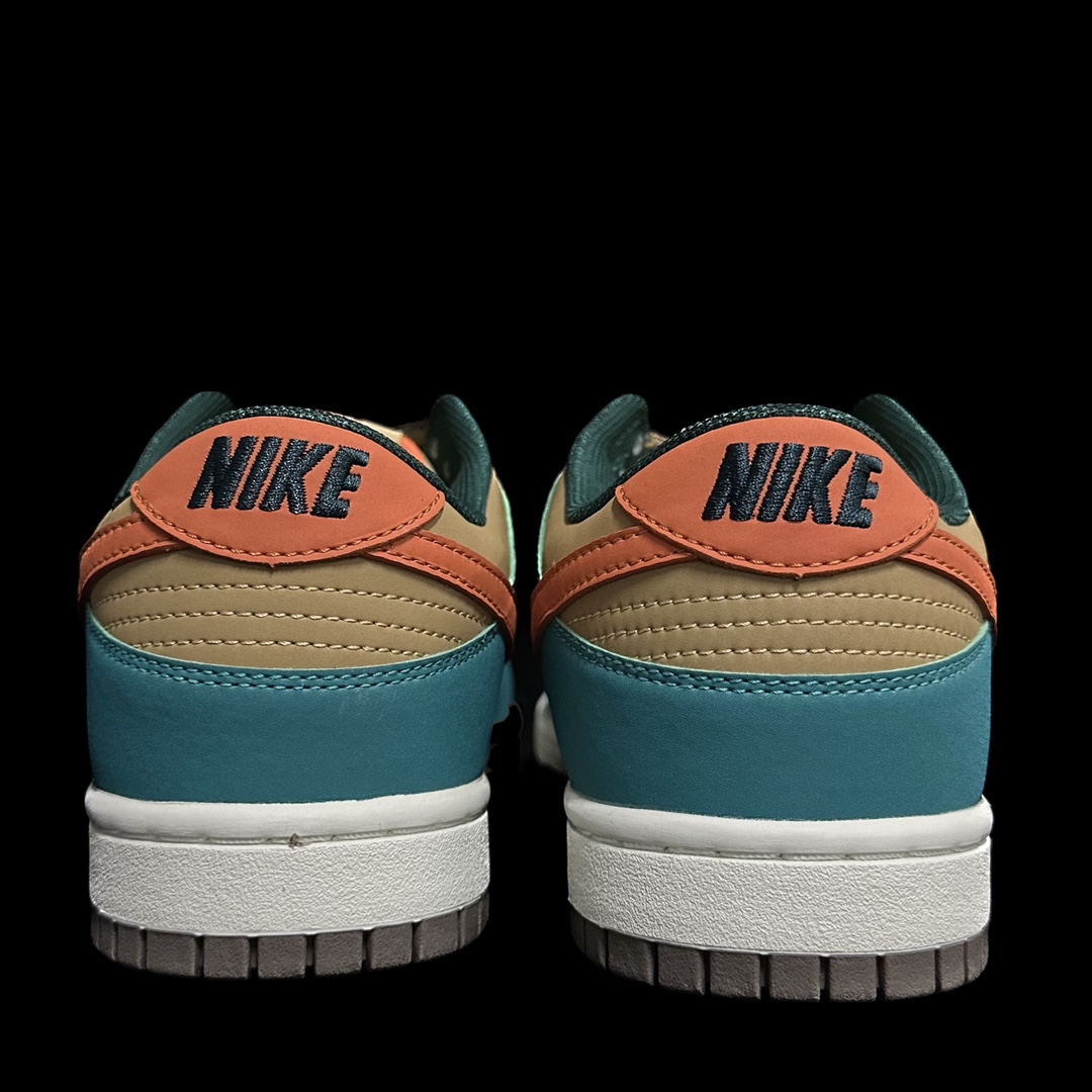 This shoe is entirely crafted from suede, featuring green and orange as the main color scheme, with yellow accents on the Swoosh and heel. The tongue and heel are combined with blue, creating a very eye-catching overall visual effect.