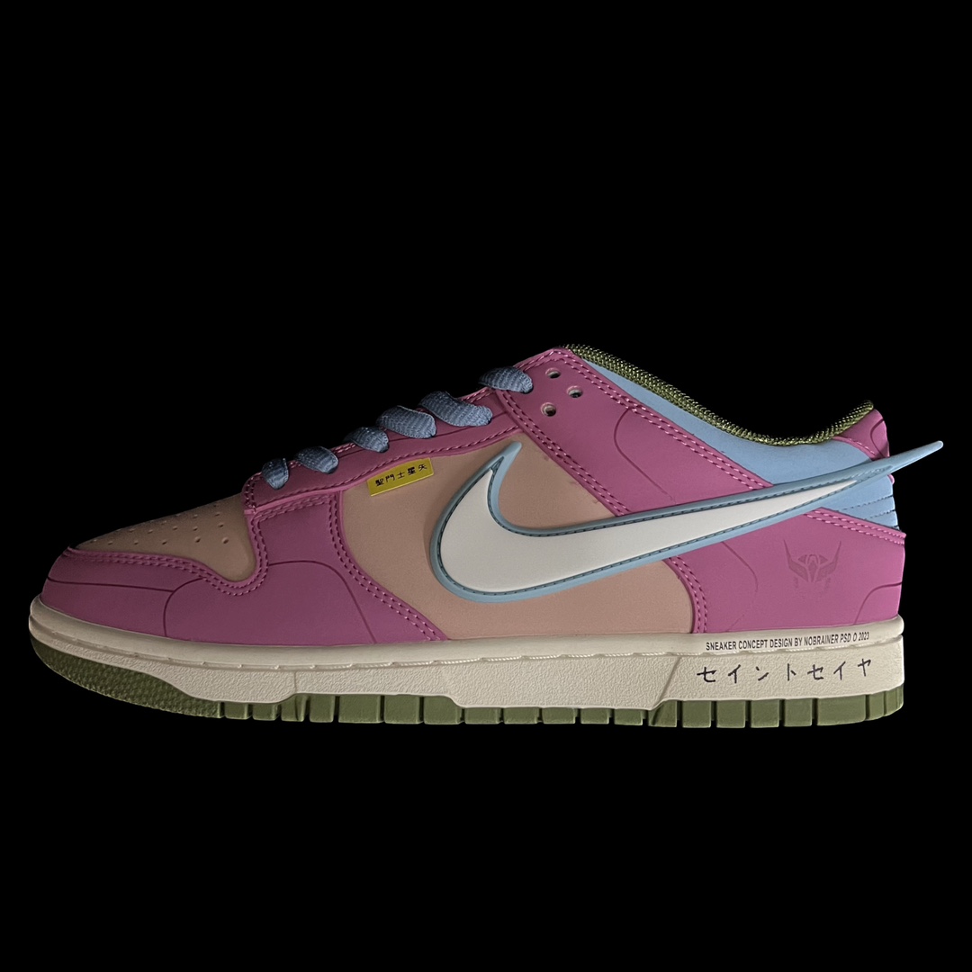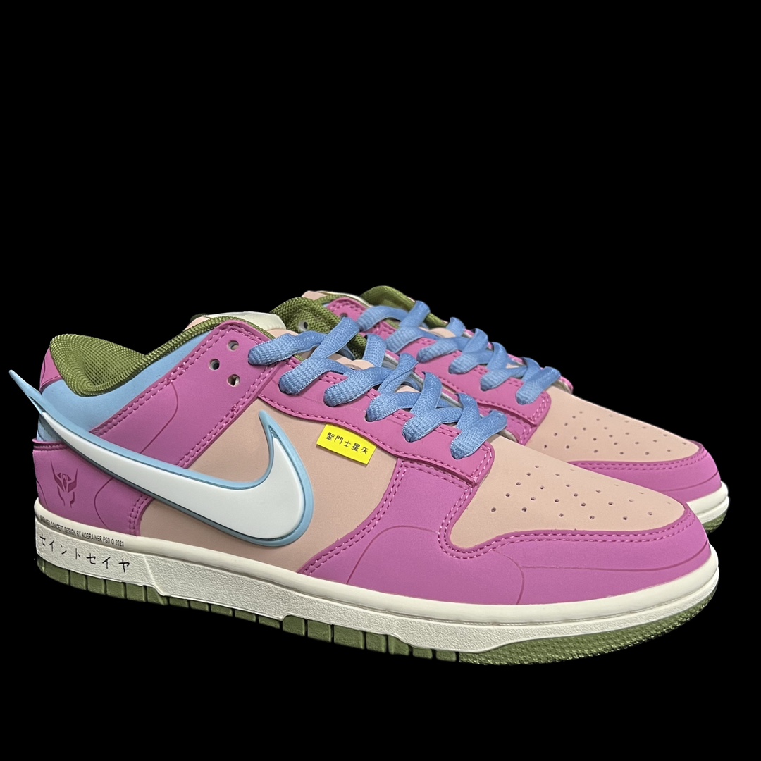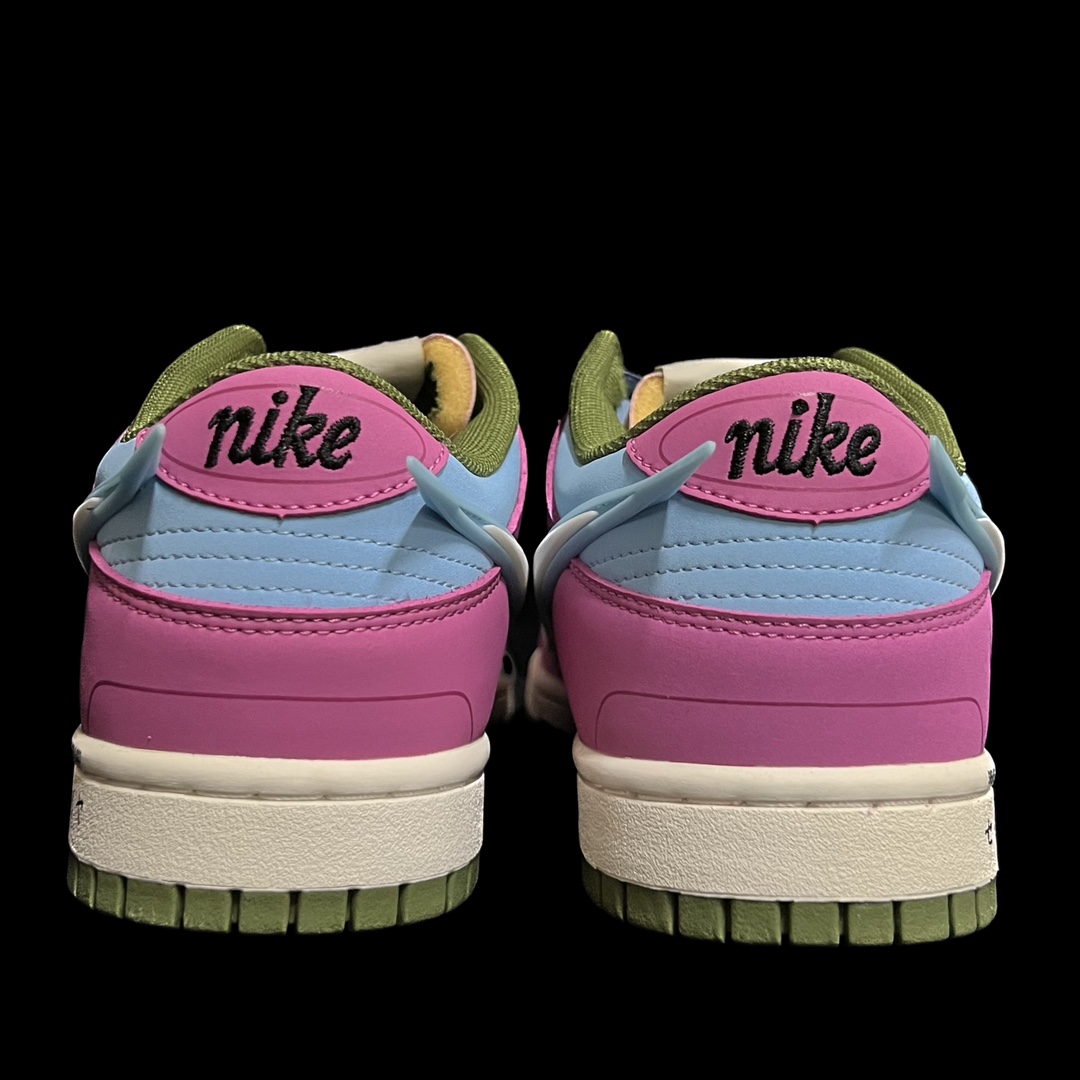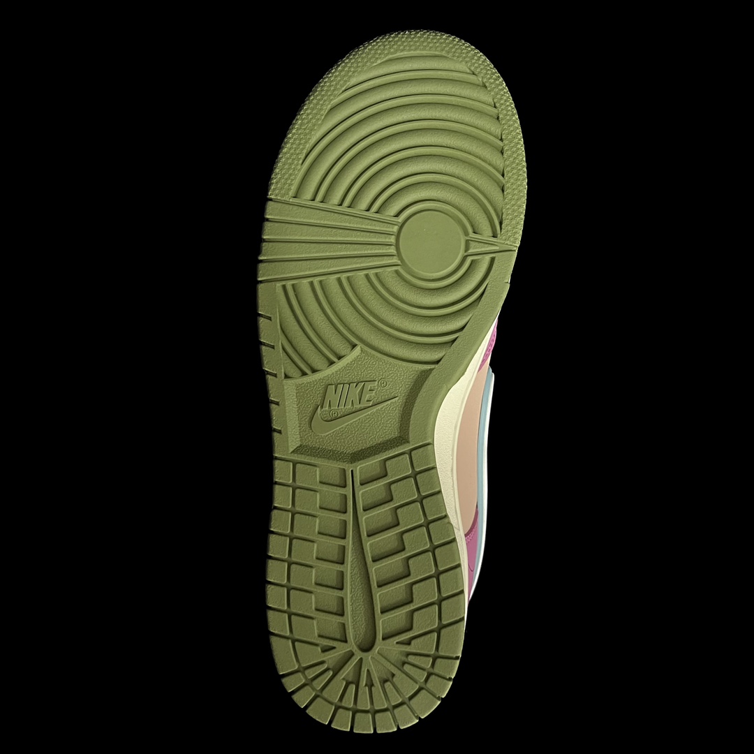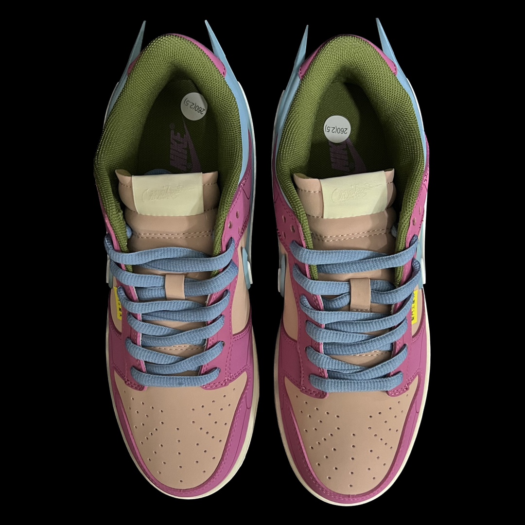 This shoe is entirely crafted from suede, featuring light brown and magenta as the main color scheme. The Swoosh and heel are accented with rose red, while the tongue and heel are combined with magenta and blue, creating a very eye-catching overall visual effect.