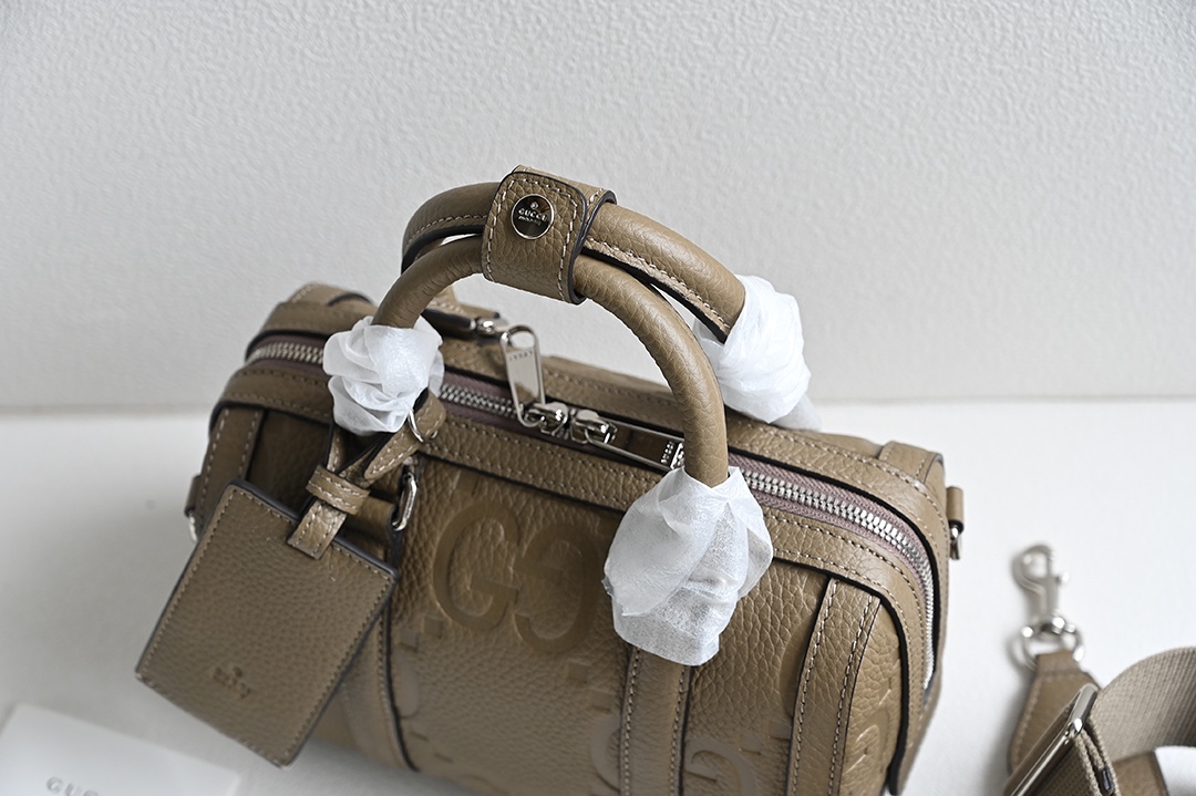 🌟Super Double G Mini Travel Bag🌟The all-black Super Double G design makes a dazzling return in the Early Fall 2023 collection, brilliantly interpreting multiple leather luggage pieces. As a refreshed interpretation of Mr. Guccio Gucci's initials, the Super Double G pattern is presented in an oversized size, creating an enduring brand identity charm. This mini travel bag is made from the brand's signature leather and features a top handle and shoulder strap for multiple carrying options. Model 725292 Gray Dimensions 22X15X12.5cm Shipped🌹🌹