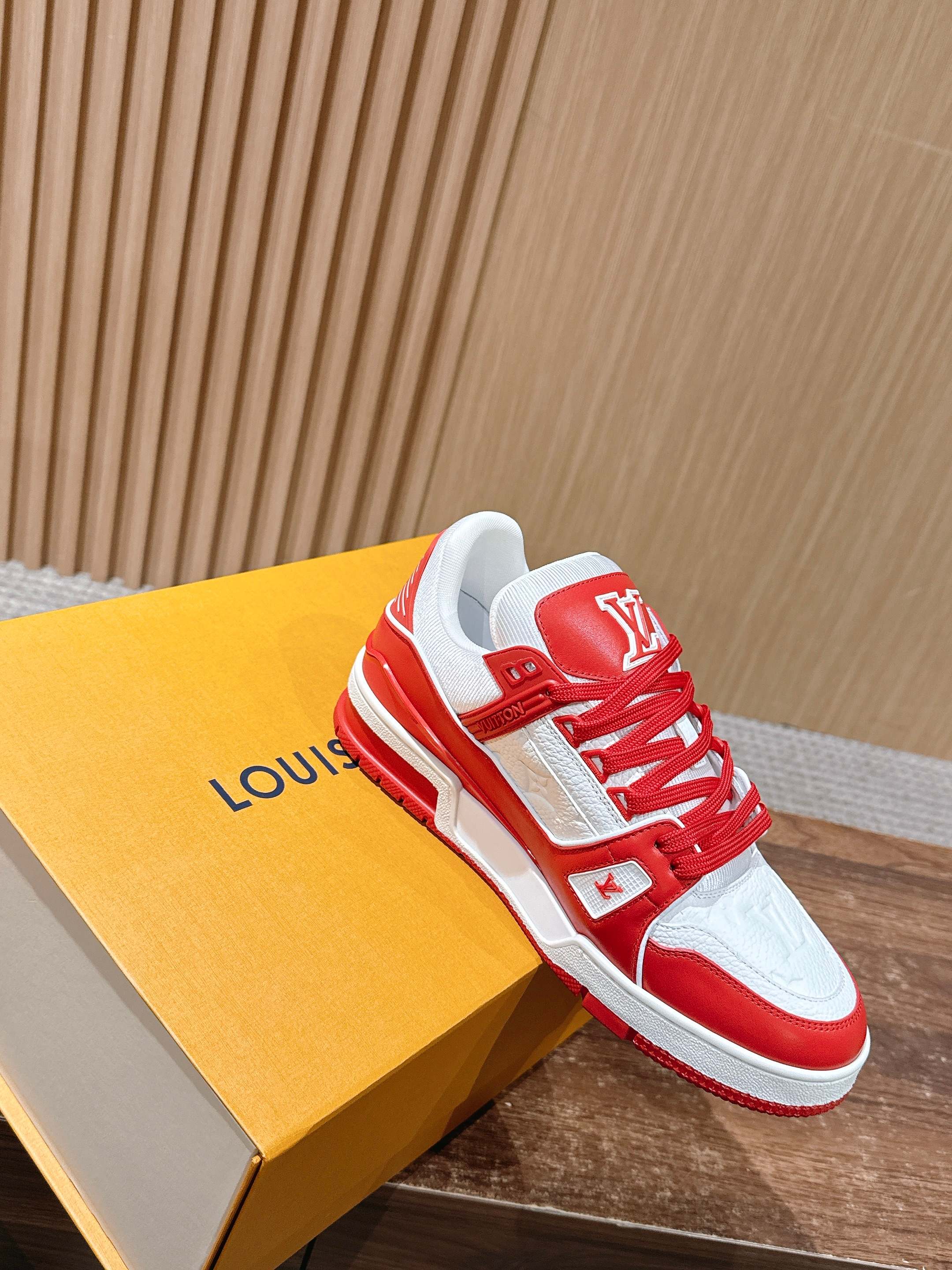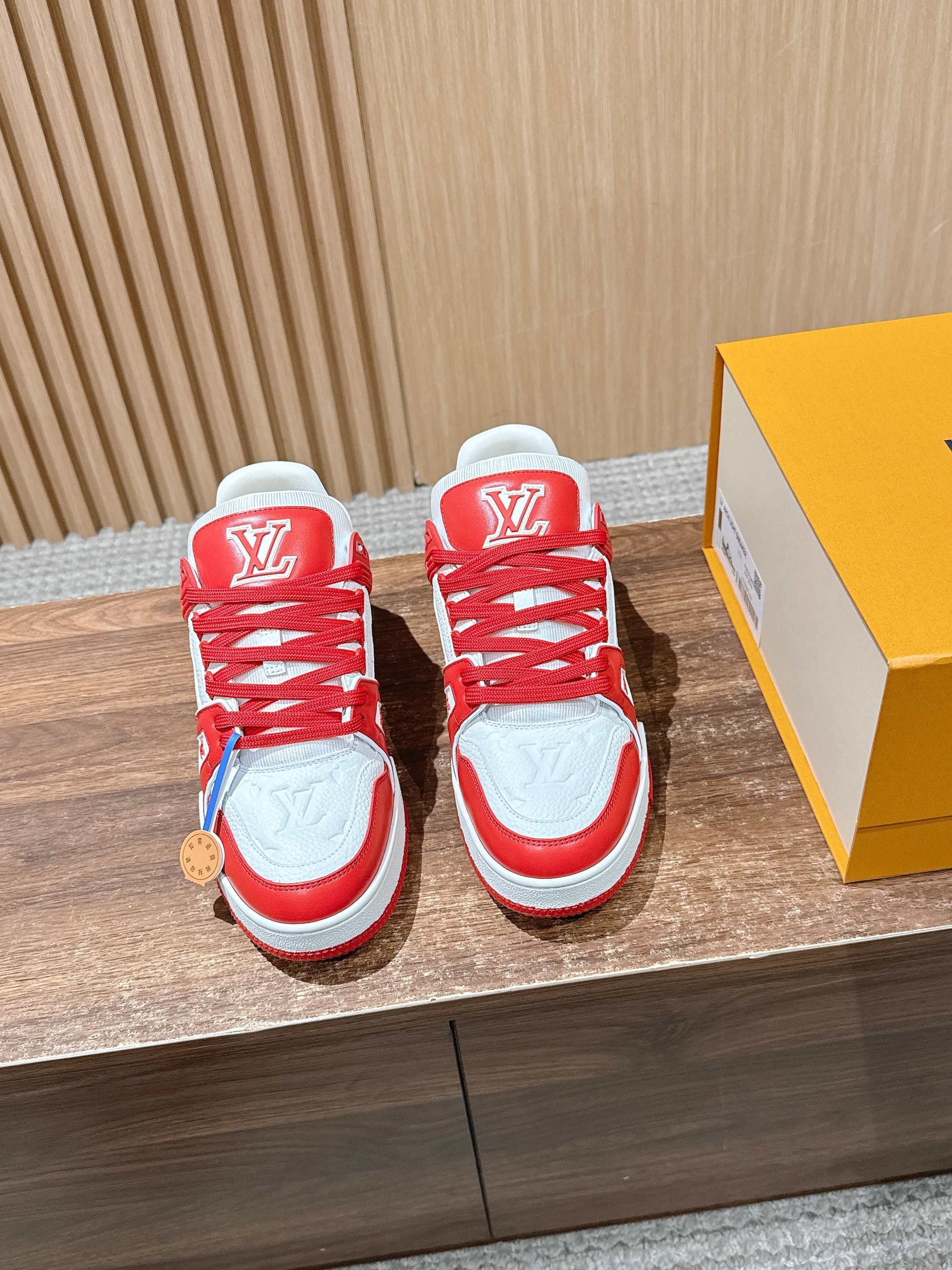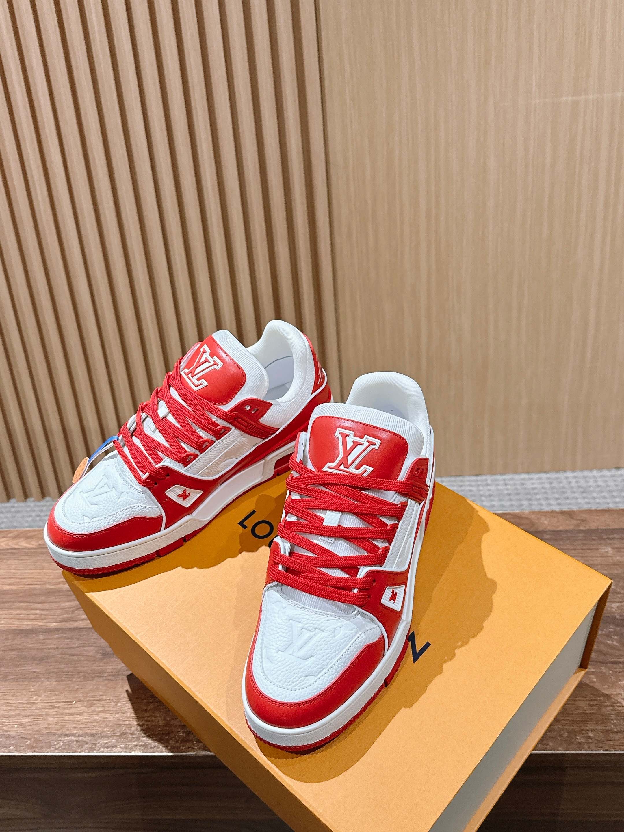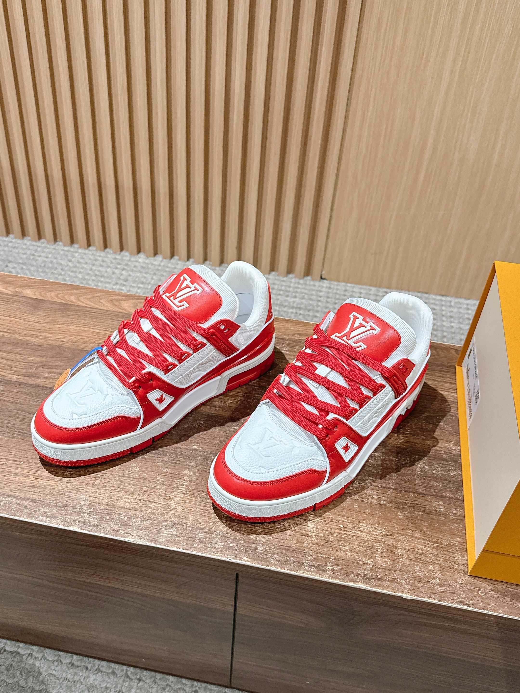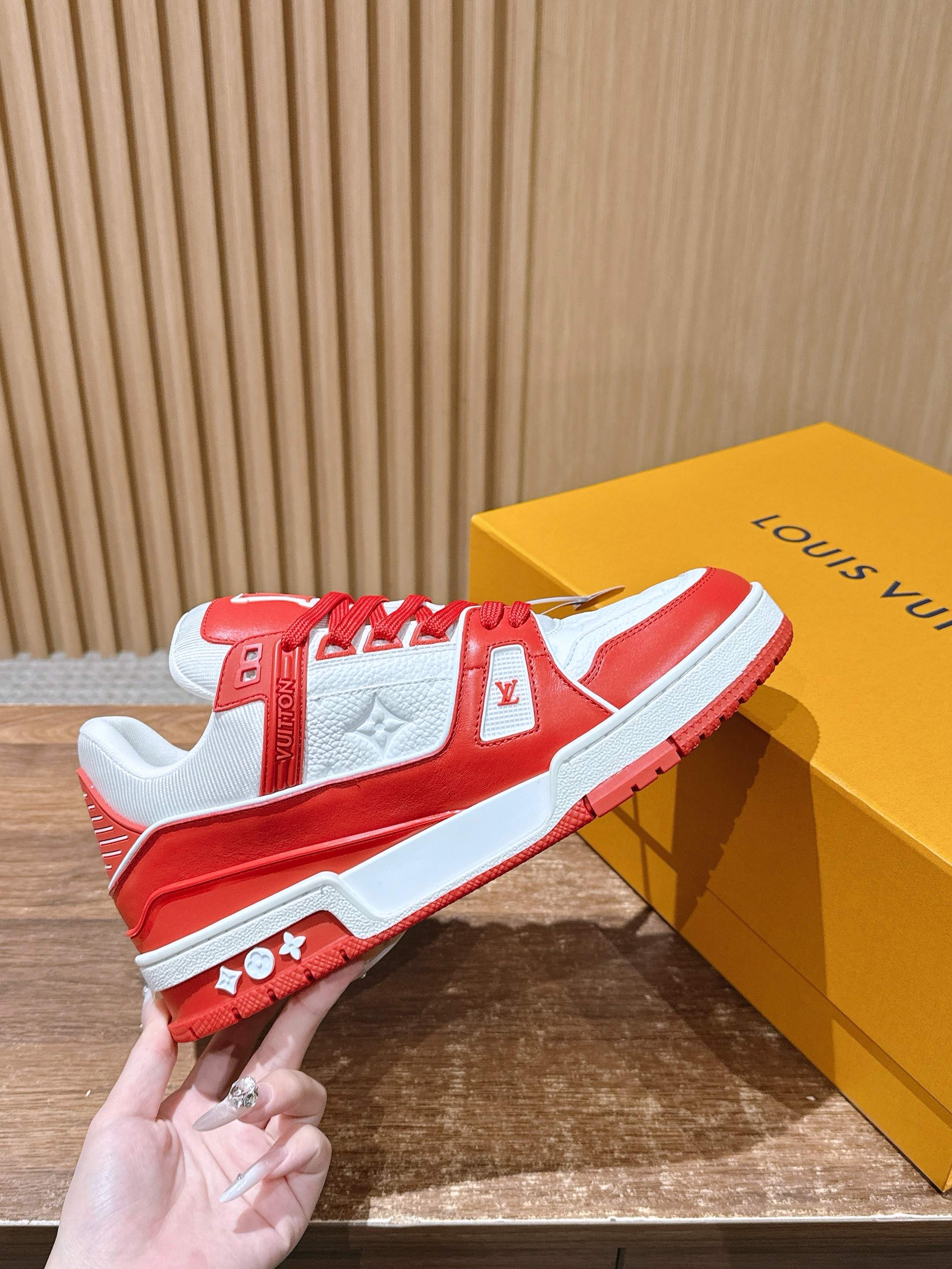 There are many classic color schemes for the LV Trainer. Although the designs this season are quite similar in shape, there are still many highlights in the details! Each pair requires 7 hours of sewing work. The tongue, sides, and back are adorned with LV letters. The sides feature the Vuitton logo.