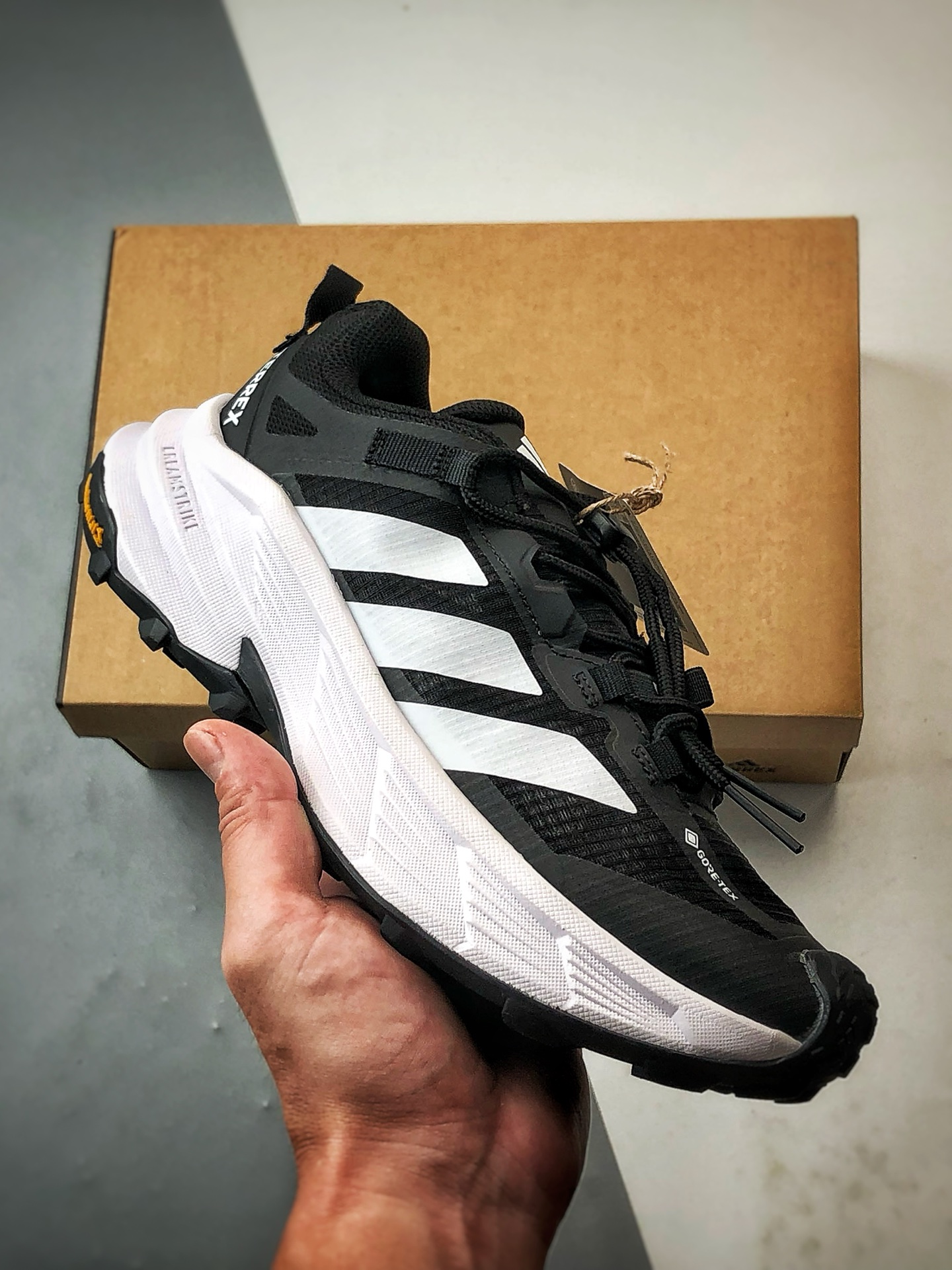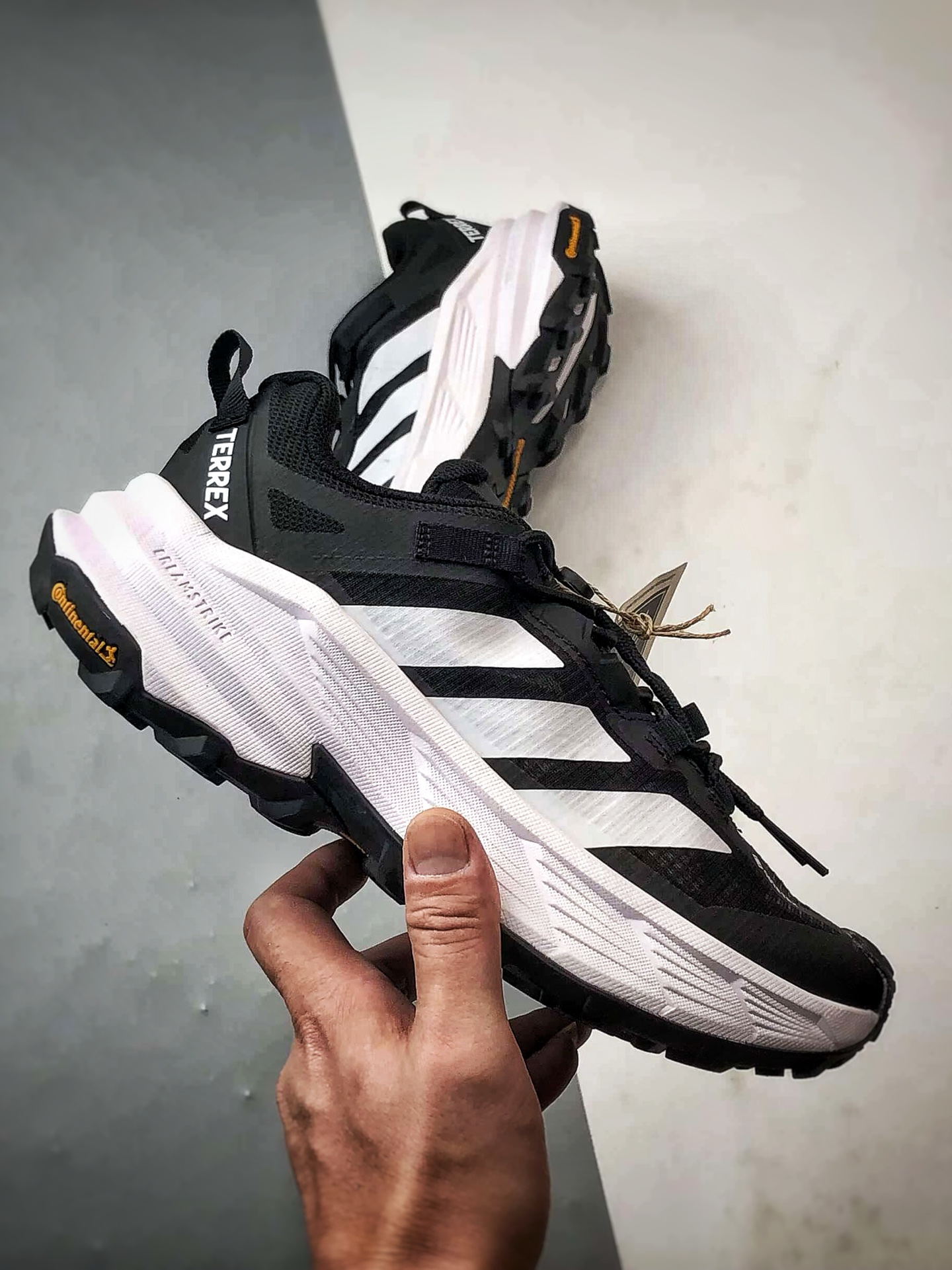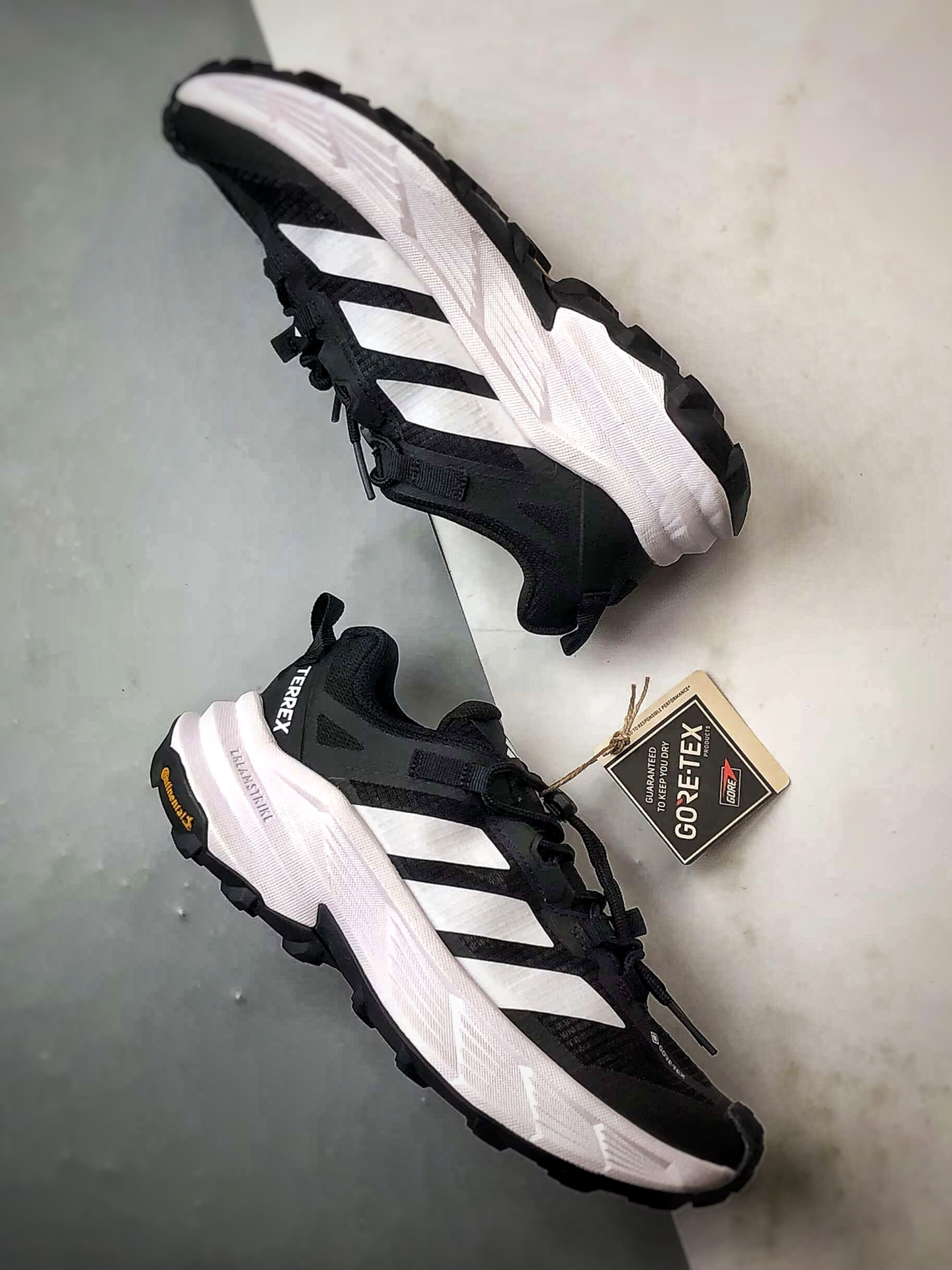 Features a waterproof and breathable GORE-TEX membrane to help you confidently step on waterlogged paths; paired with an EVA frame to assist you in confidently navigating rugged terrain. Includes a BOOST midsole designed to add energy to your stride. • Regular fit • Lace-up design • Mesh upper with stylish accents • GORE-TEX membrane • BOOST midsole • External heel clip and ethylene vinyl acetate (EVA) frame • Continental™ rubber outsole.