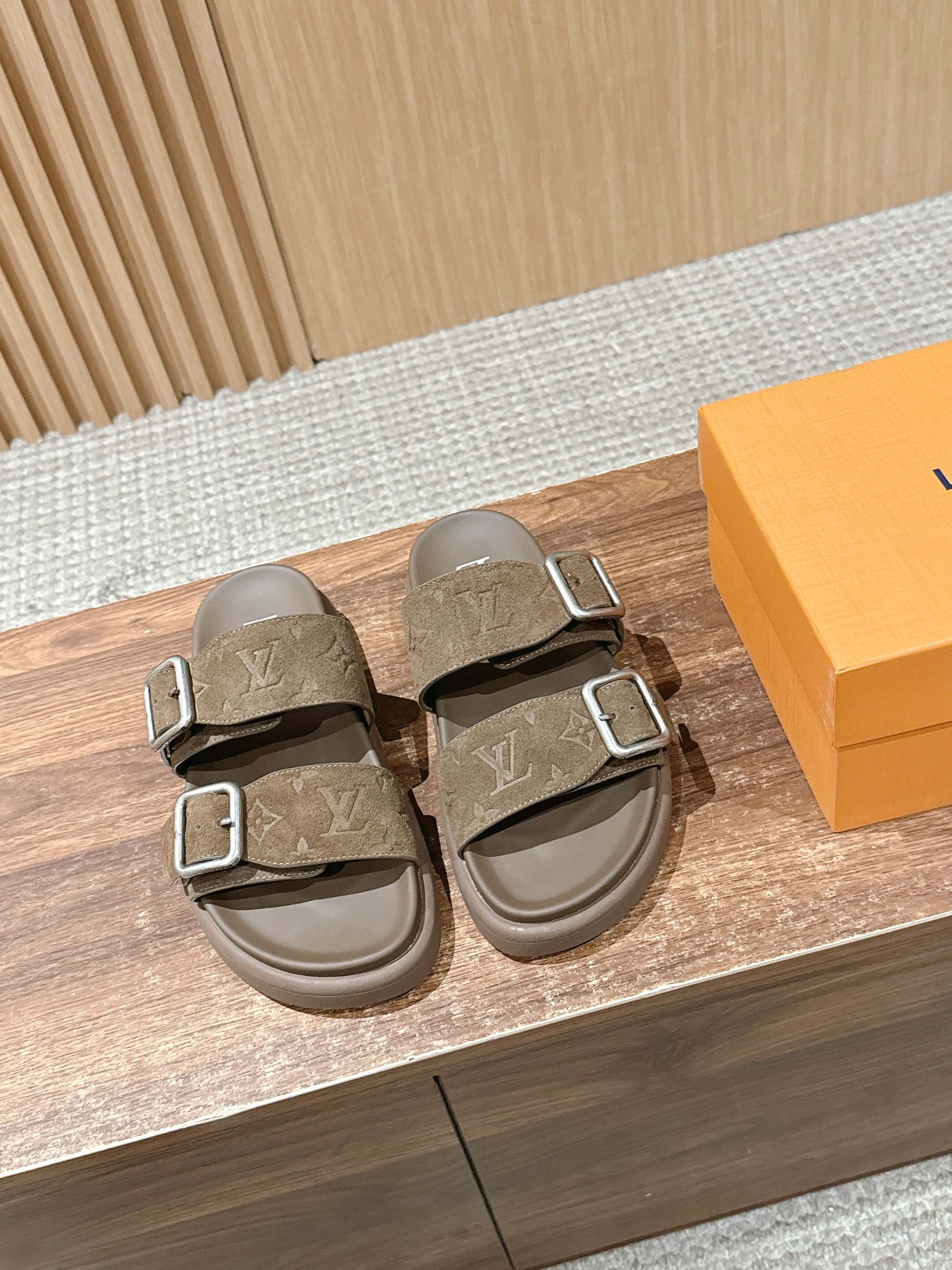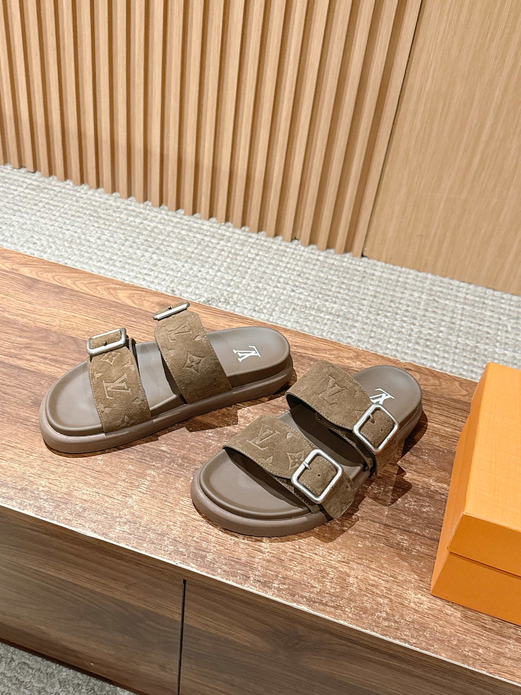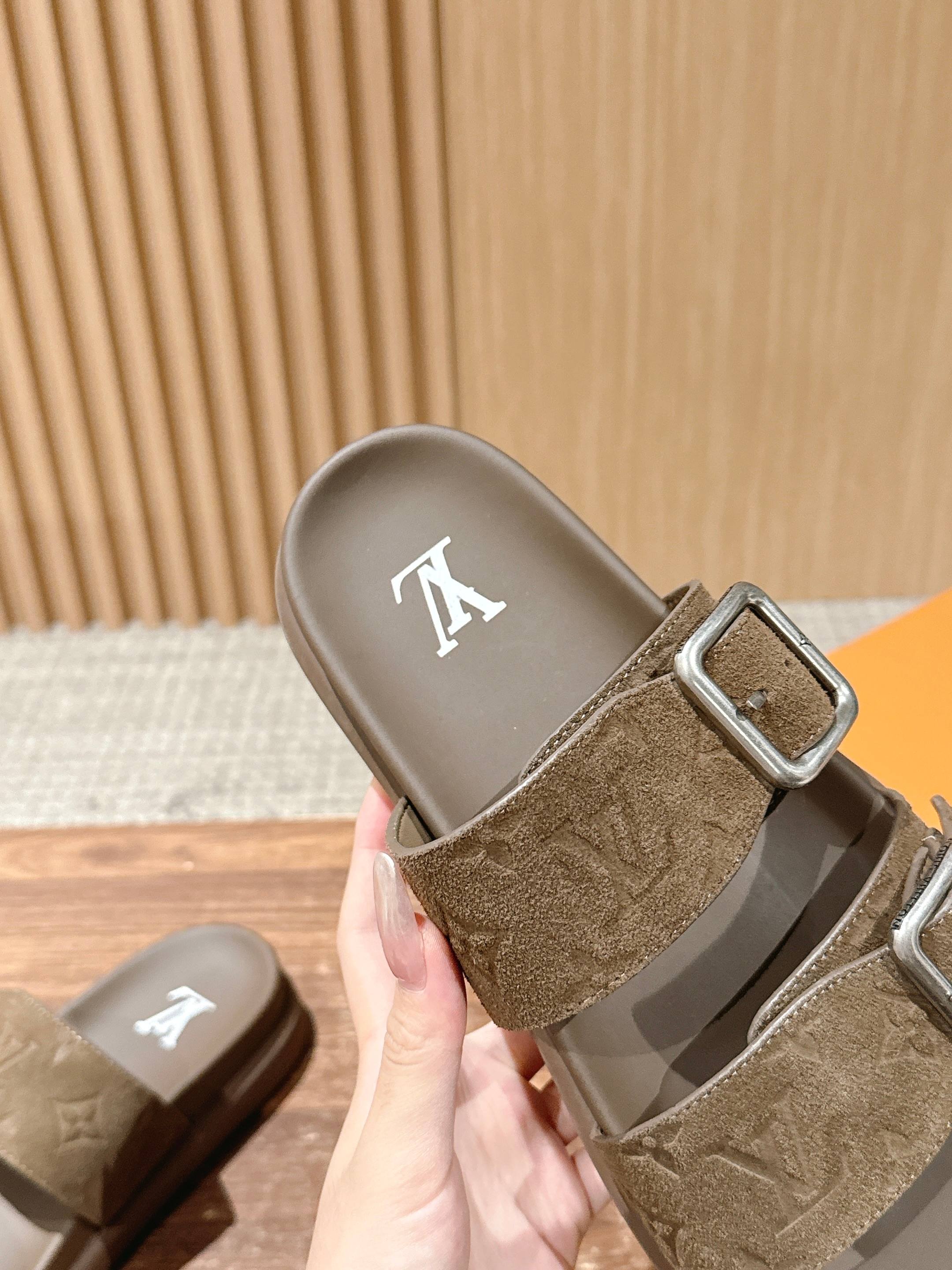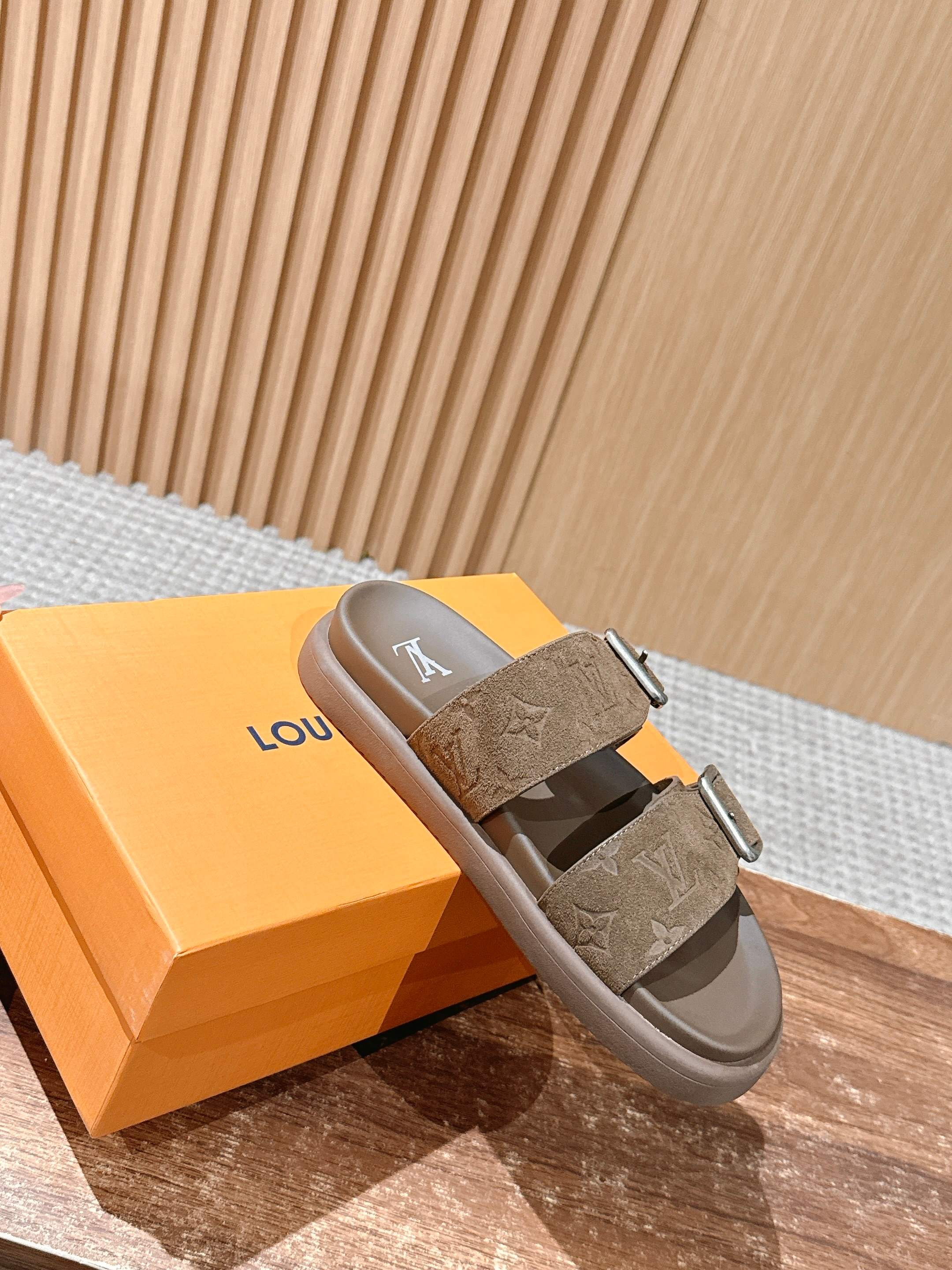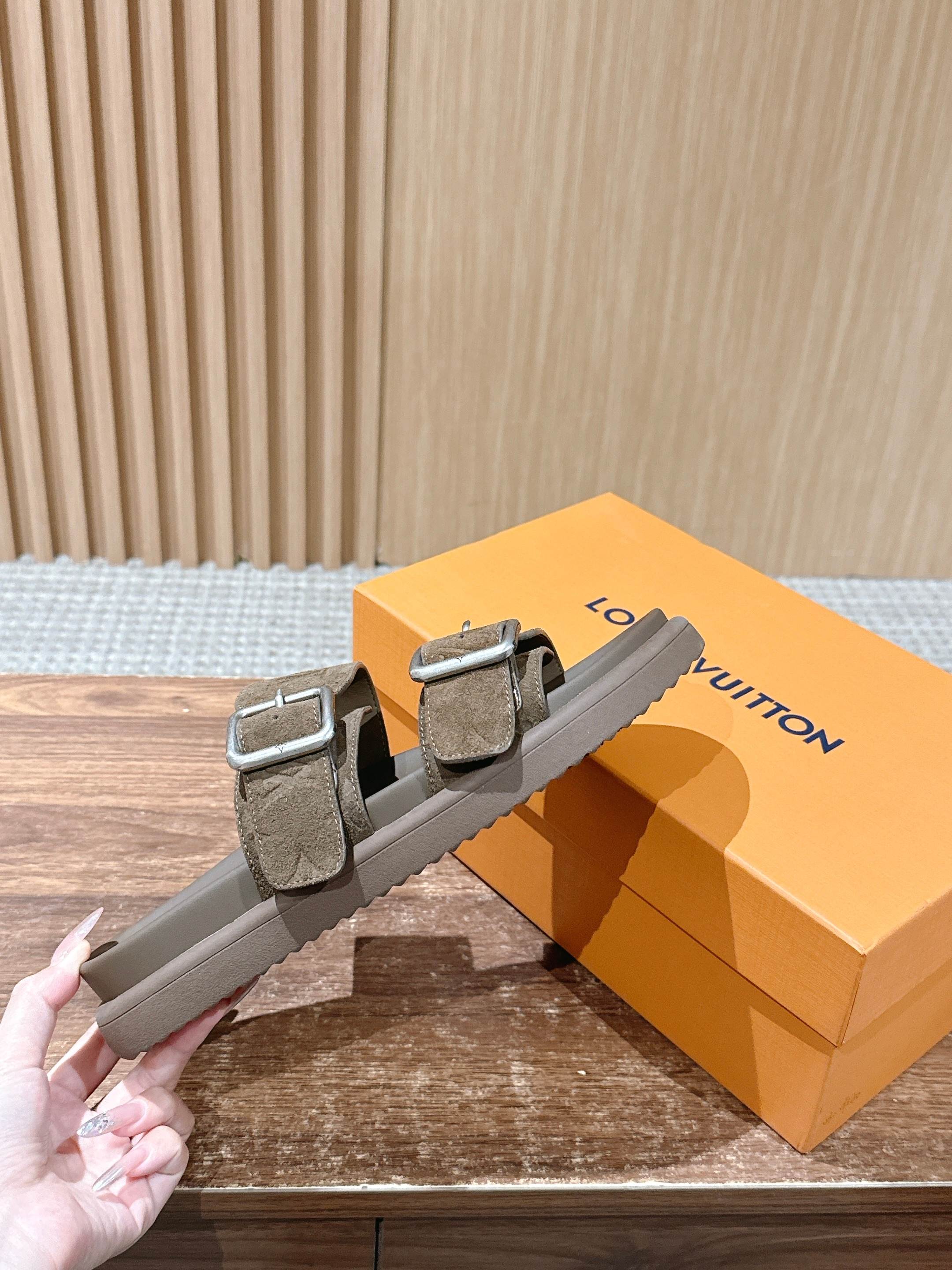 [Top Version] Louis Vuitton# New Men's Sandals from LV, Very Premium Feel! A style popular among bloggers worldwide, both retro and fashionable. Looks amazing on feet! Suede/Calfskin Monogram material, lambskin lining.