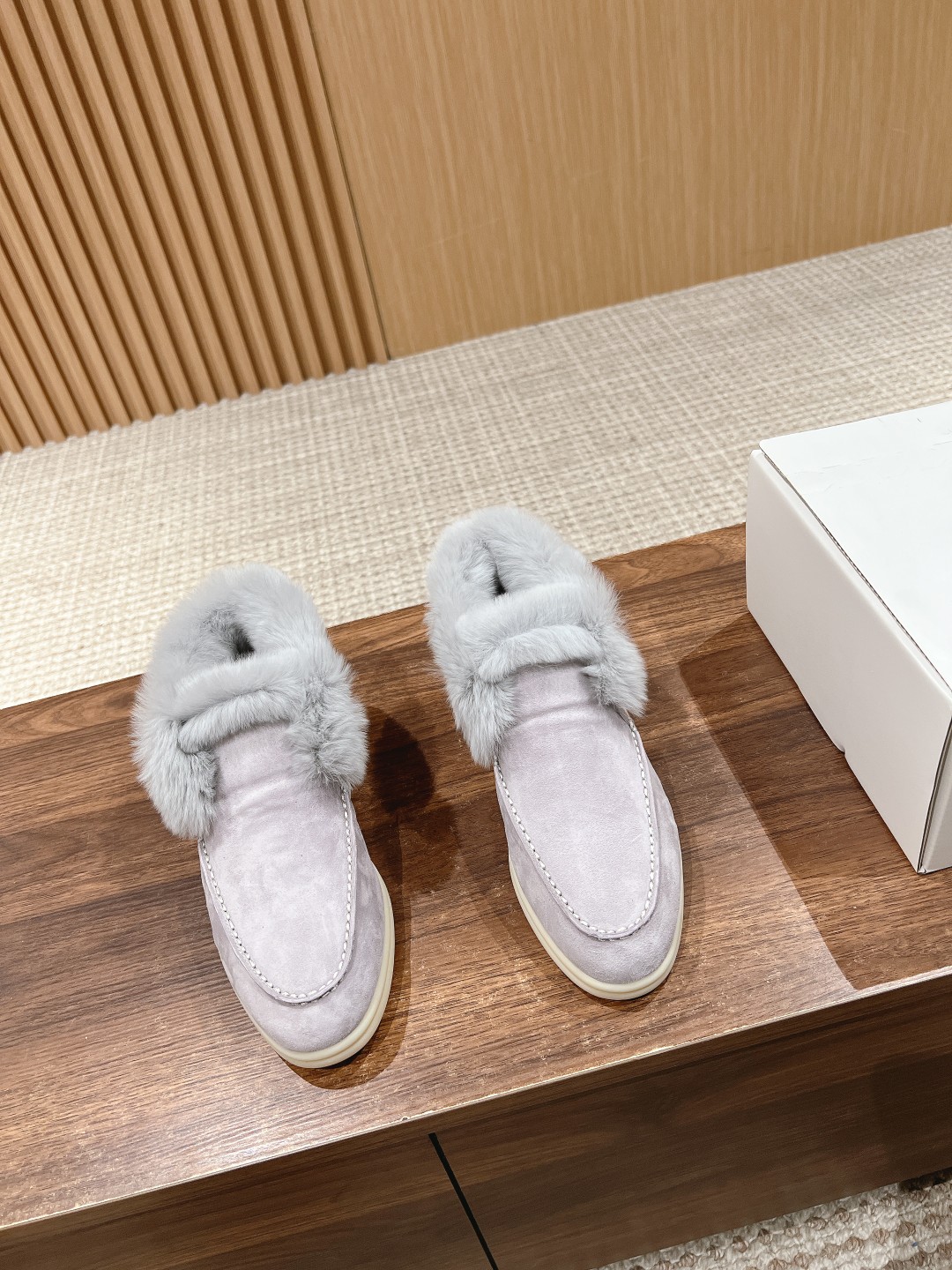 [Top-tier version] Loro Piana, an Italian treasure brand, primarily focuses on handmade shoes. The materials use imported lamb suede for super comfortable ankle boots, understated luxury with depth, simple and fashionable international style. The fabric is imported lamb suede, with wool lining, cowhide footbeds, and light-colored rubber soles, which are common features of all Loro Piana casual footwear. Size: Women's 35-40 (Custom orders for 34, 40/41/42 are non-returnable).