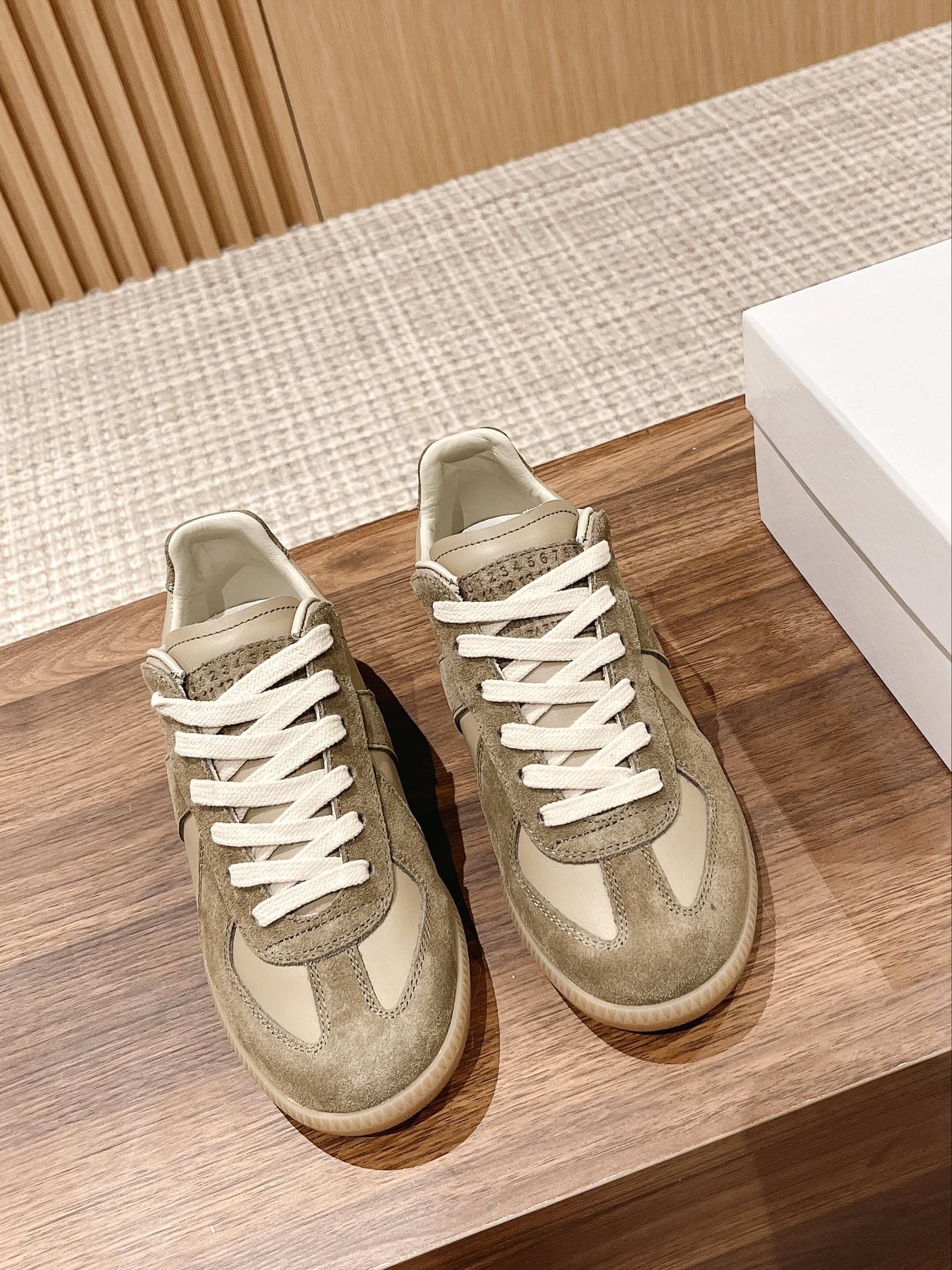 Home • Shoe • Top version MM6 replica retro sneakers for couples. Made of cowhide with suede details, non-slip rubber sole. Sizes 35-45.