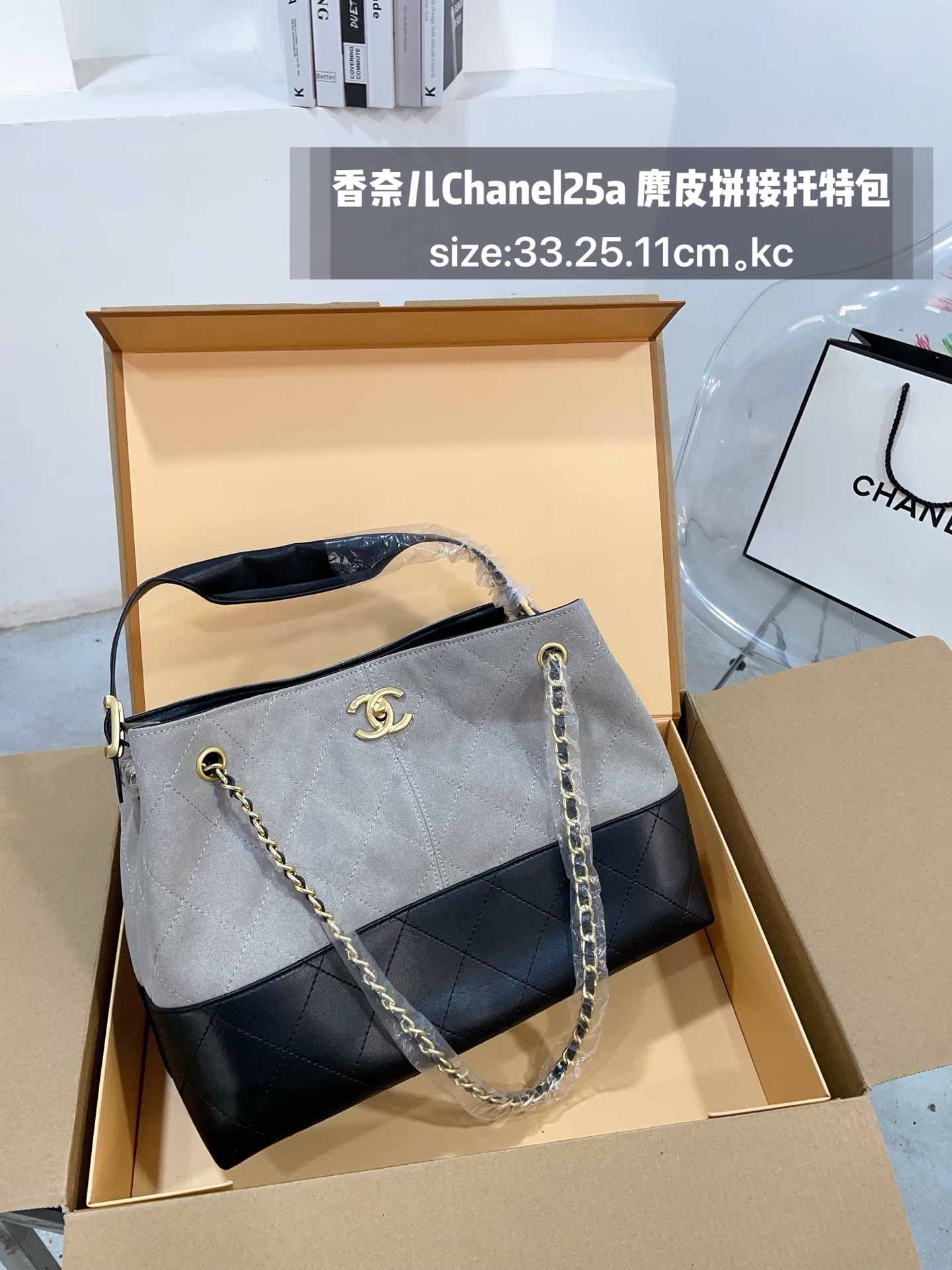 Chanel 25A Small Suede Patchwork Tote Bag