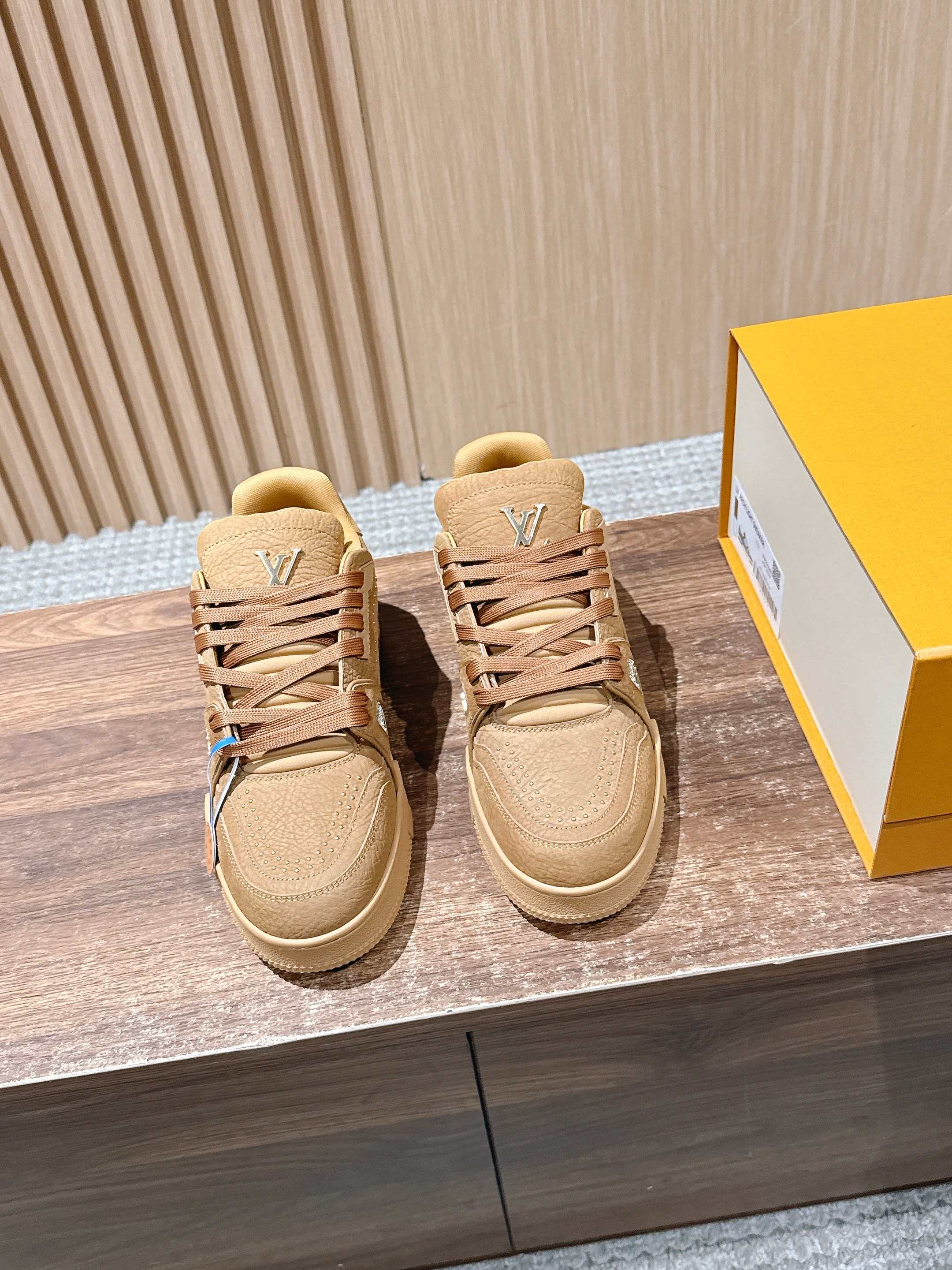 There are many classic color schemes for the LV Trainer. Although the designs this season are quite similar in shape, there are still many highlights in the details! Each pair requires 7 hours of sewing work. The tongue, sides, and back are adorned with LV letters. The sides feature the Vuitton logo.
