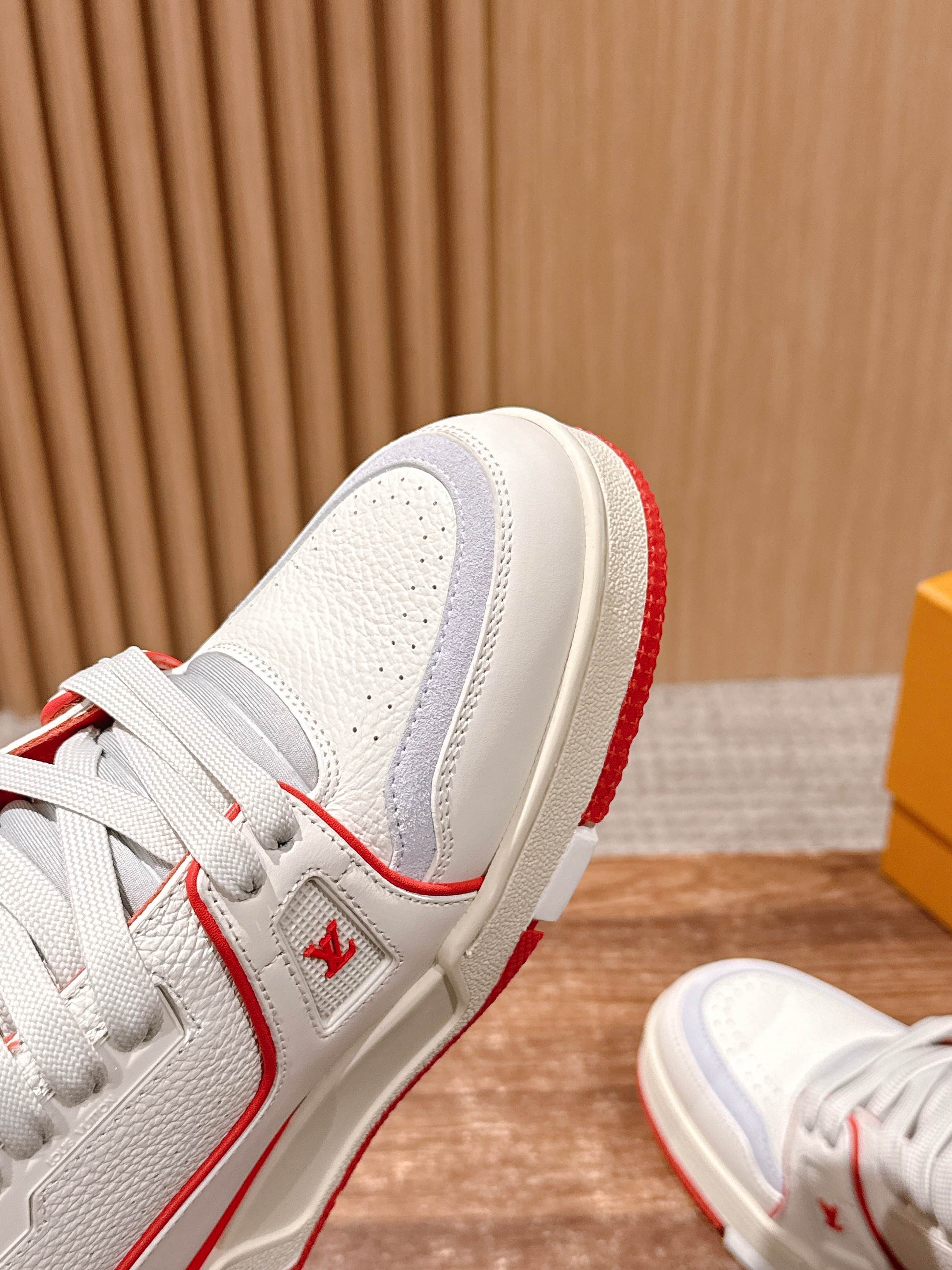 There are many classic colorways of the LV Trainer. Although the designs this season are quite similar in shape, there are still many highlights in the details! Each pair requires 7 hours of sewing workmanship. The tongue, sides, and back are adorned with LV letters. The sides are decorated with the Vuitton signature.