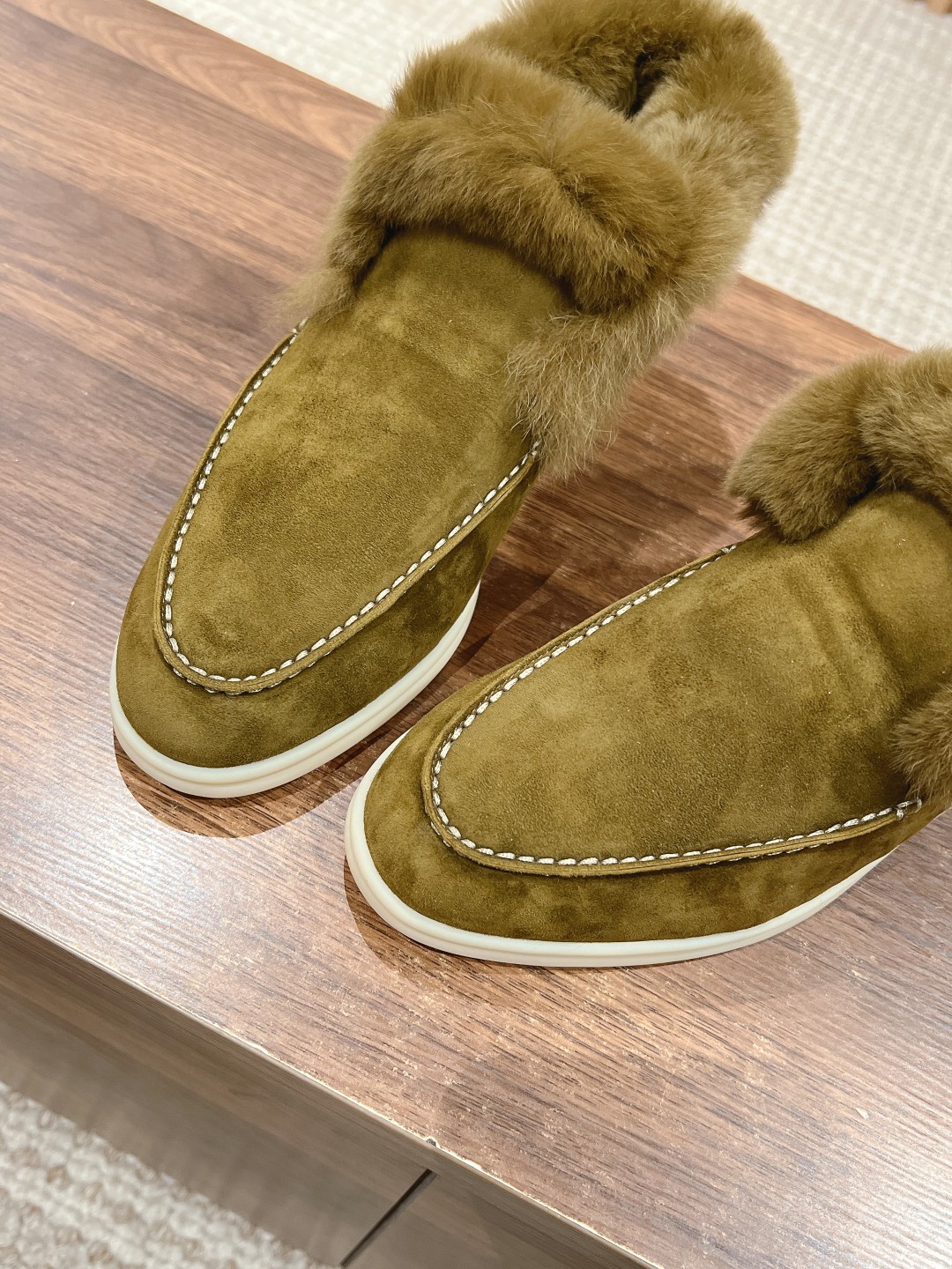 [Top-tier version] Loro Piana, an Italian treasure brand, primarily focuses on handmade shoes. The materials use imported lamb suede for super comfortable ankle boots—understated luxury with depth, simple yet fashionable with an international style. The fabric is imported lamb suede, with wool lining, calfskin insole, and light-colored rubber sole, which are common features of all Loro Piana casual footwear. Size: Women's 35-40 (Custom orders for sizes 34, 40/41/42 are non-returnable).