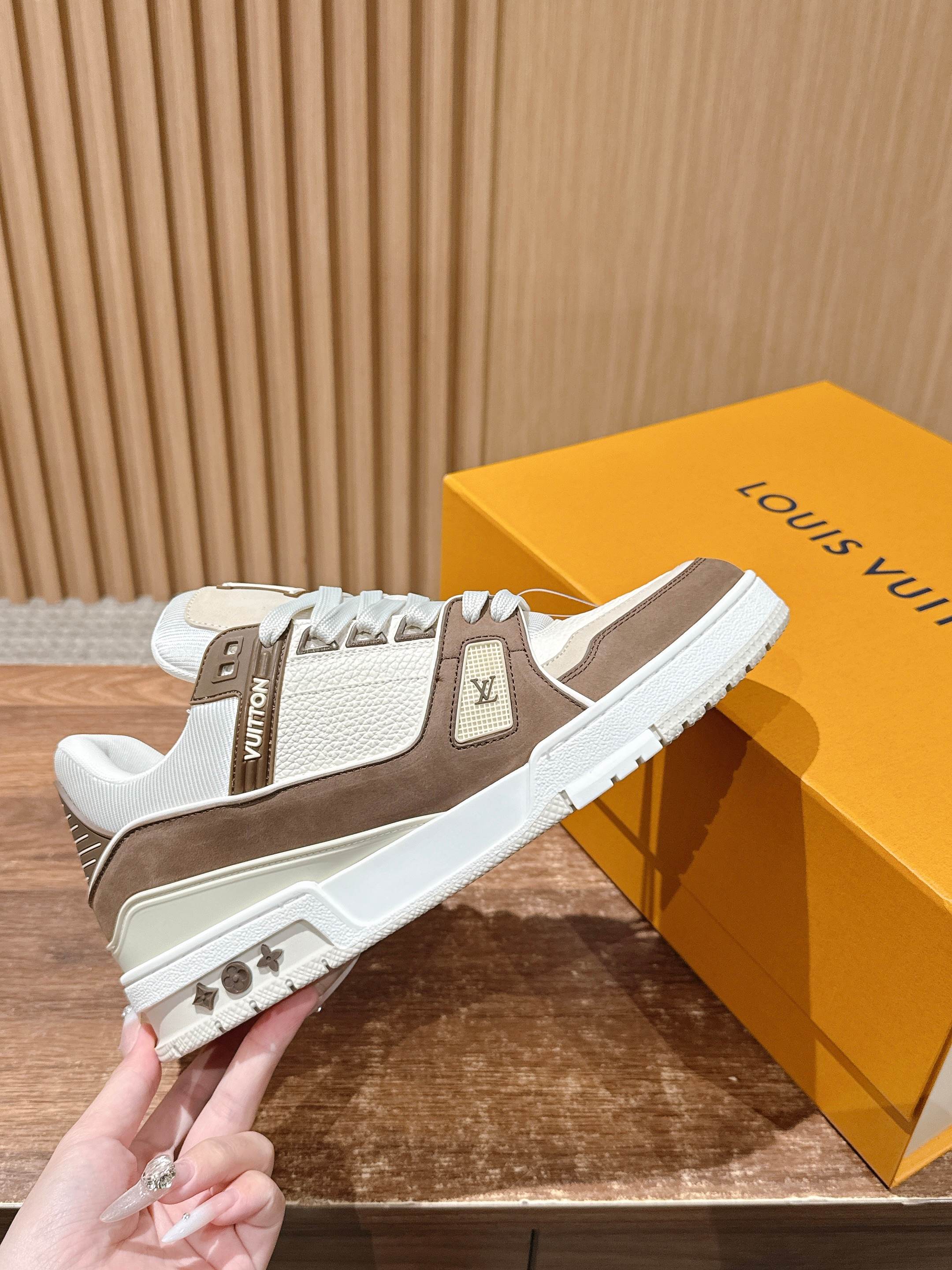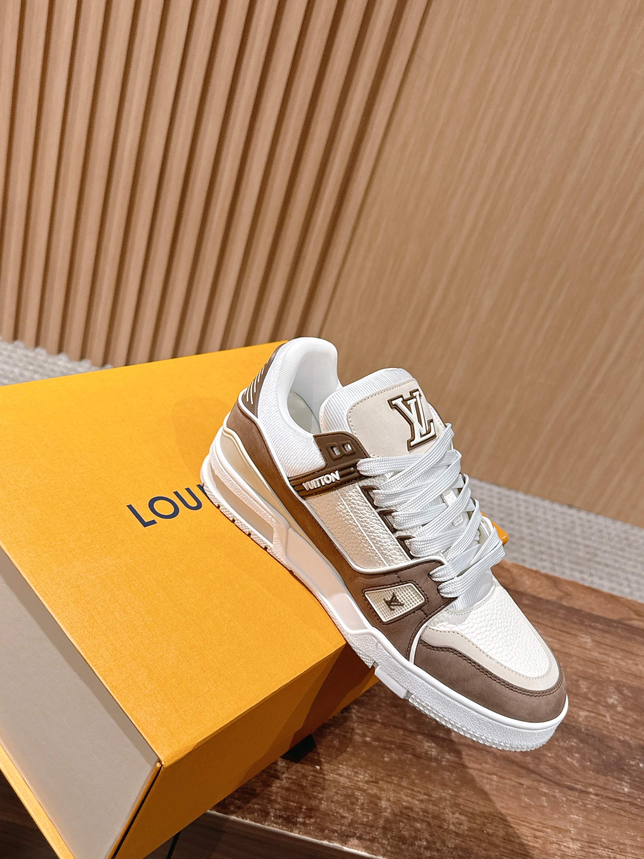 There are many classic colorways for the LV Trainer. Although the designs this season are quite similar in shape, there are still many highlights in the details! Each pair requires 7 hours of sewing workmanship. The tongue, sides, and back are adorned with LV letters. The sides are decorated with the Vuitton signature.