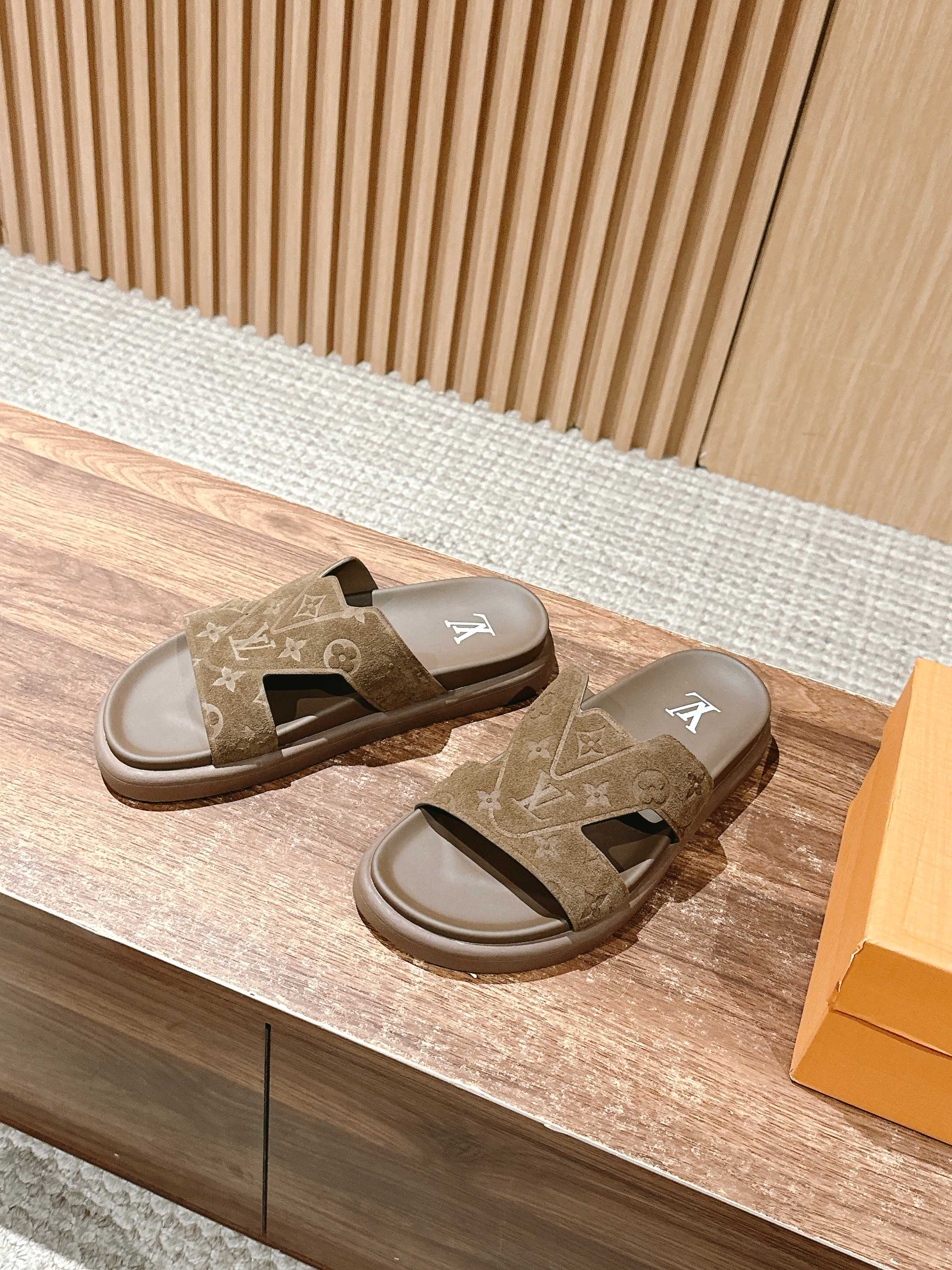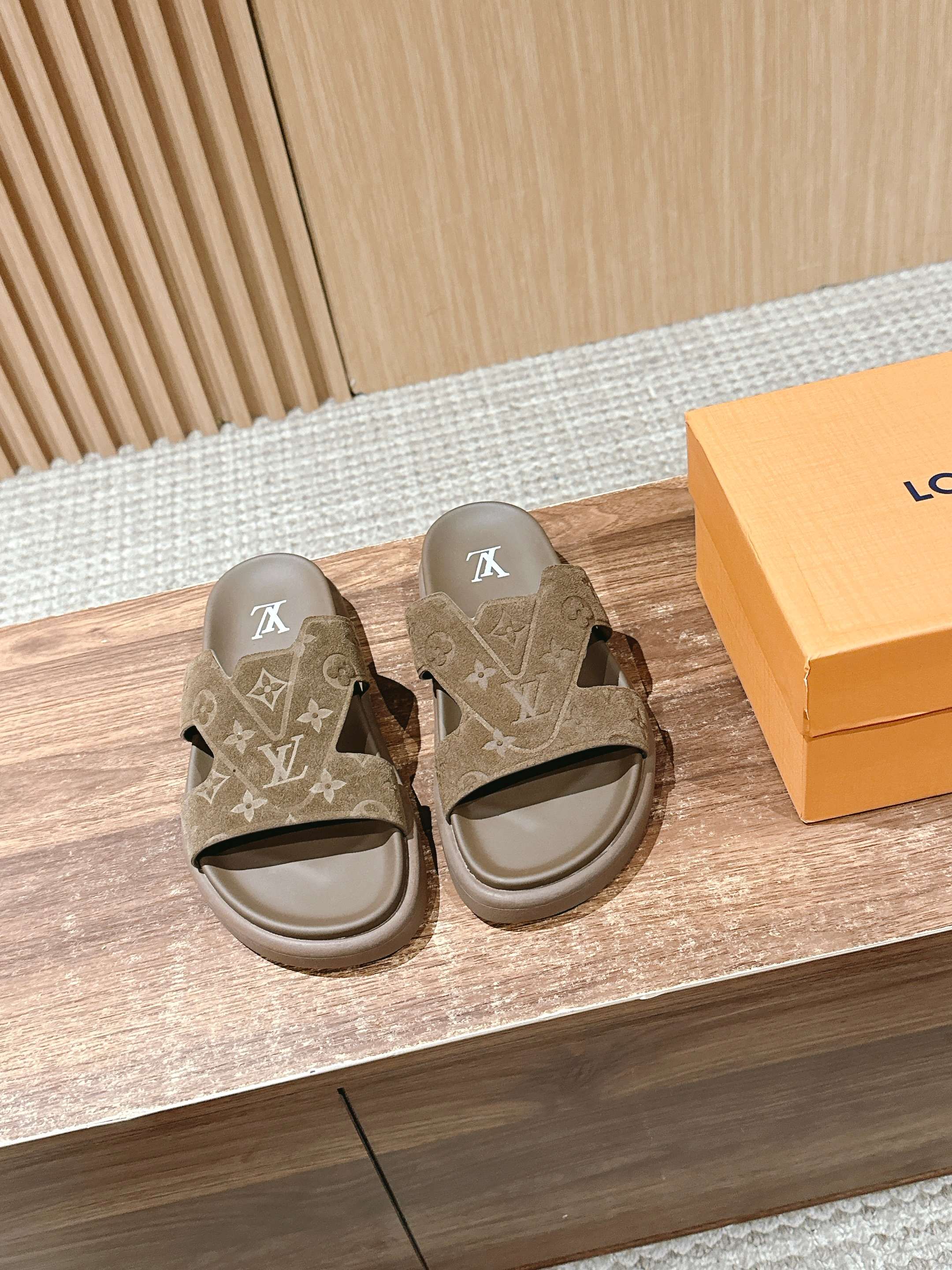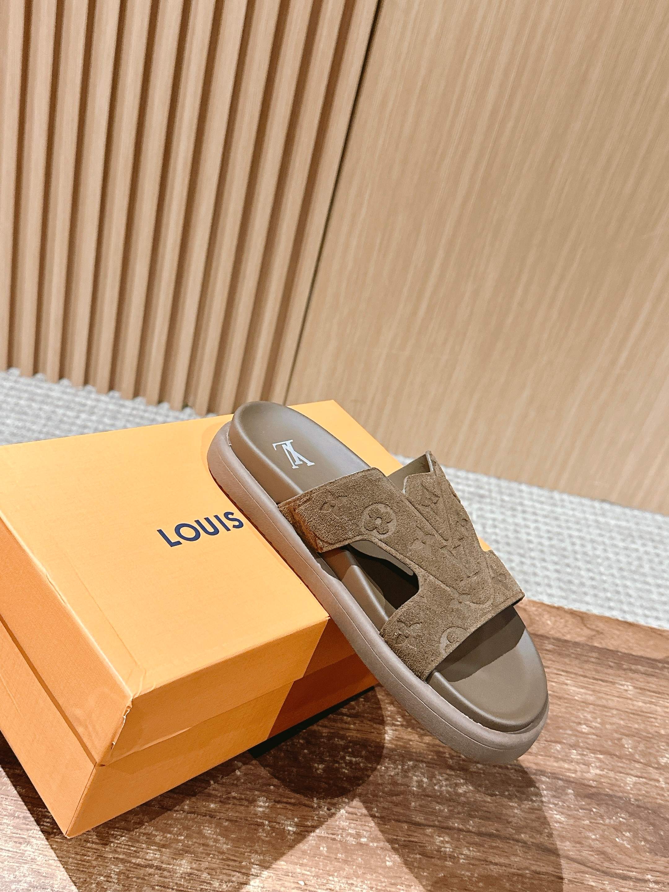 [Top Version] #Men's Sizes Only Louis Vuitton# Louis Vuitton Summer New Casual Beach Sandals. Very high-end feeling! A model exploded by domestic and international bloggers, retro and stylish, looks incredibly cool when worn! The official website's main promoted model!