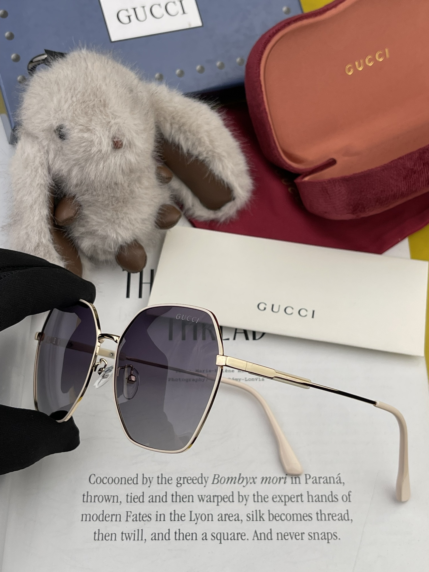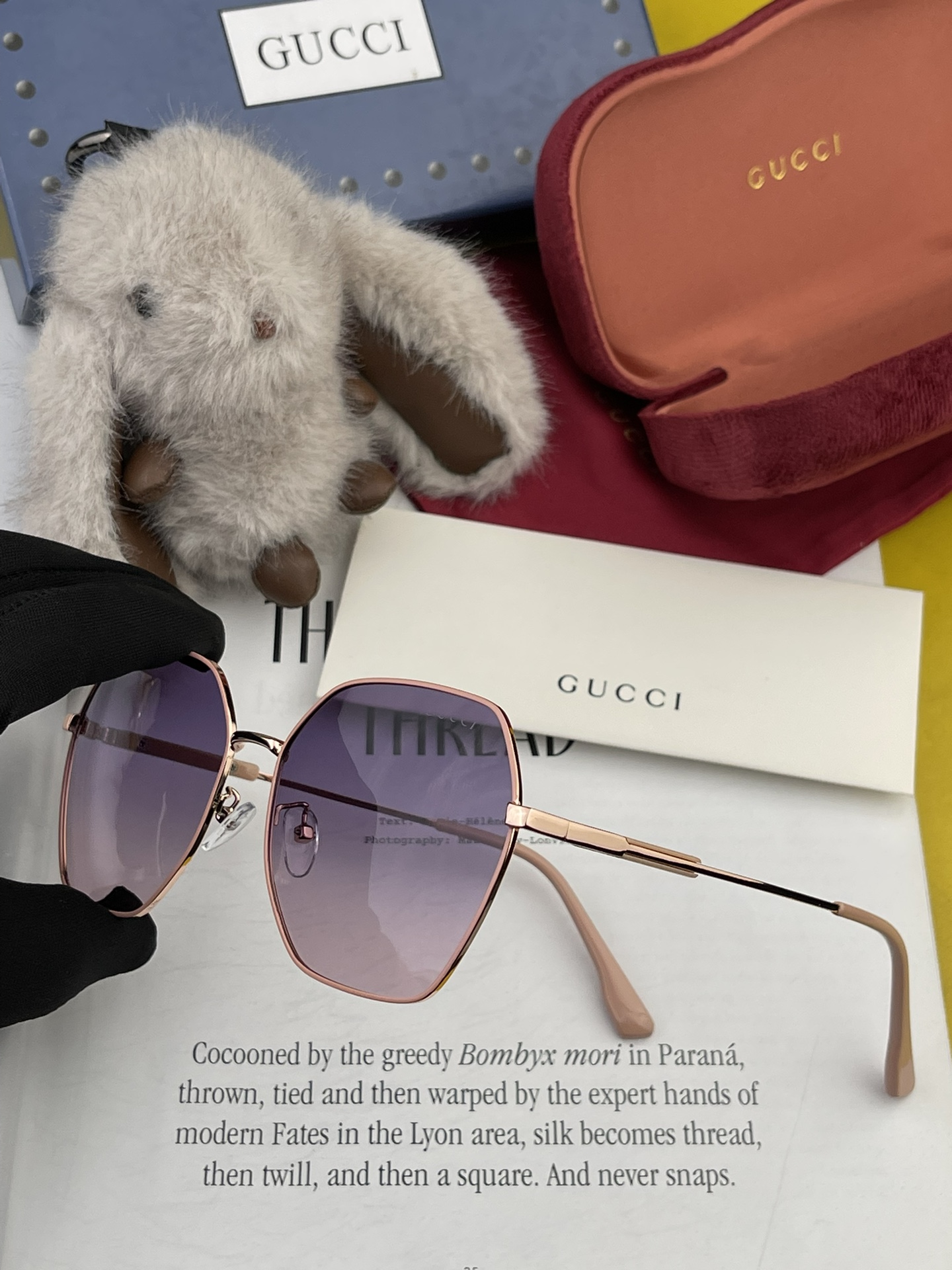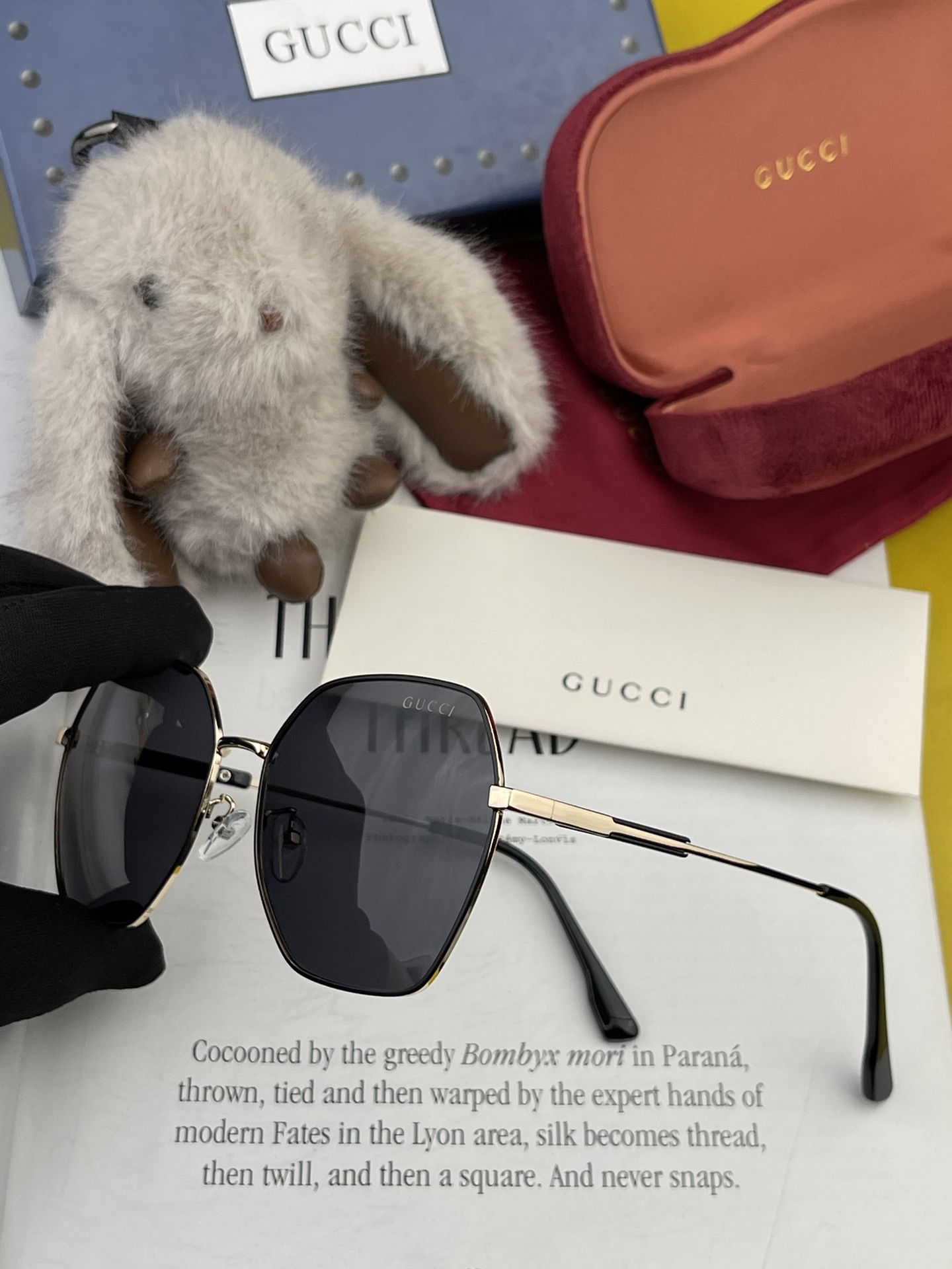 GUCCI 2024 Official New Model, Same Style Worn by Many Celebrities! New Large Frame Polarized Sunglasses Rainbow Polaroid Ultra Clear Thickened Sunglasses Model: G9822