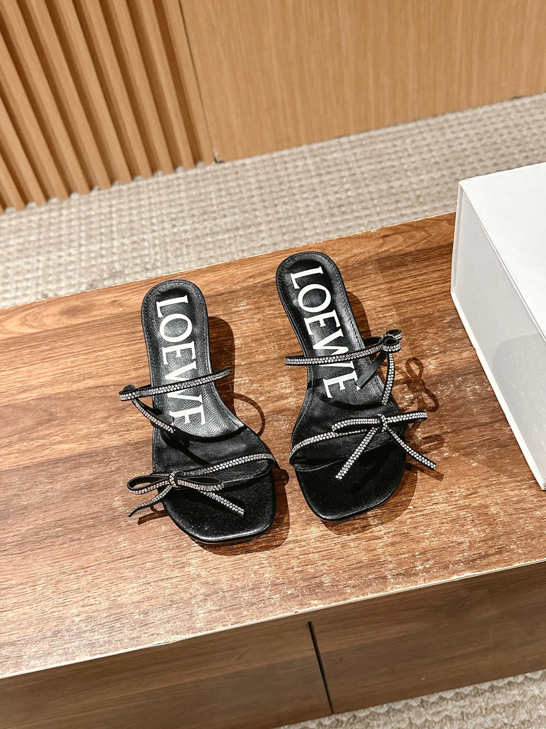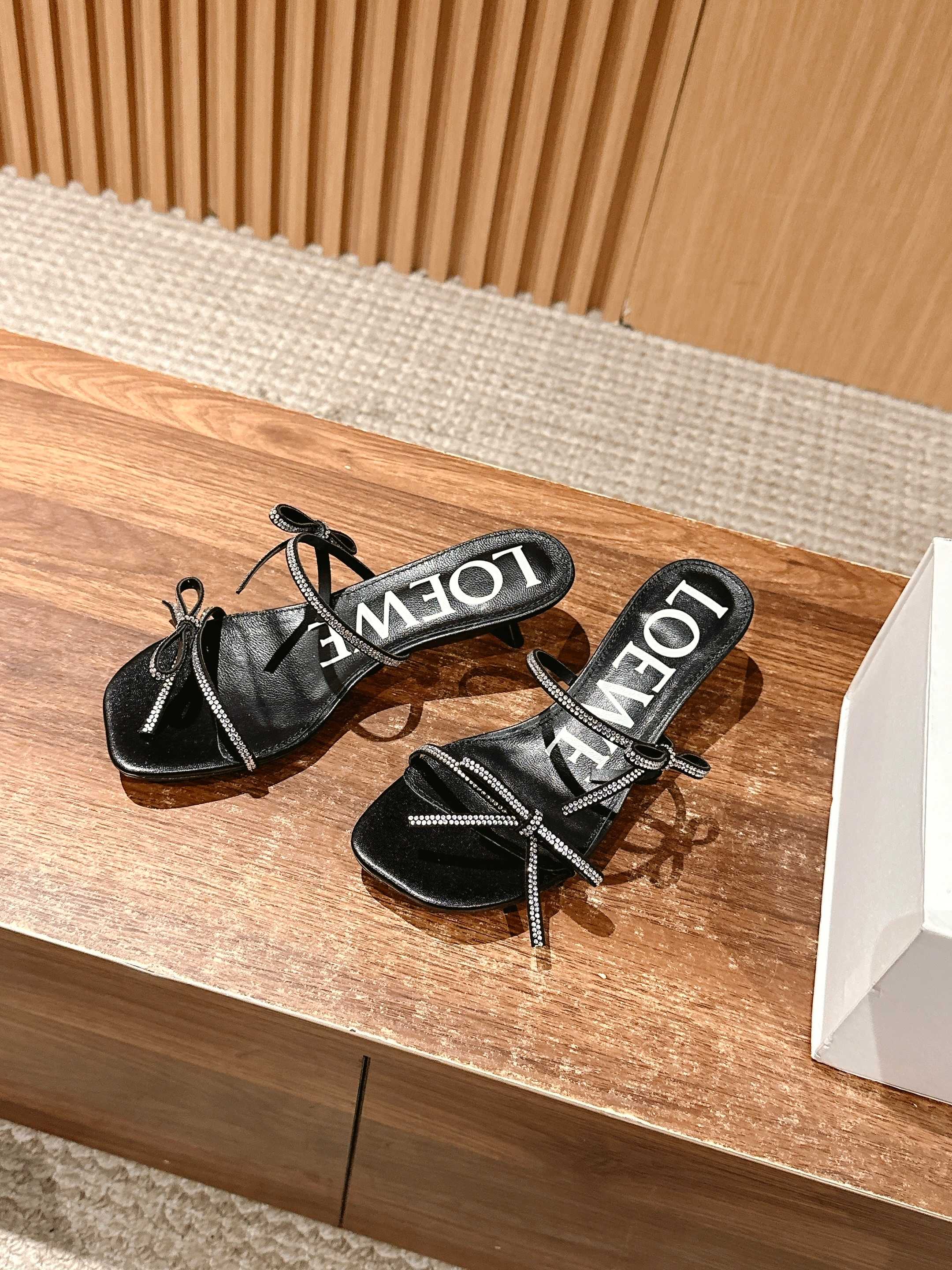 Home • Shoe • Loewe spring-summer latest fashion sandals. Imported bow with handmade Australian crystals, mixed sheepskin lining. Simple design, comfortable fit. Sizes 35-40.