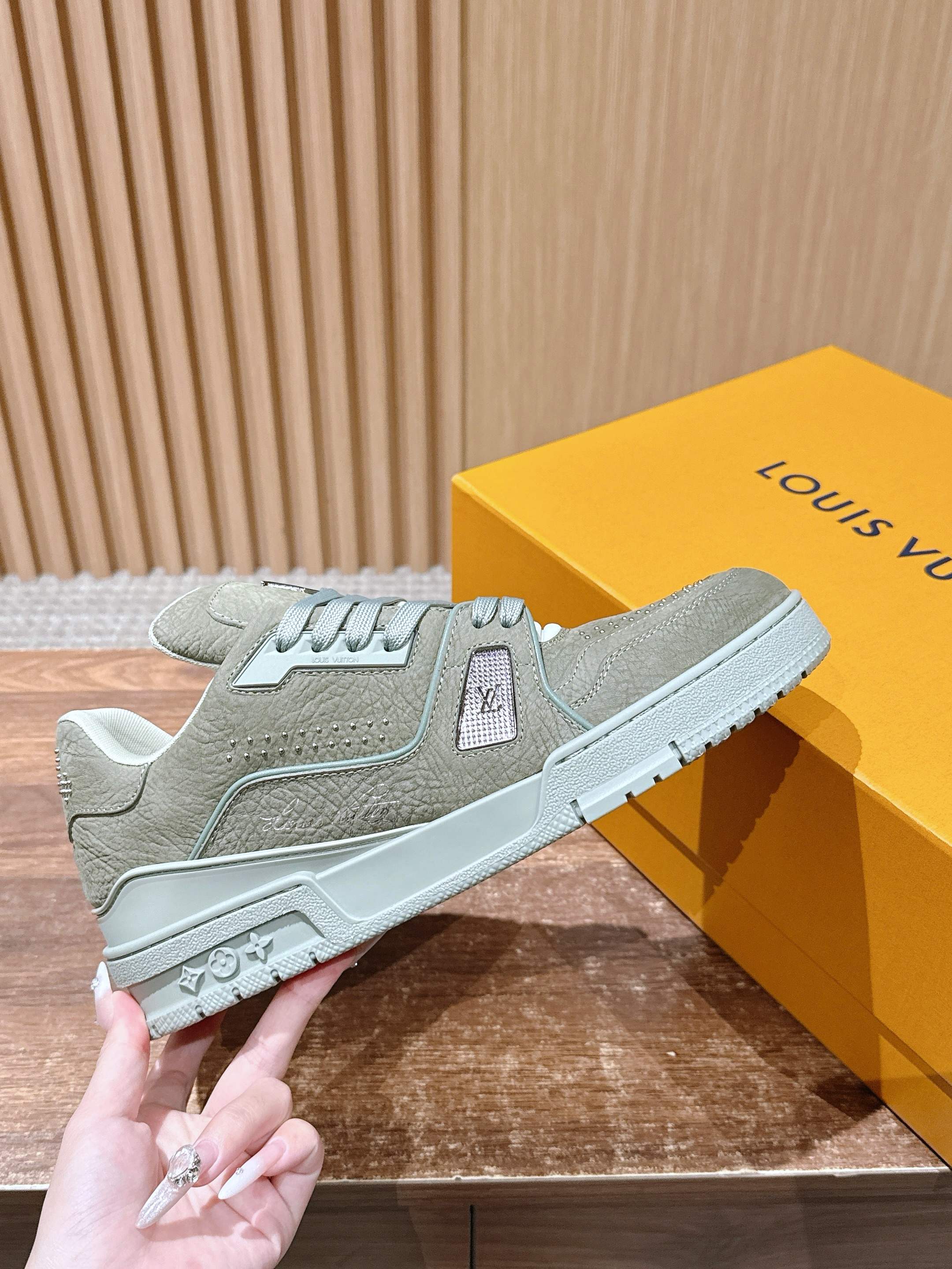 There are many classic colorways for the LV Trainer. Although the designs this season are quite similar in shape, there are still many highlights in the details! Each pair requires 7 hours of sewing workmanship. The tongue, sides, and back are adorned with LV letters. The sides are decorated with the Vuitton signature.