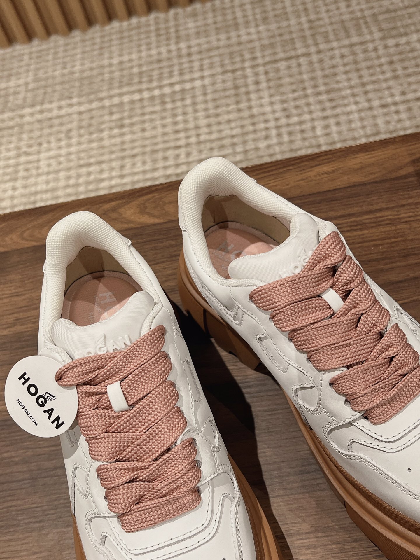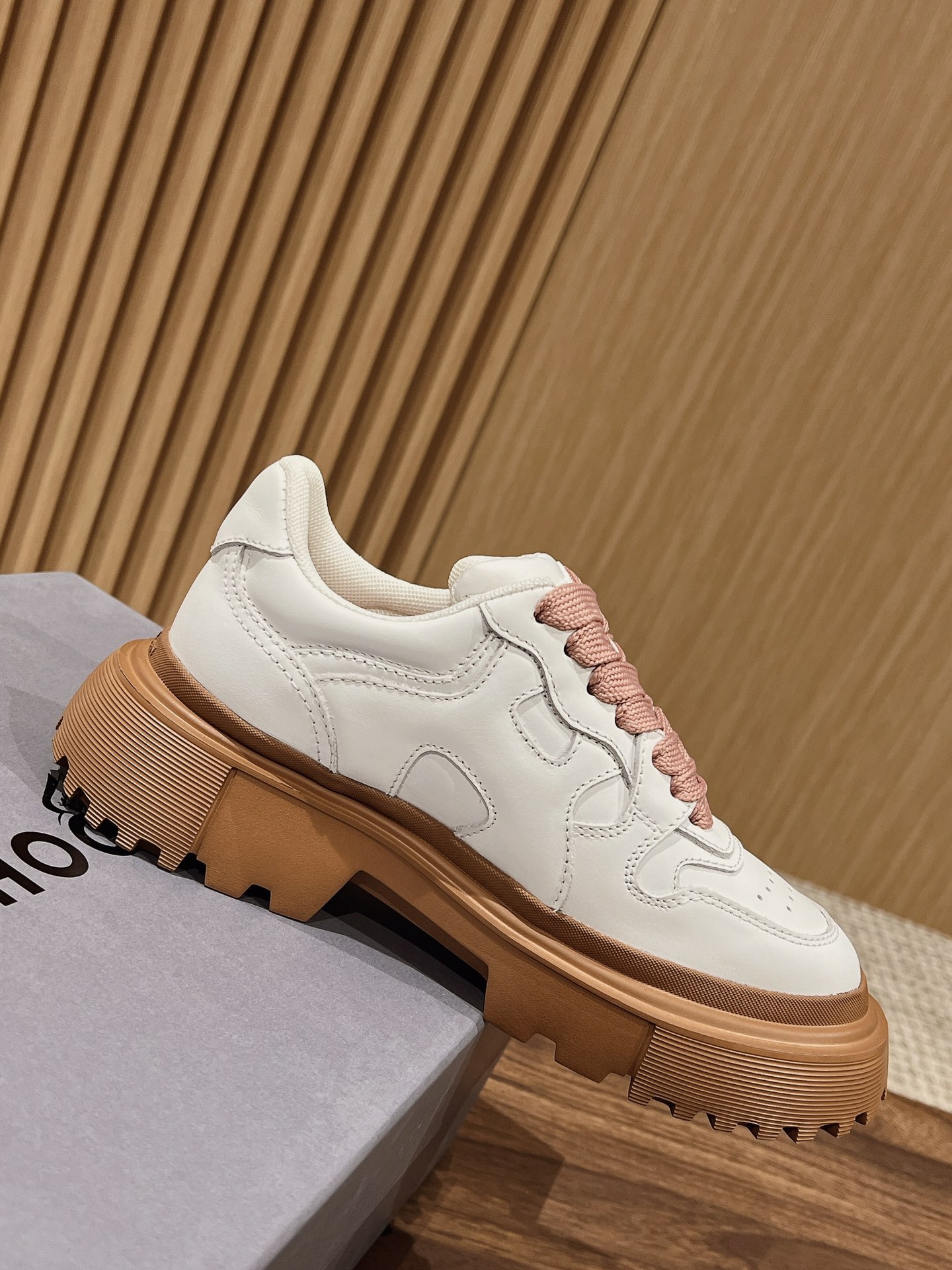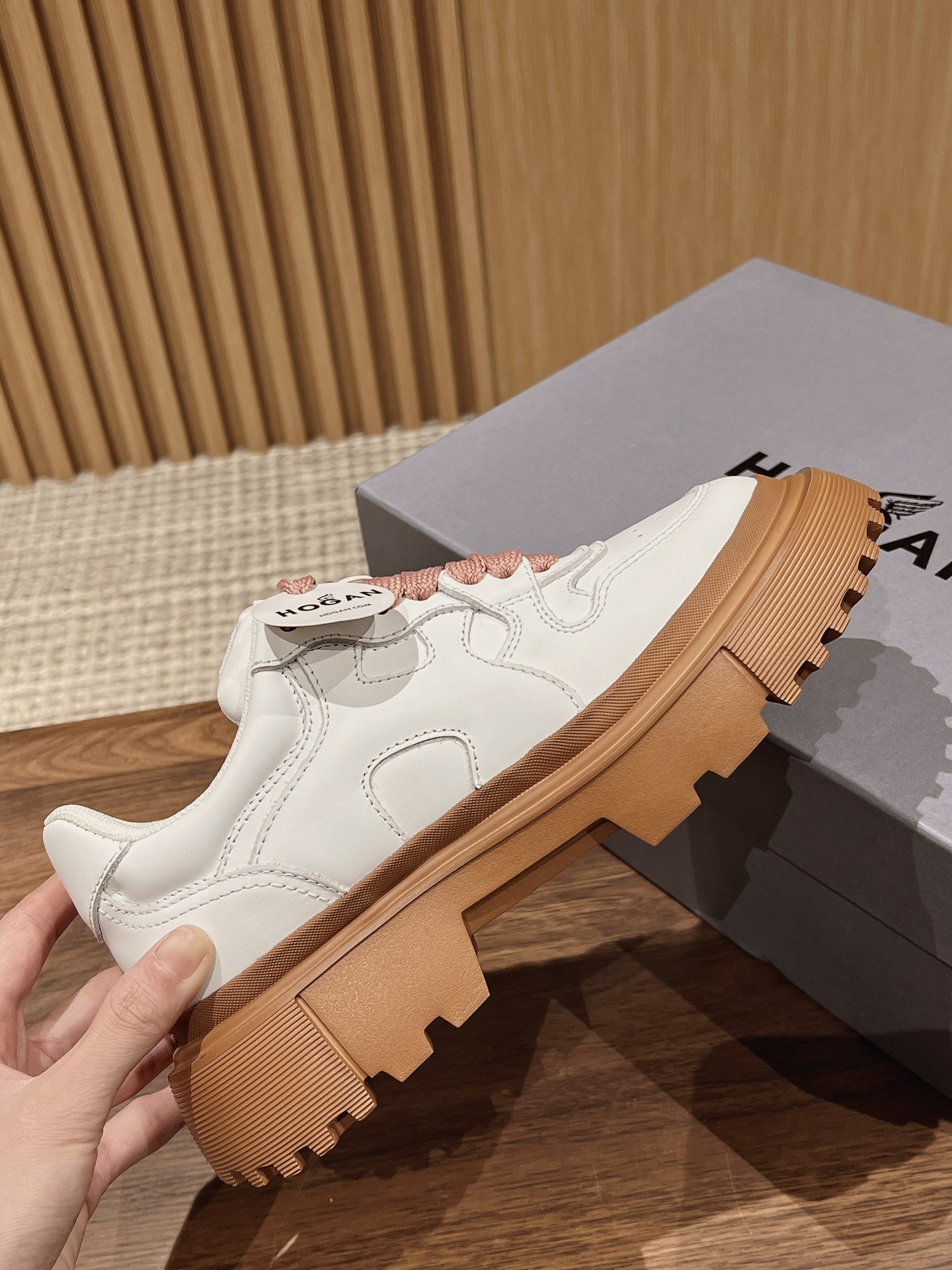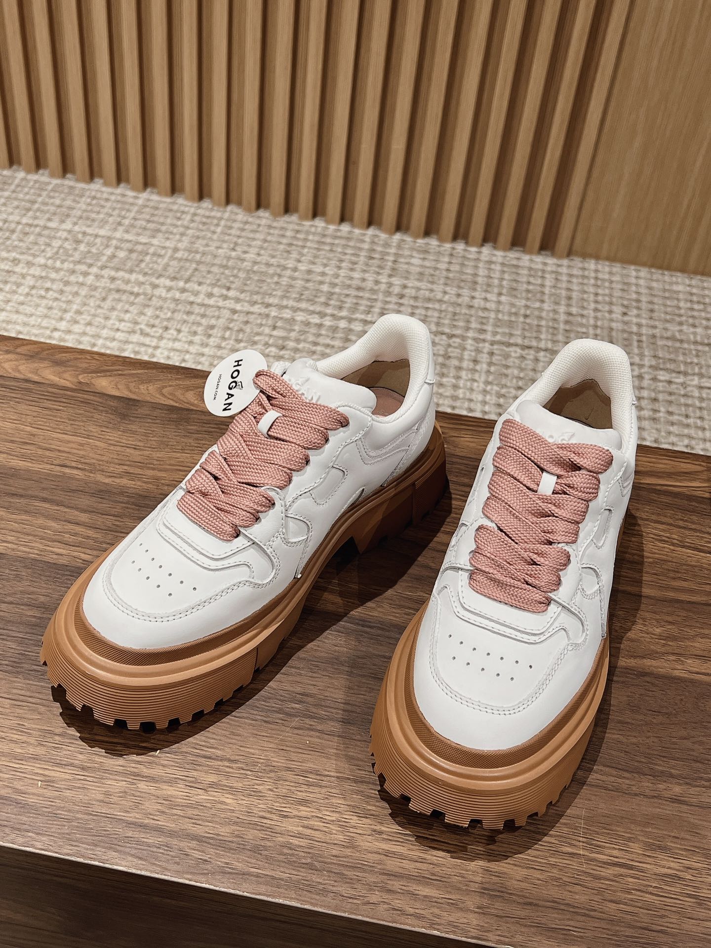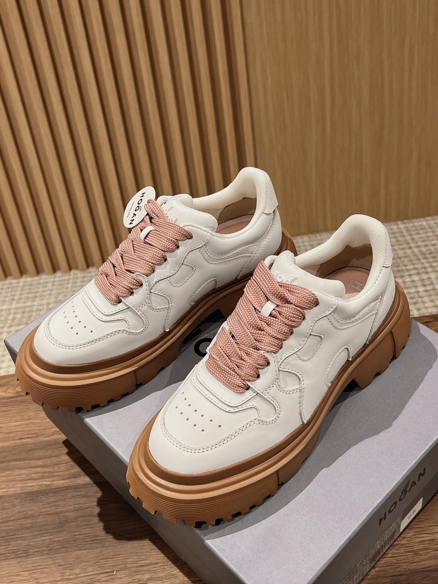 Original purchase development production This women's lace-up shoe interprets urban fashion with a sturdy thick sole design and military elements, featuring an H-shaped pattern on the sole. The dynamic lines of the sneaker complement the elegant texture of the leather, accented with a wavy H logo on the side. The memory foam insole provides cushioning and comfort, easily creating a casual and vibrant look.