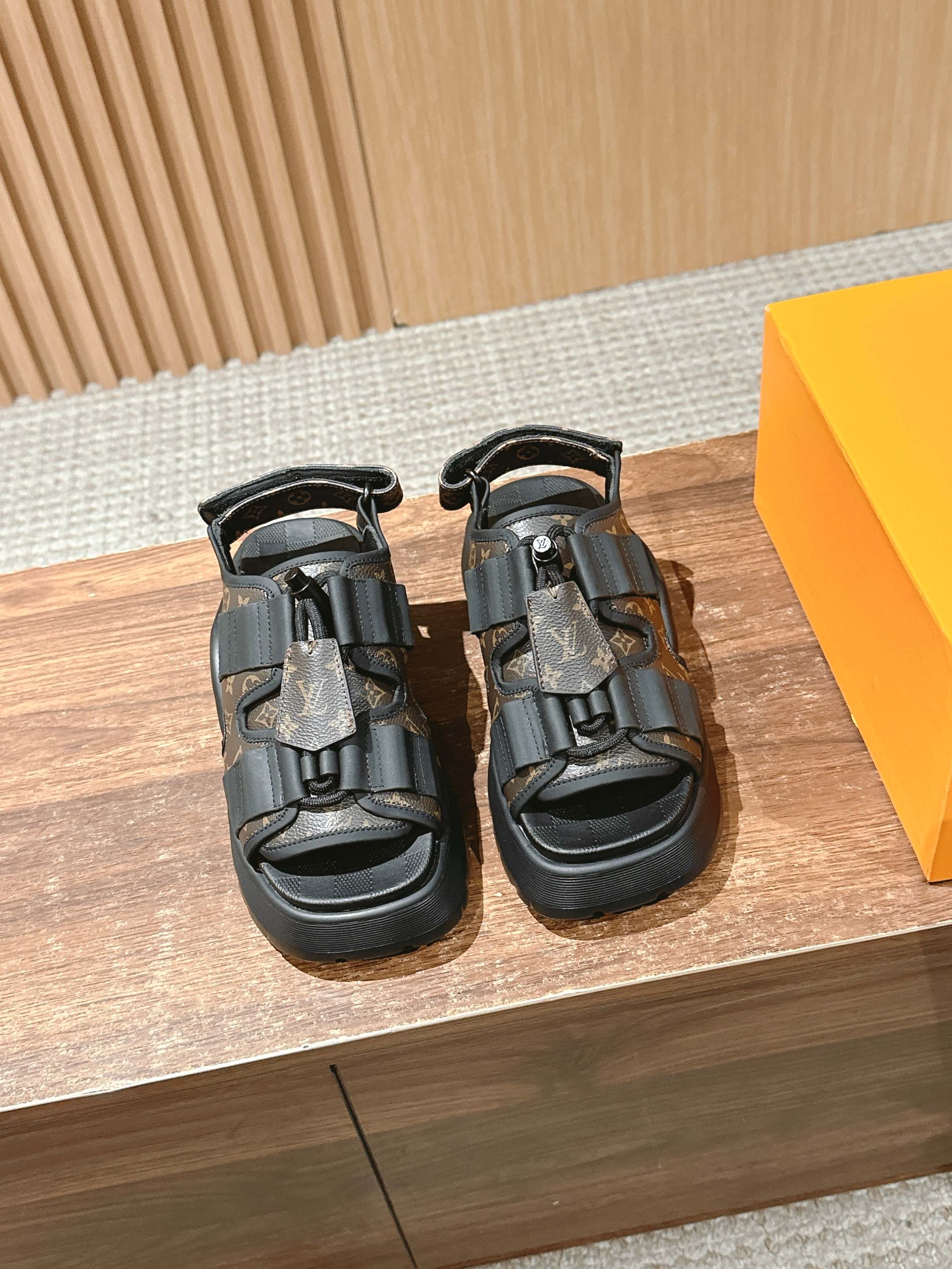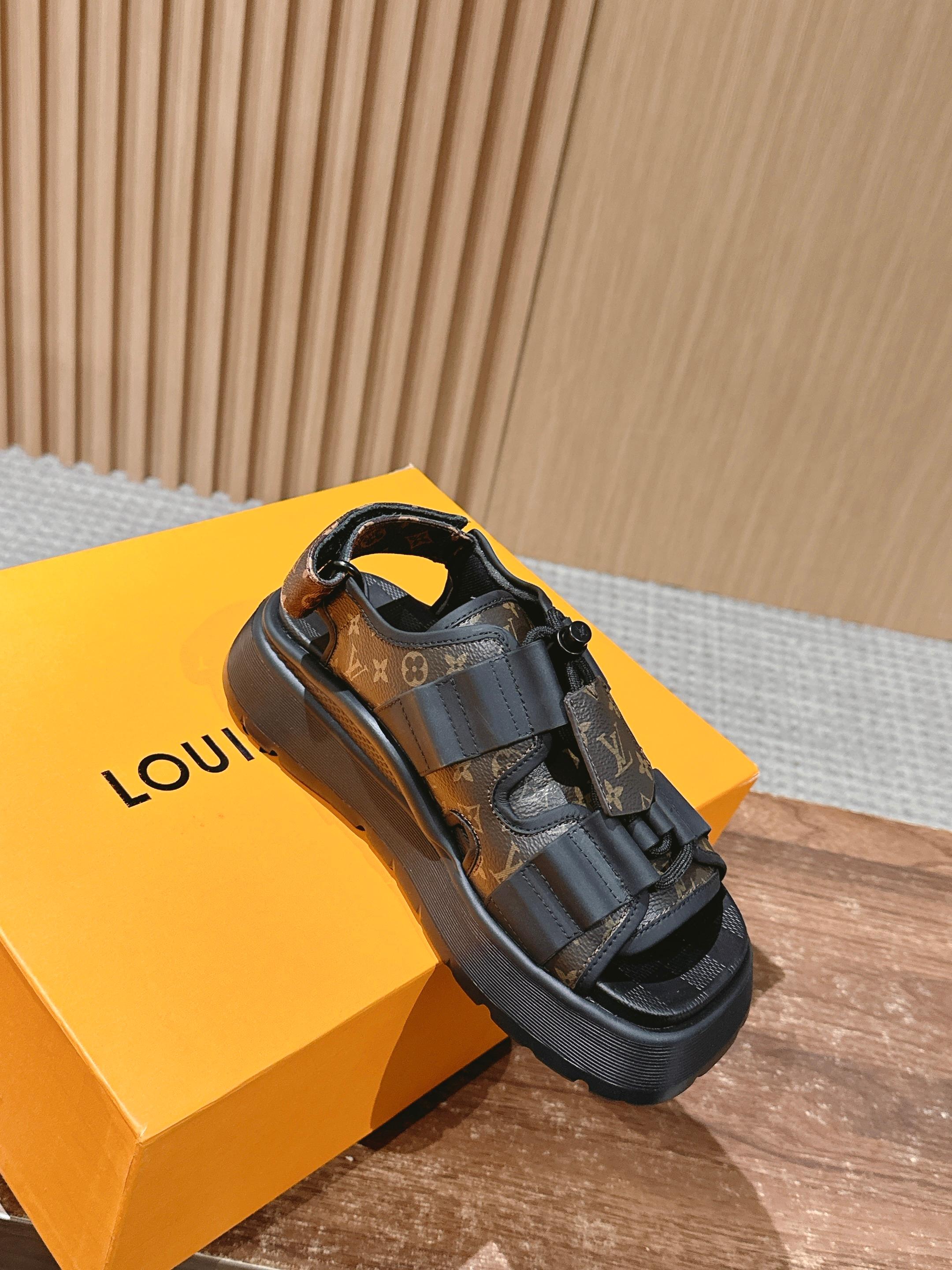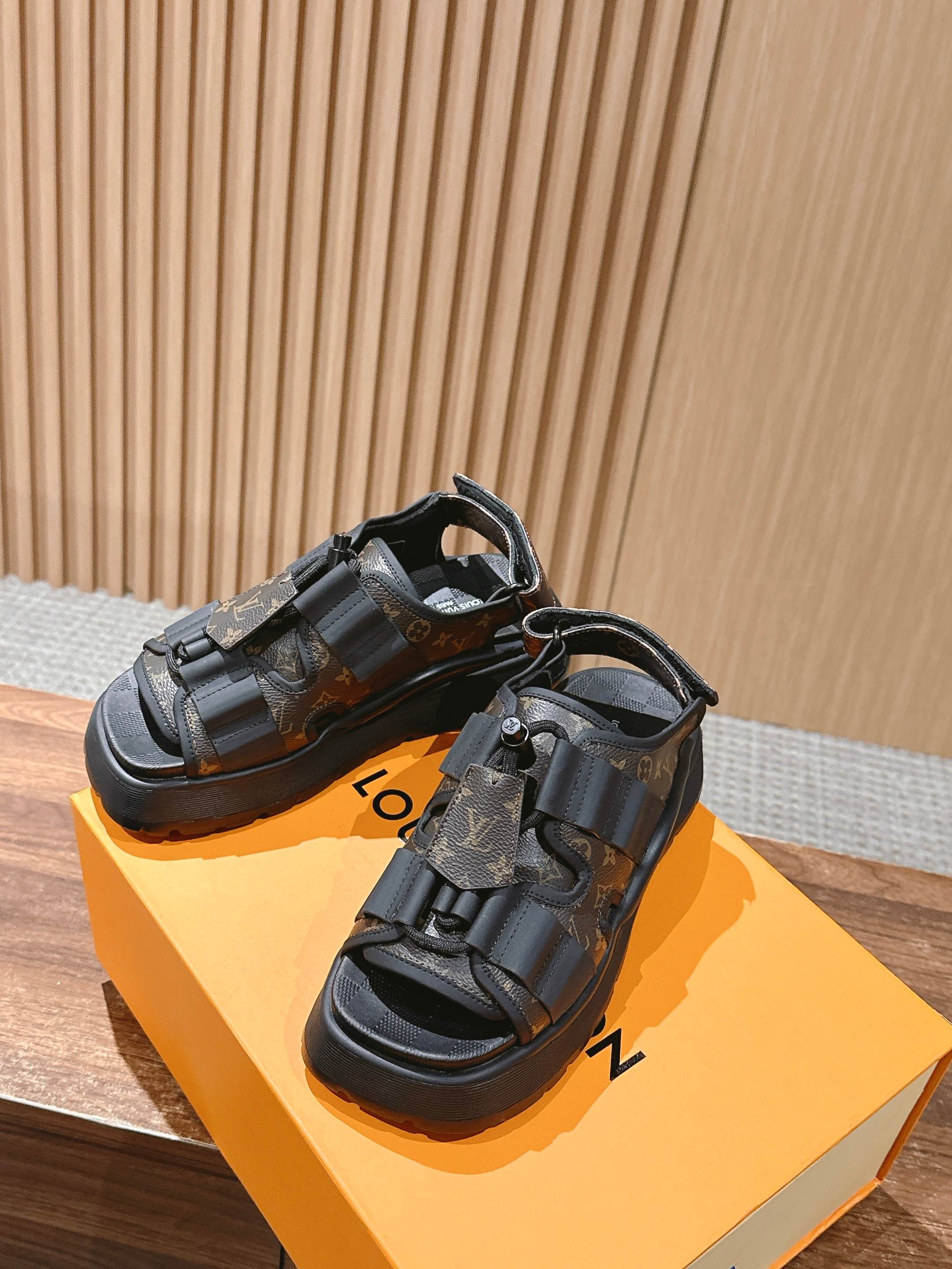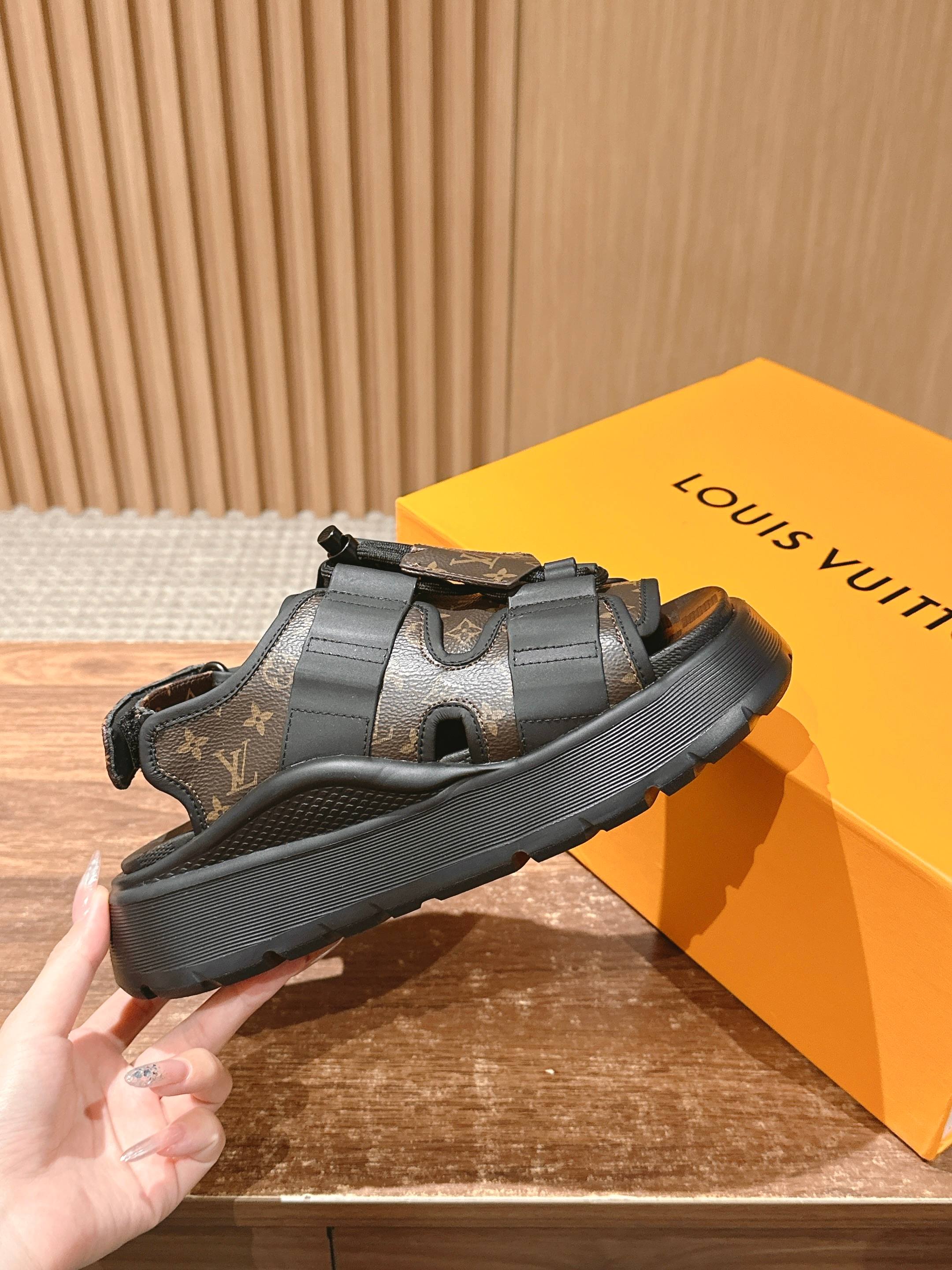 [Top Version] Louis Vuitton# Louis Vuitton's latest Chameleon velcro sandals combine canvas and suede calfskin, making a debut with avant-garde style at the 2025 Cruise early spring fashion show. Details are accentuated with leather bullet straps and Monogram canvas key pouch elements. A padded insole and rubber platform outsole provide a comfortable wearing experience. Calfskin/fabric laces with adjustable velcro straps.#