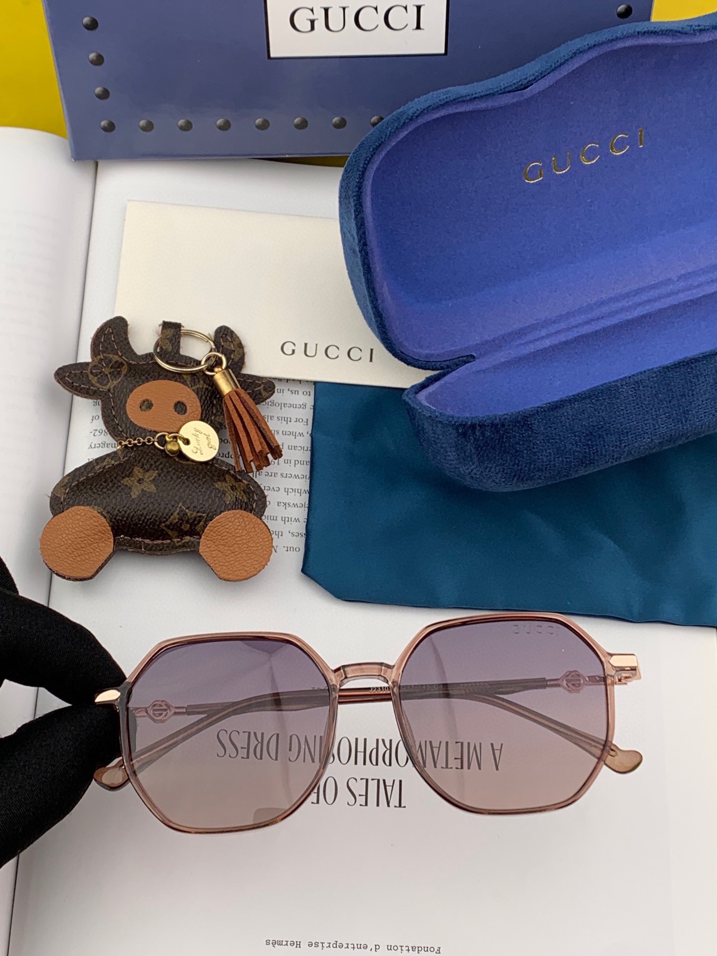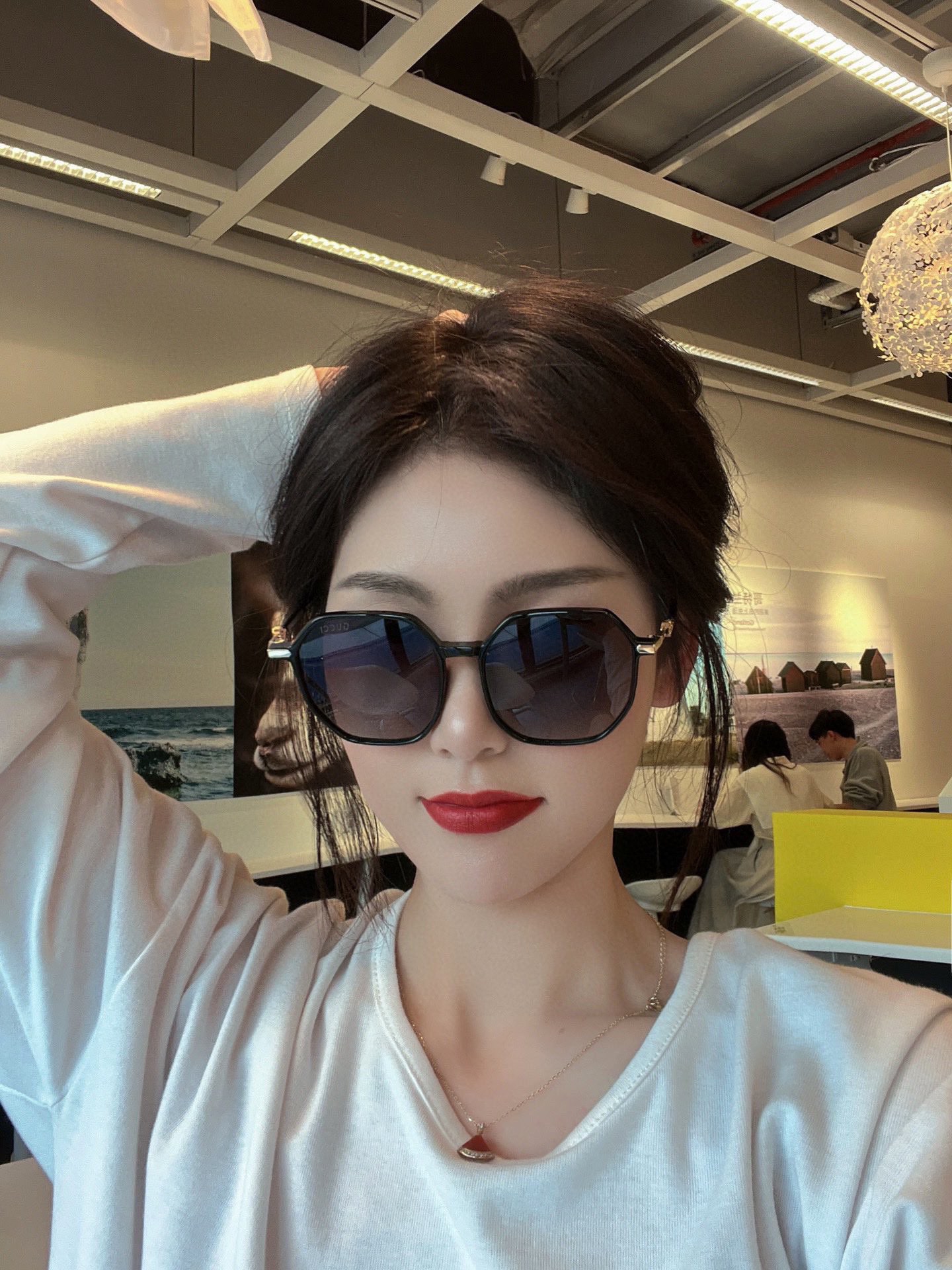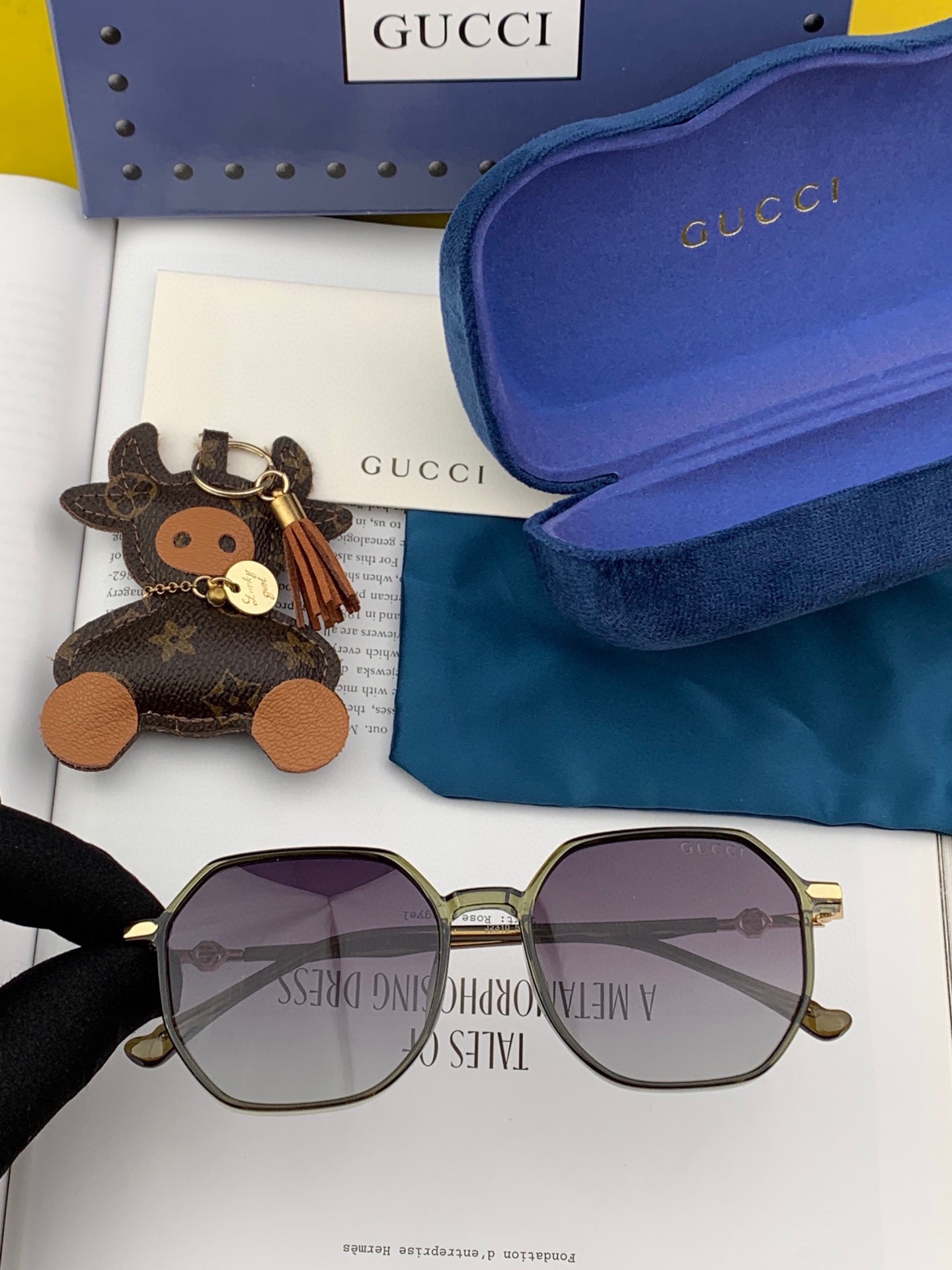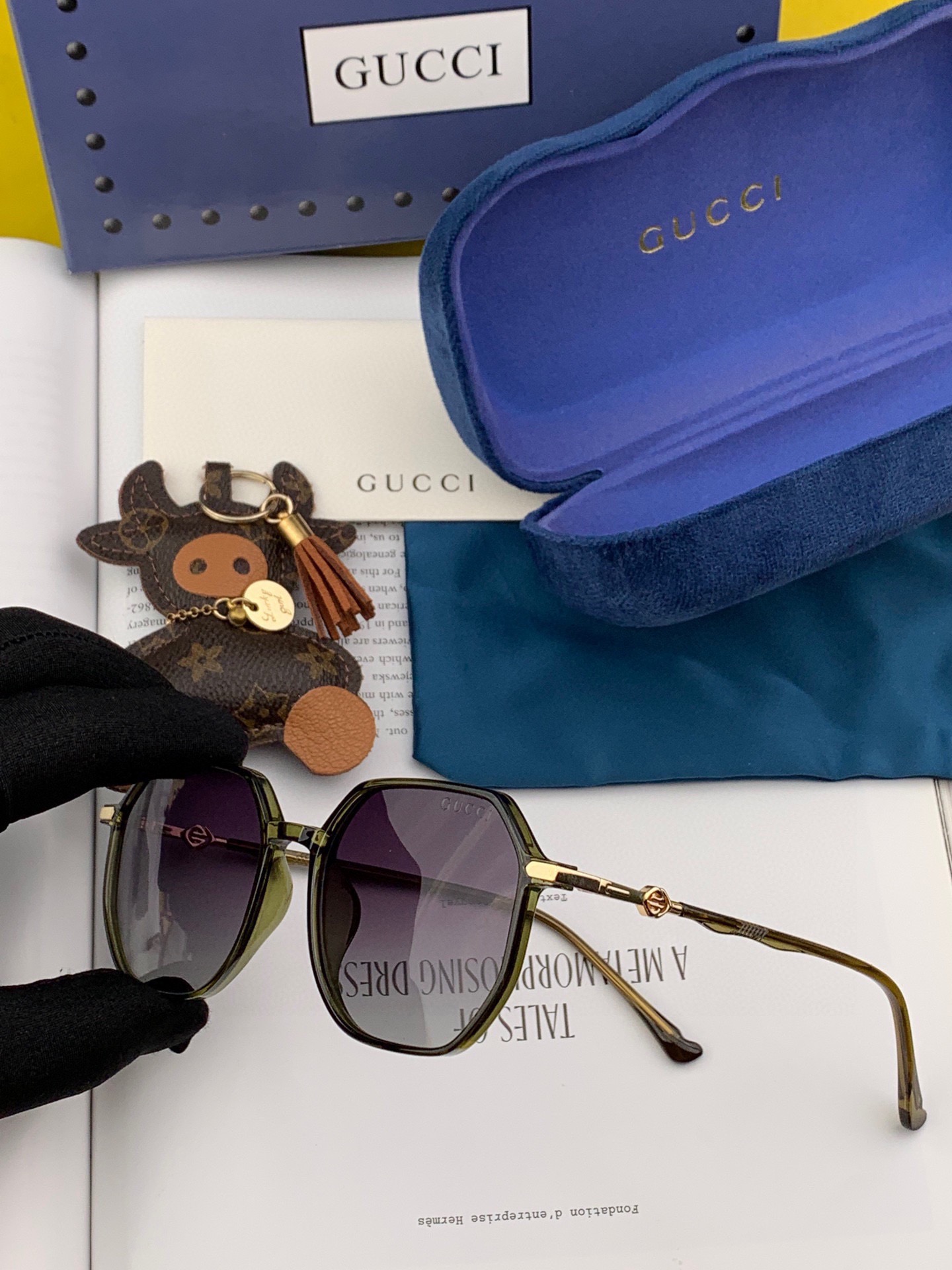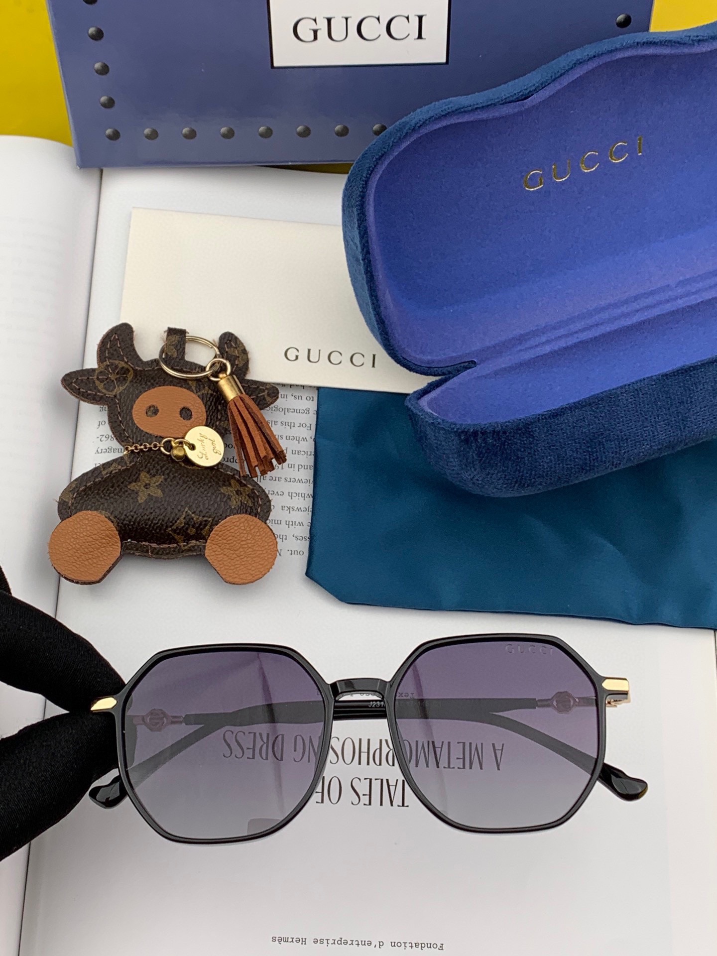 Gucci Classic square frame design, suitable for all face shapes, pairs well with coats or dresses, exuding elegance. Nylon polarized lenses protect against UV rays. Model: G1023