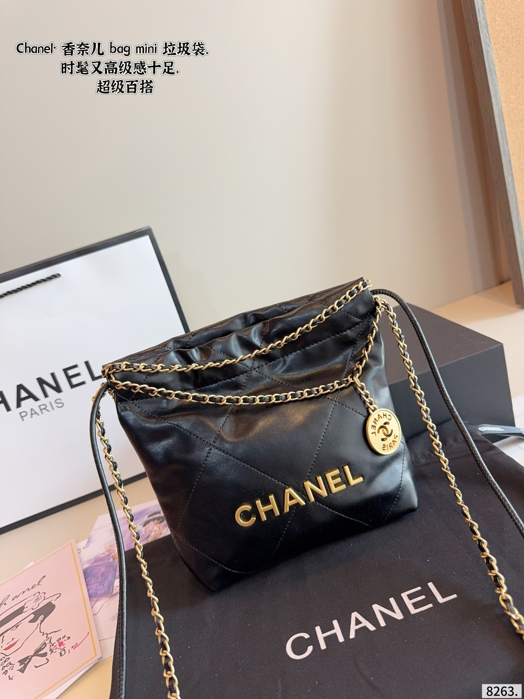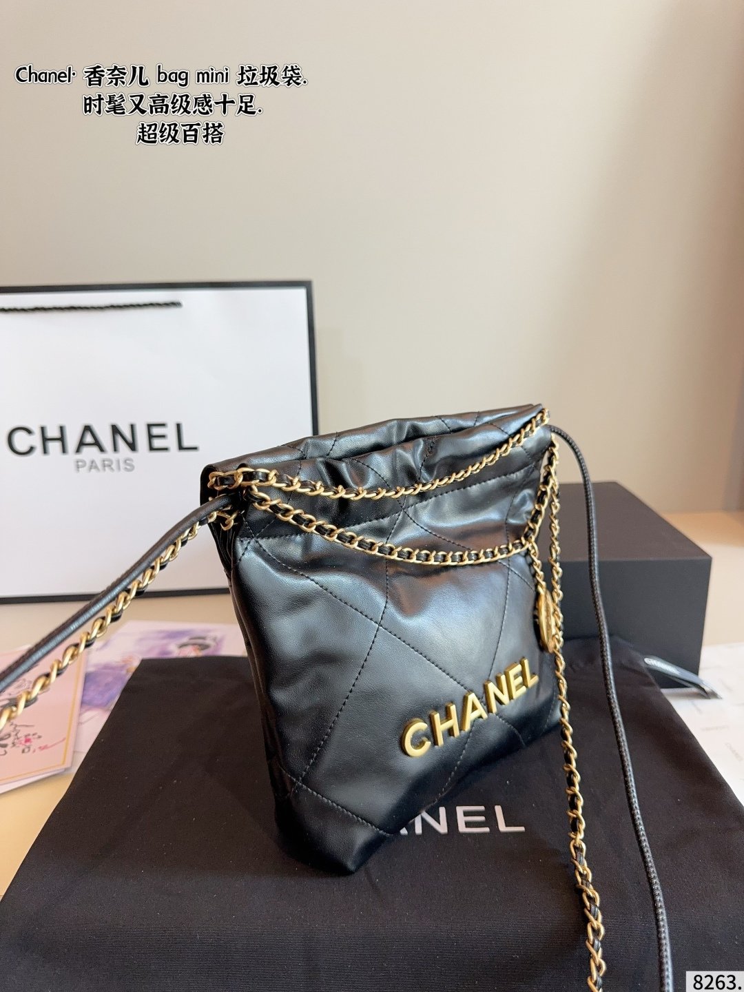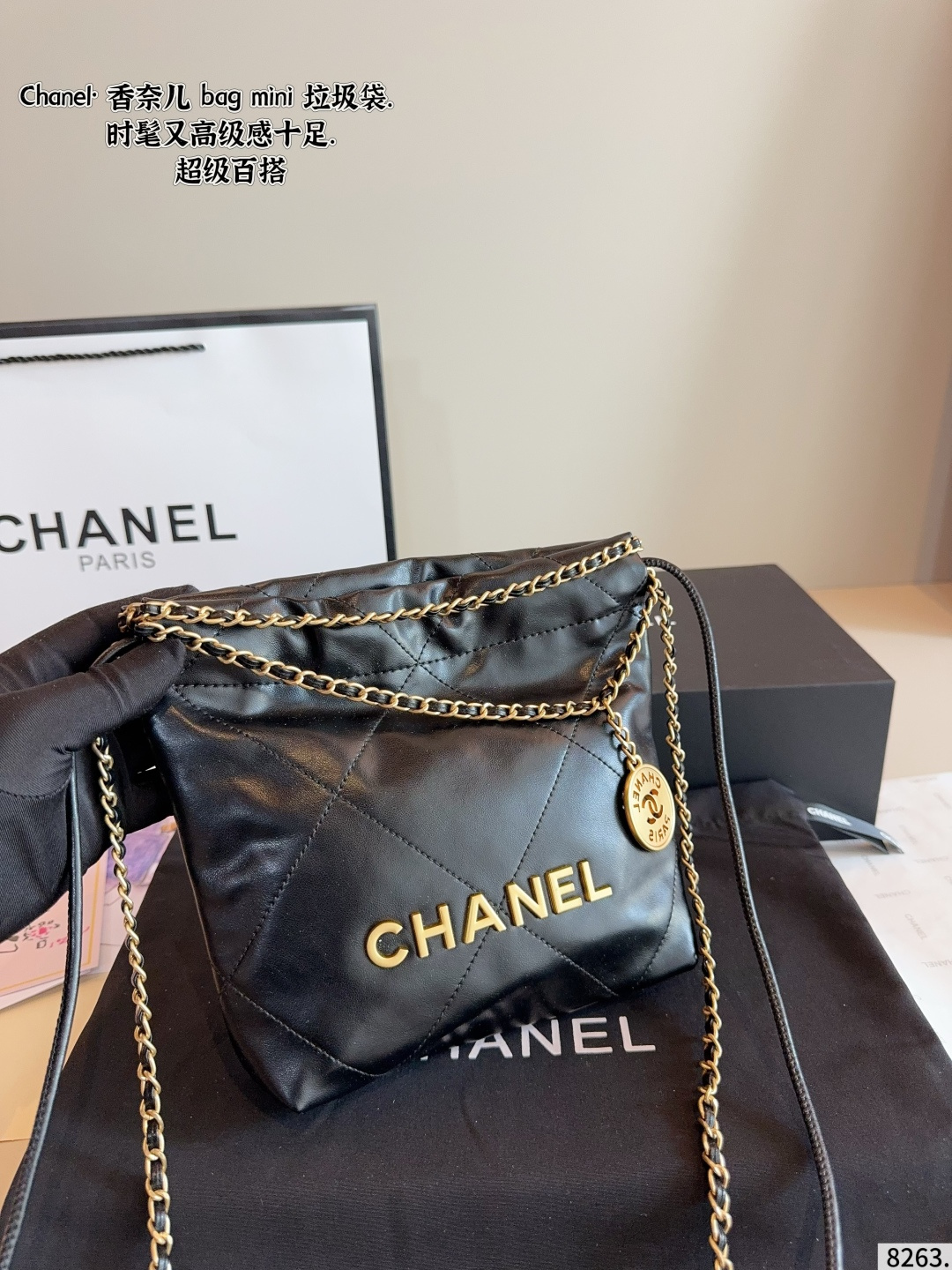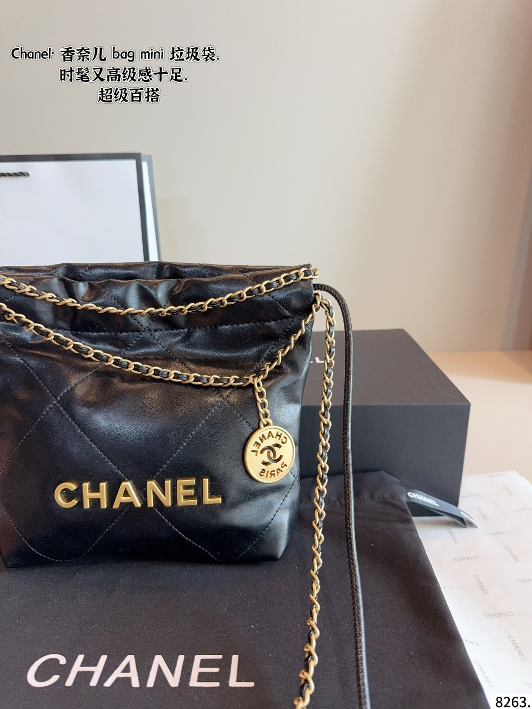 Chanel Early Spring Collection new chain trash bag tote coin bag. Superb feel, original hardware, ultra-luxury brand. With its gorgeous and elegant appearance, it has become the most sought-after piece. A must-have for everyone, highly praised by celebrities, exquisite craftsmanship. Dimensions: 18*6*21cm