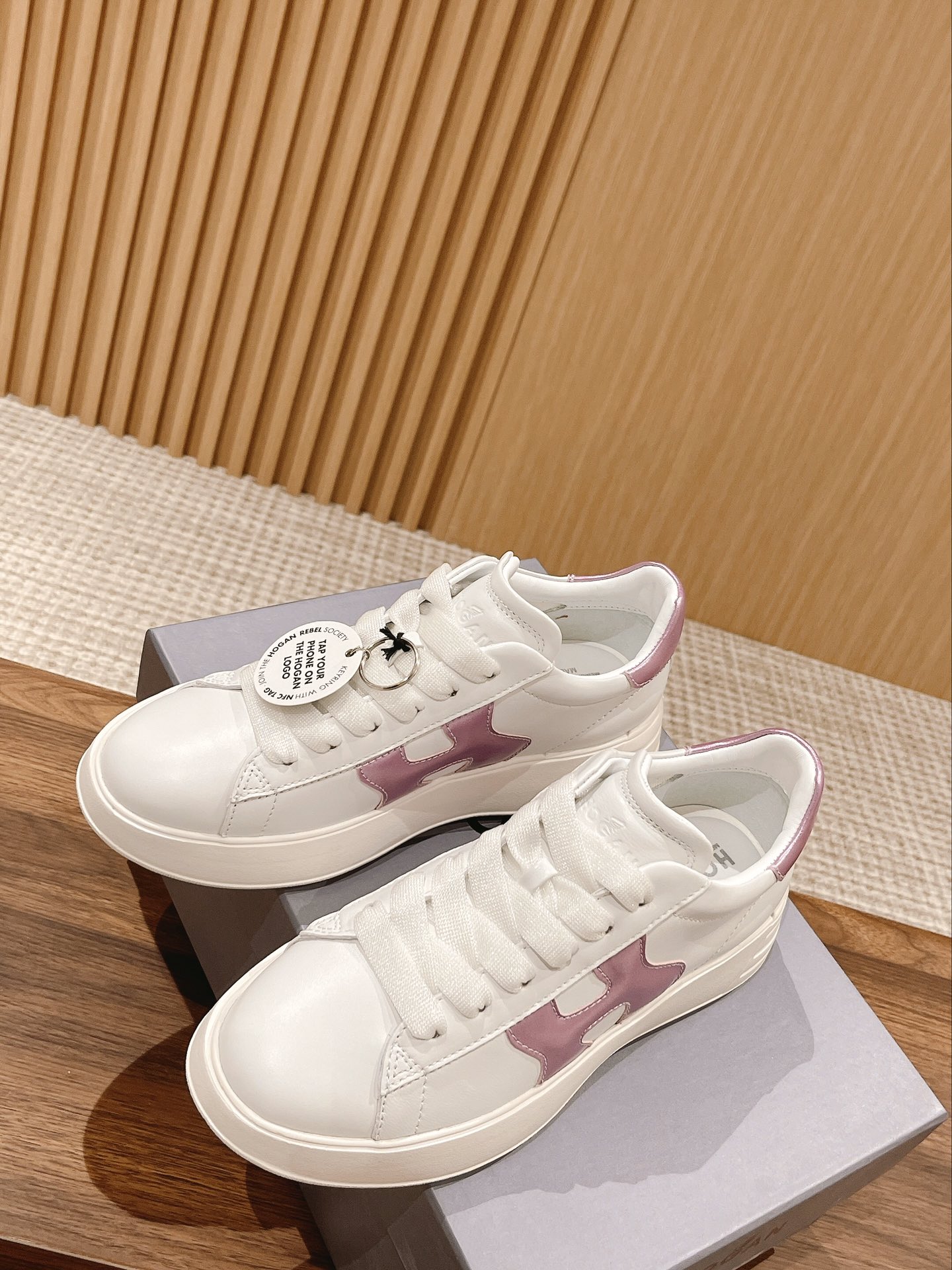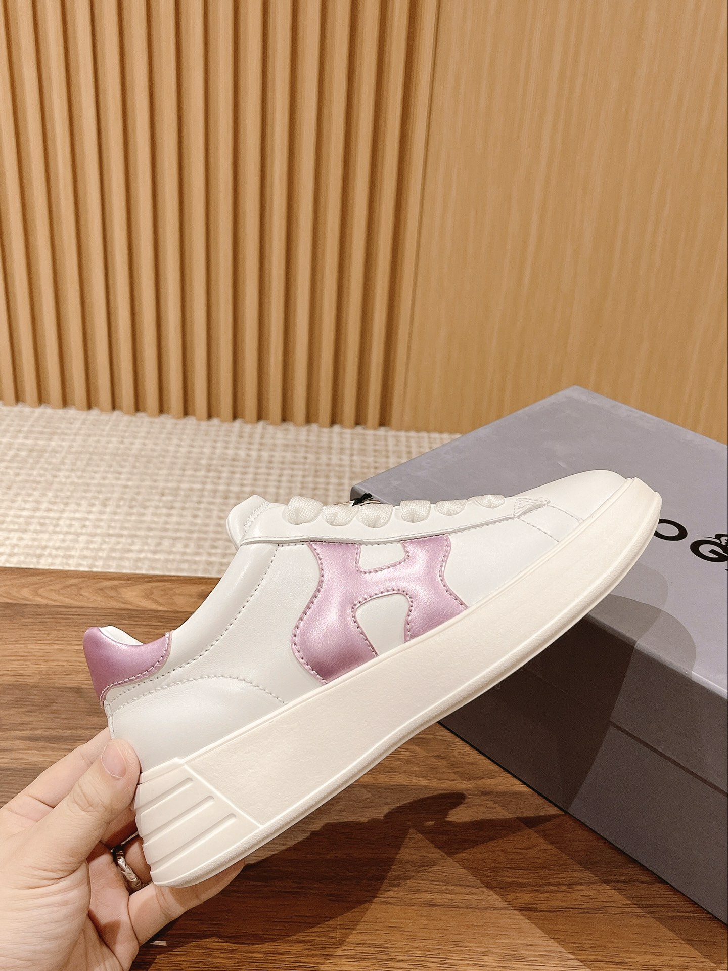 [Top Version] Hogan Rebel Atelier Letter Logo Laced Casual Sneakers, same style as Zhao Lusi. Lively interpretation ~ Follow the brisk pace of the fresh Chengdu girl and seek out excitement! Simple and stylish, quiet and beautiful. Sharpening the axe won't delay the job of cutting wood, long-awaited and finally here. Focused on Hogan for so long, must achieve extreme perfection! When released, it must be a blockbuster. Upper: Original top-grain leather + custom sponge. Lining: Custom high-density space cotton. Outsole: Proprietary mold foamed lightweight sole, will not turn yellow! Size: #35-40 (Size 40 is custom-made and non-returnable)