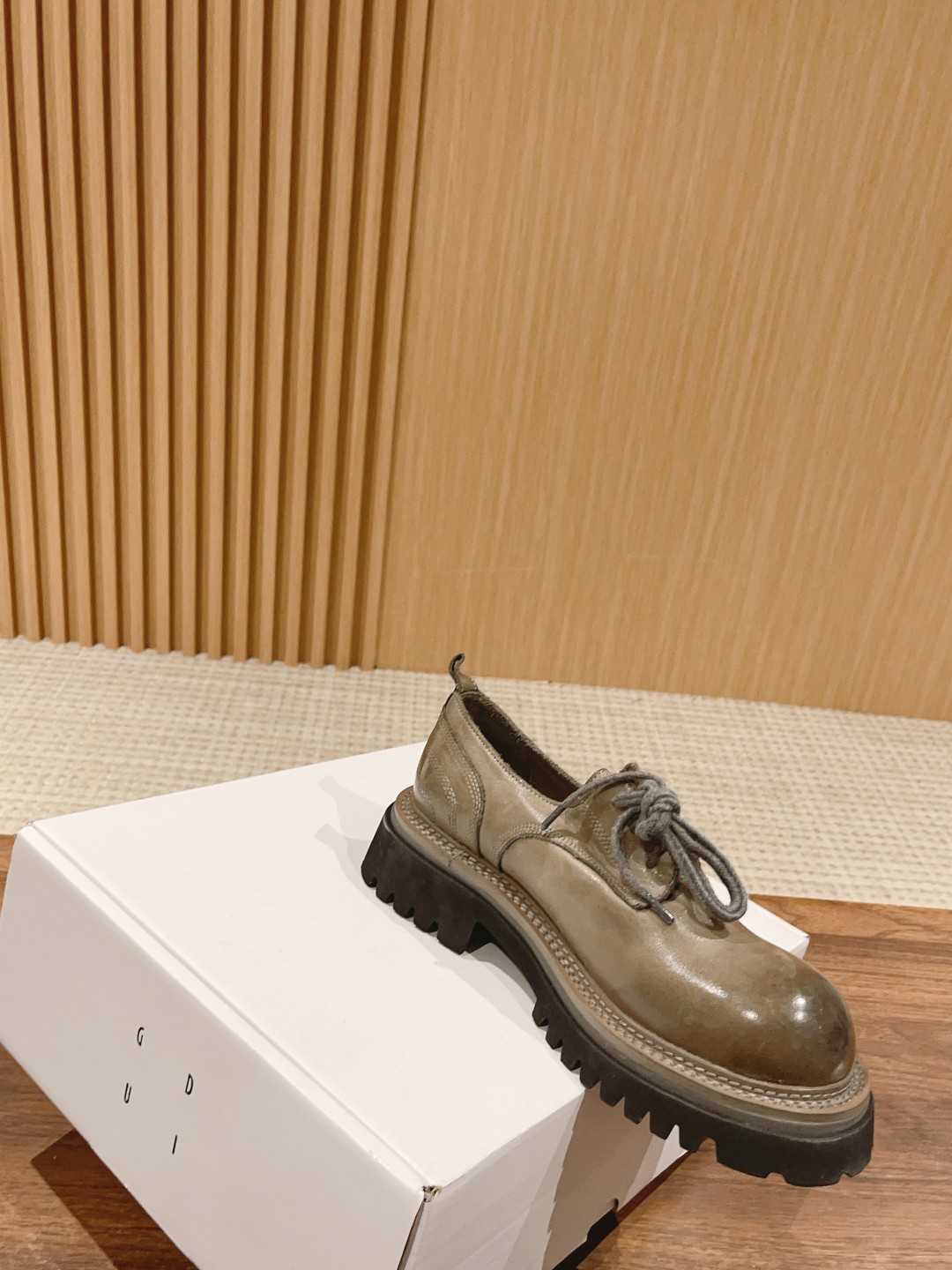 [Top Version] GUIDI | Washed Vintage Derby Handmade Shoes