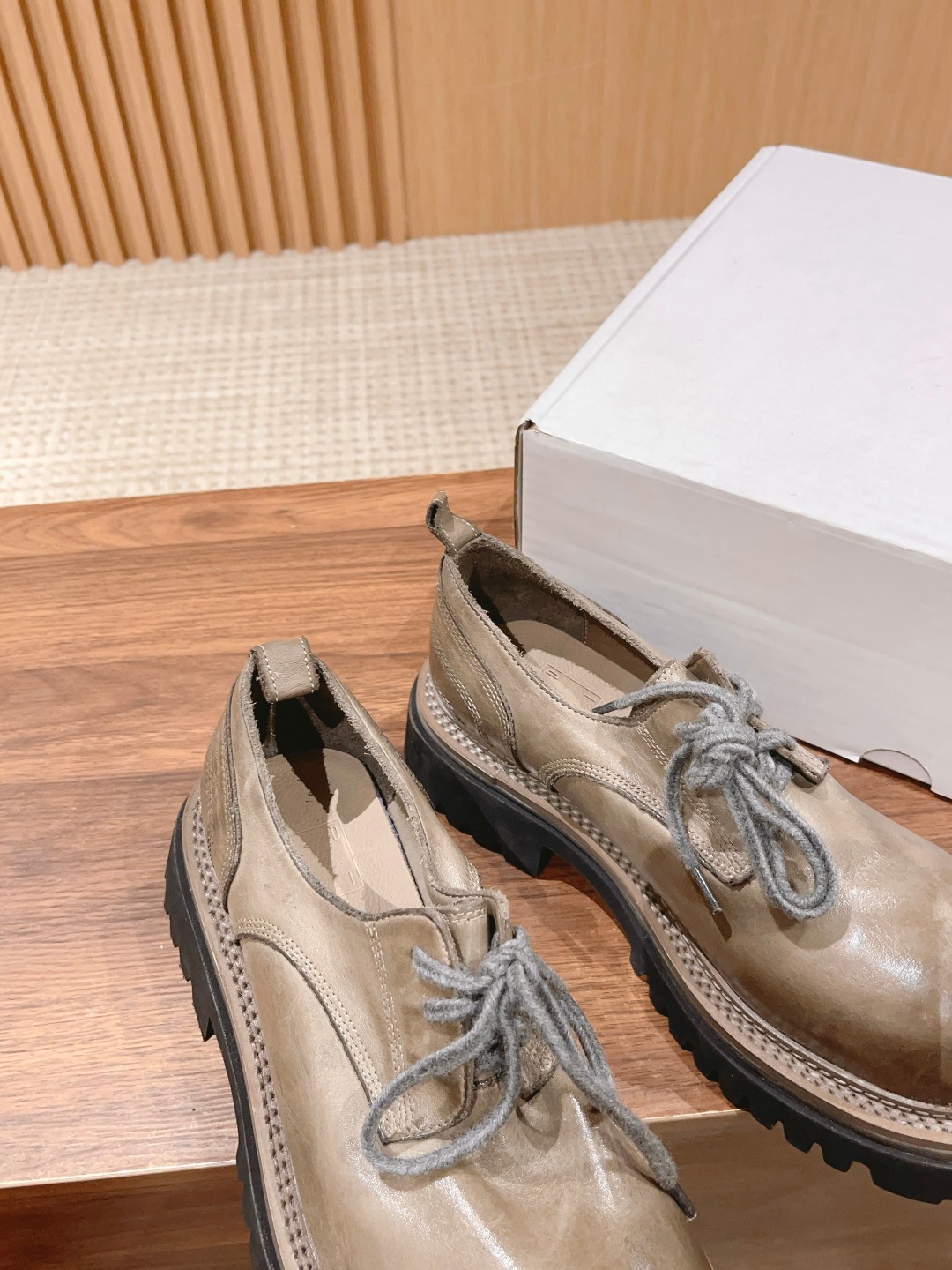 Handmade shoes emphasize a free-spirited nature, just like people. Each pair has its own character, unique features, no fixed template, and no two are exactly alike! Irregularity is a hallmark of handmade shoes, embracing a retro, casual feel with a natural aged appearance. The shoe's color and creasing resemble marks from long-term wear, becoming more natural over time and developing more character with each wear. Every pair is unique~