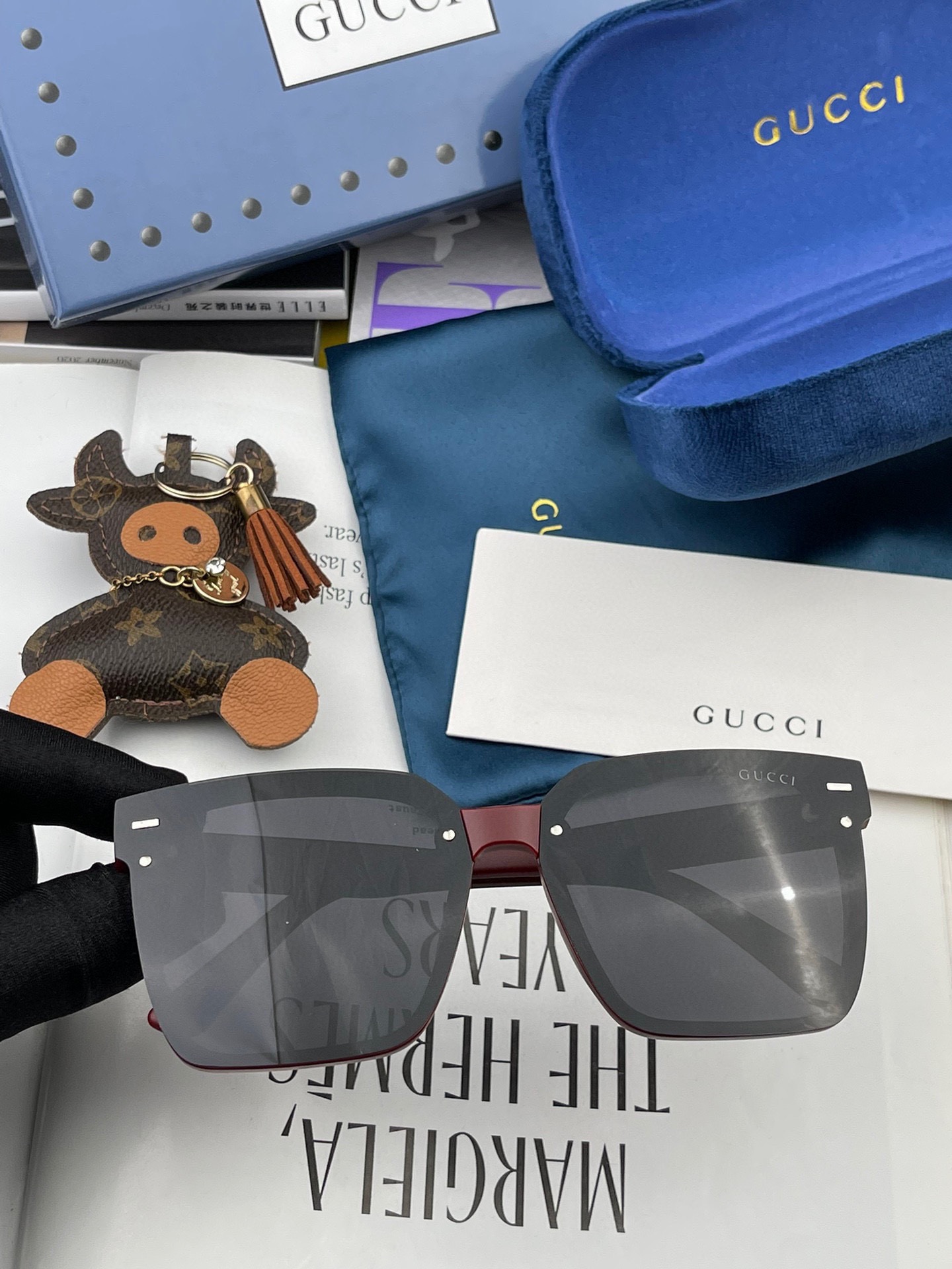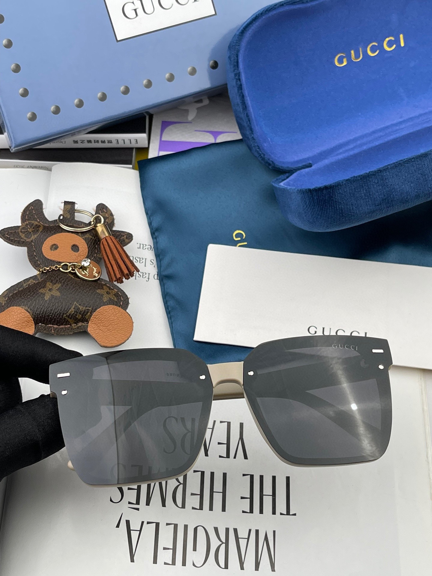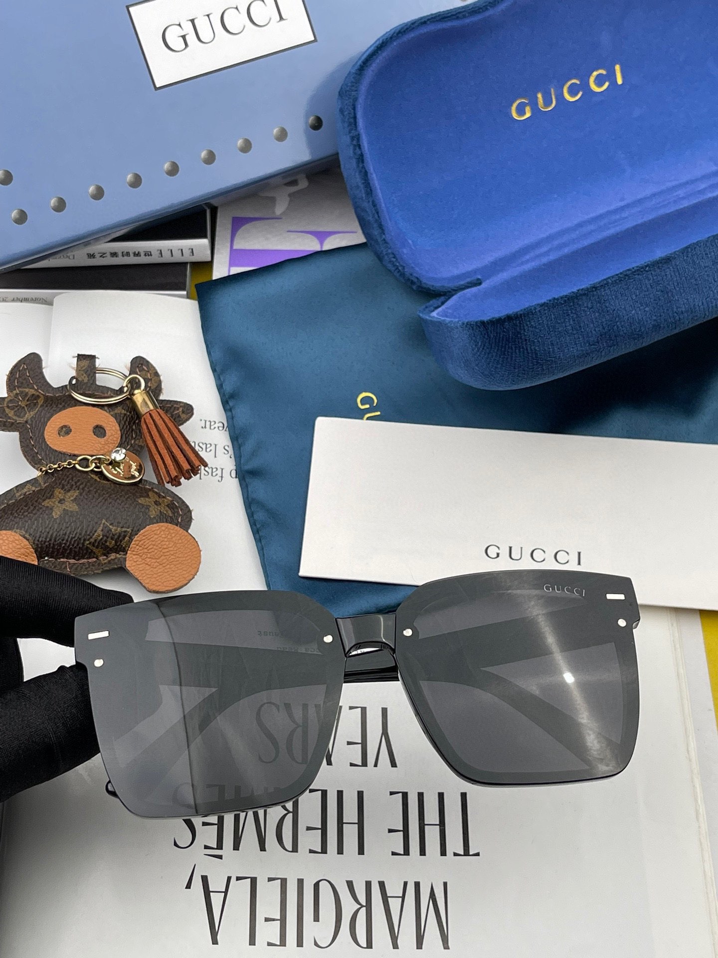 Gucci classic square frame design, suitable for all face shapes, pairs well with coats or dresses, very elegant. Nylon polarized lenses prevent UV rays. Model: G7292