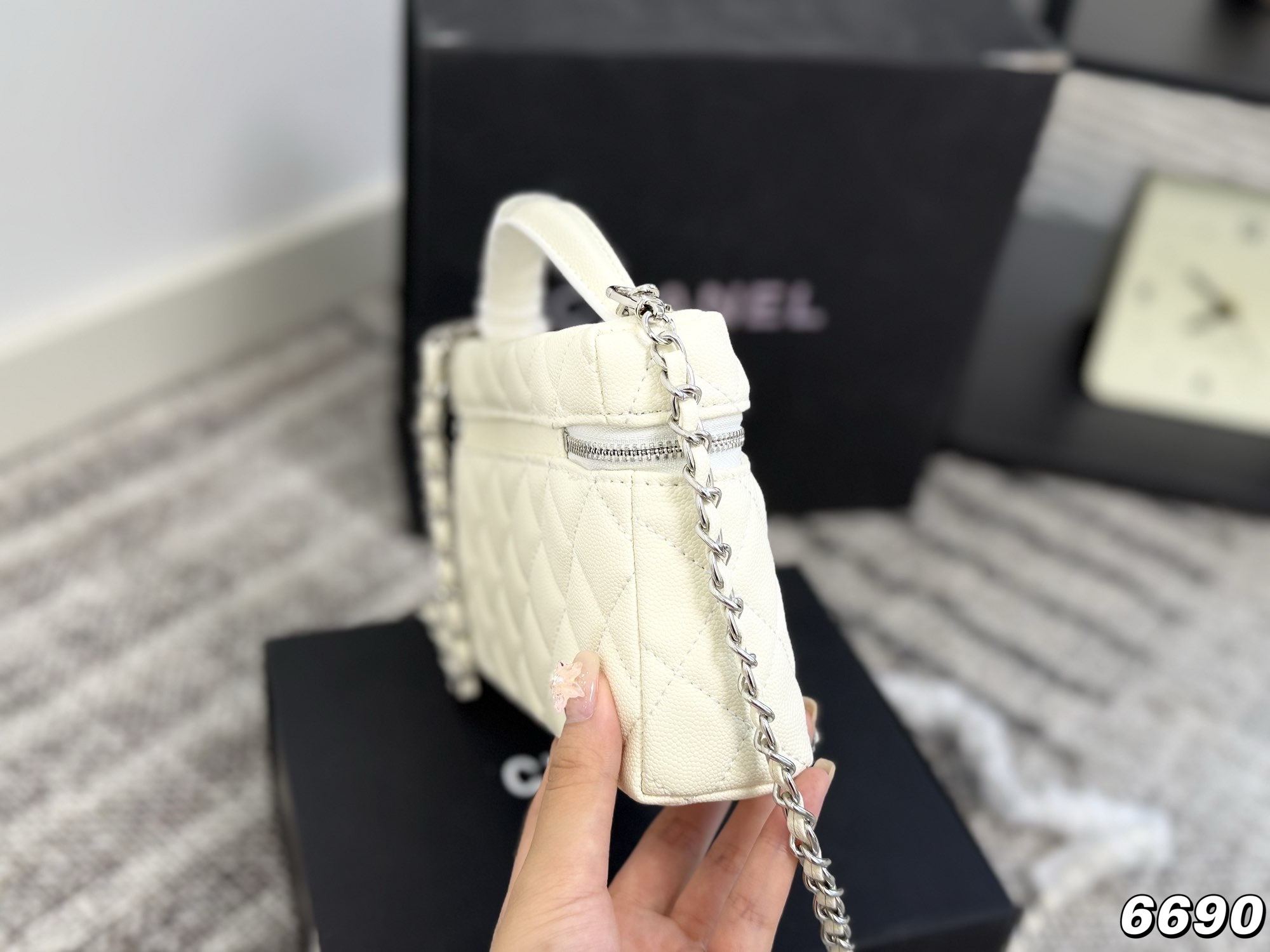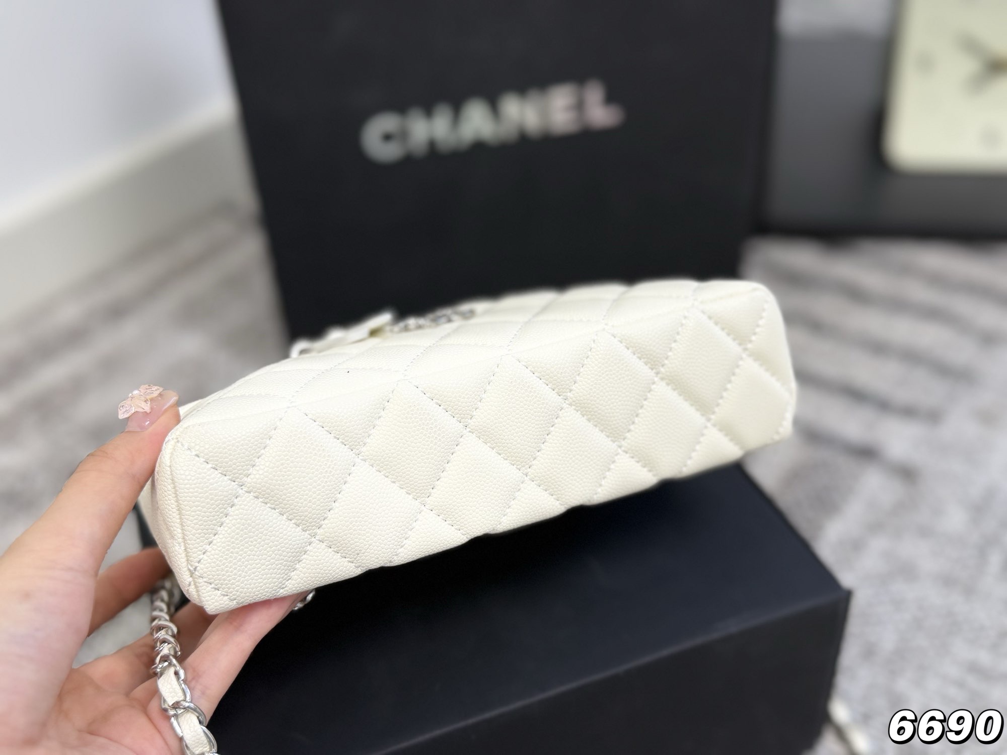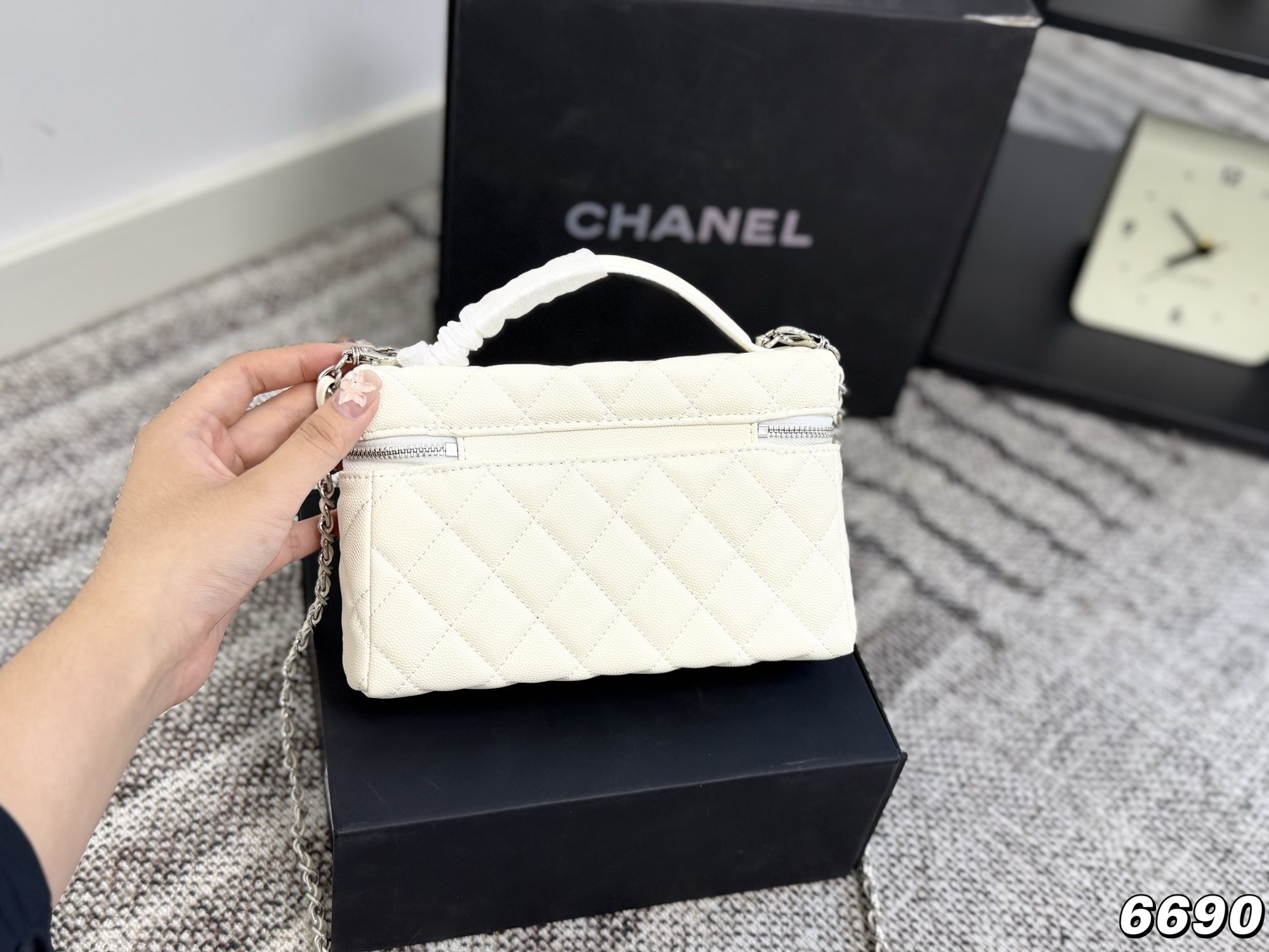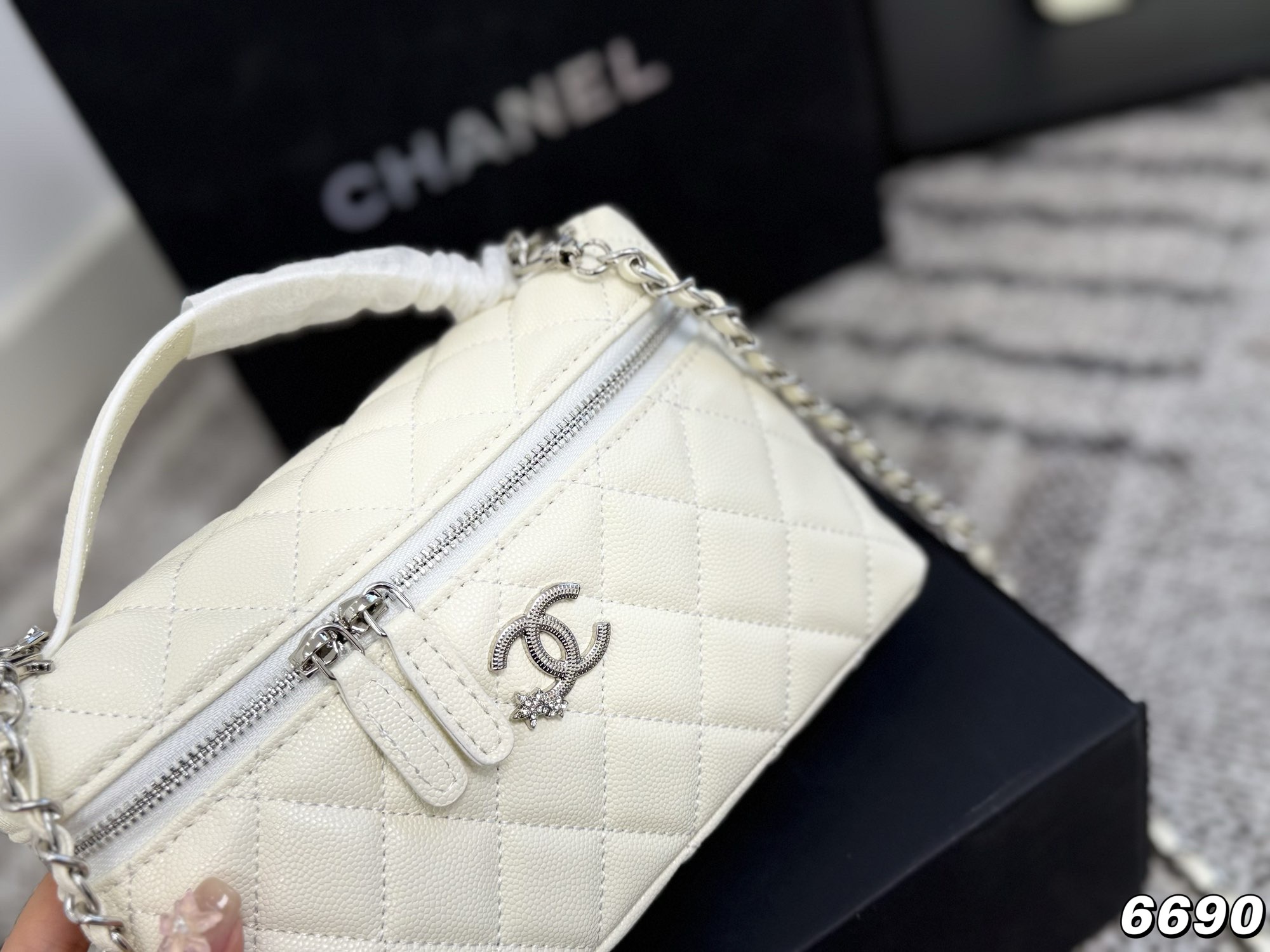 Chanel | 25P New Silver Star Small C Buckle LP Lunch Box Bag in White. So cute! It's also perfect for summer. The simple and elegant design makes it very versatile!