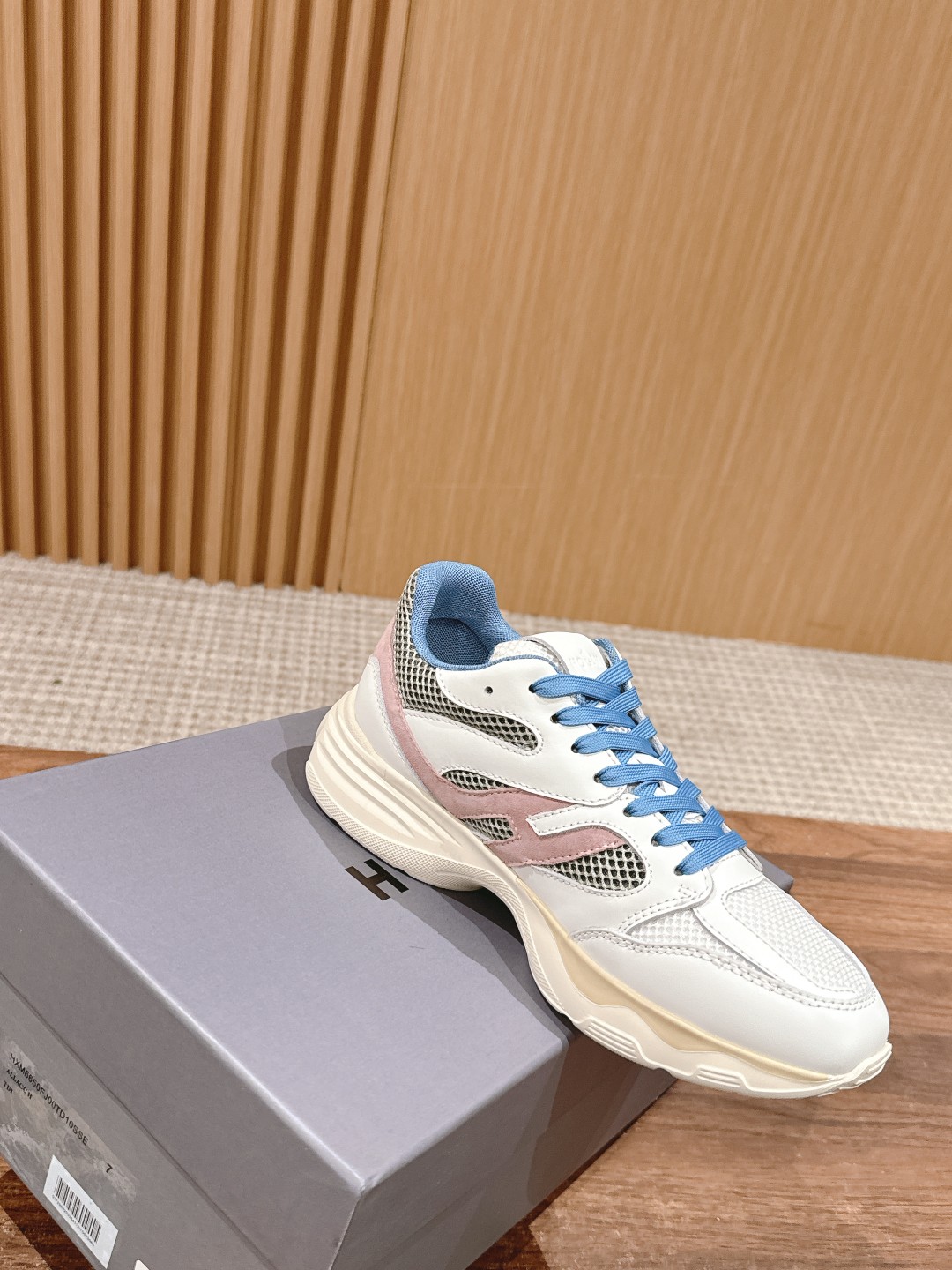 Special shoe design makes it soft and lightweight, leather and mesh fabric design, gently wraps the feet. Side decorated with H letter extending to the heel, paired with dual-color EVA outsole, memory foam insole for cushioning and comfort, gently wraps the feet.