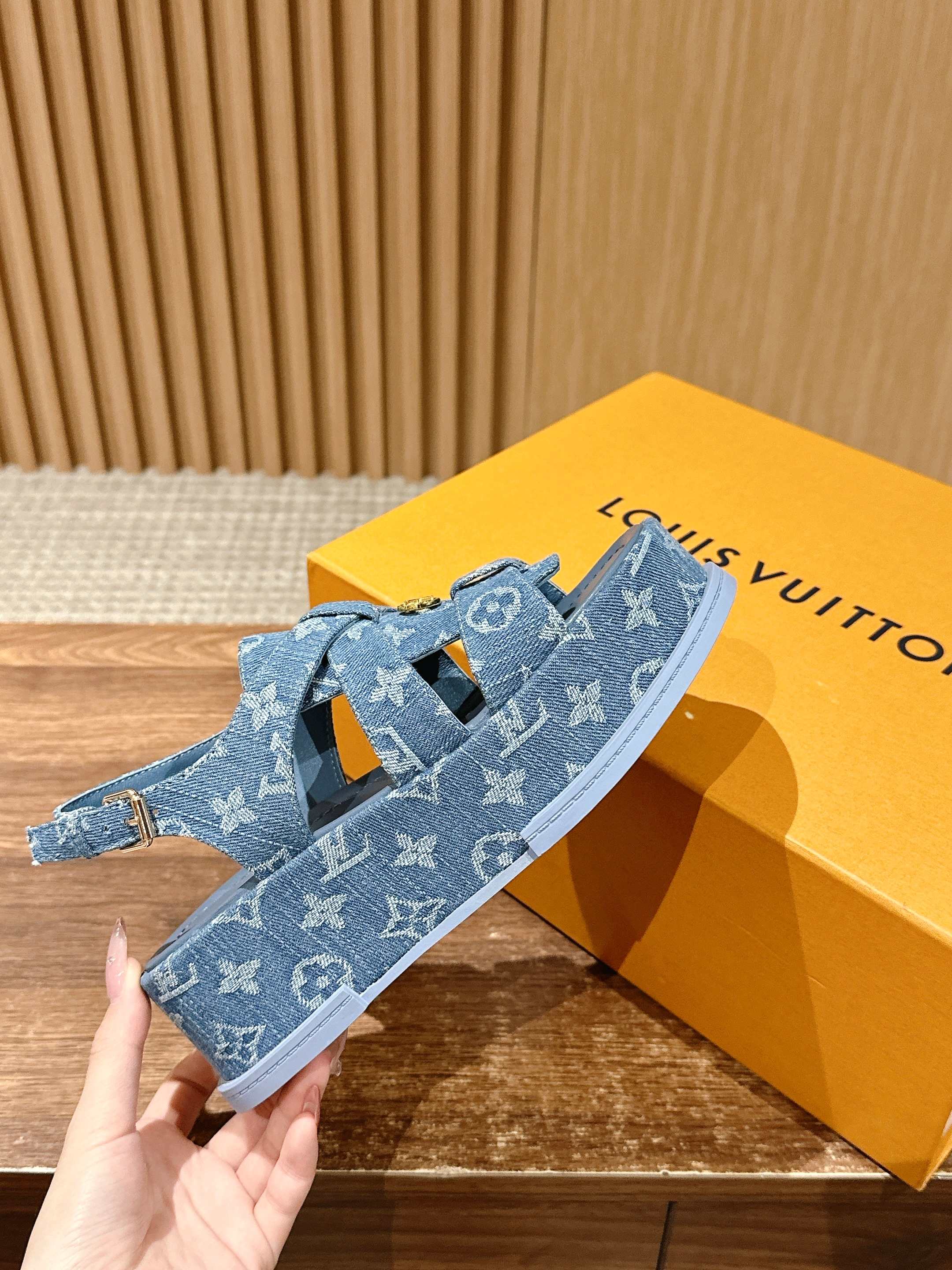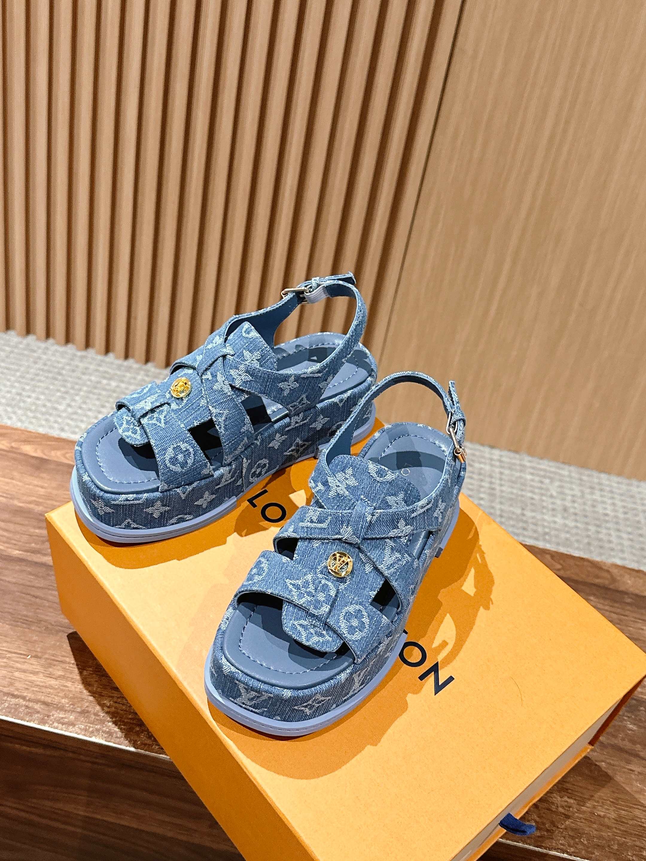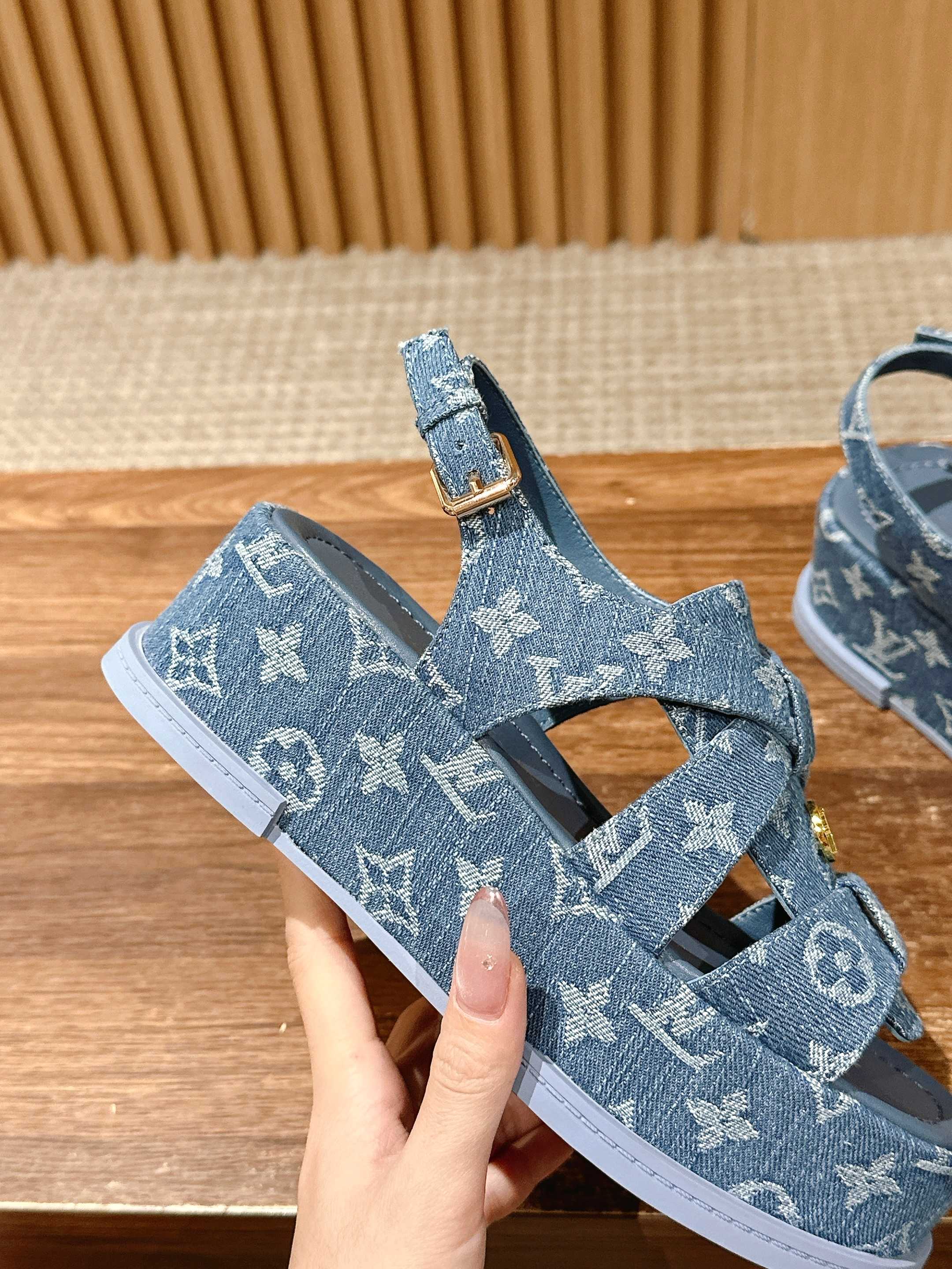 [Top Version] Louis Vuitton 2025/SS Louis Vuitton Spring/Summer Jelly Sandals. This Maya Flatform sandal is made of smooth calf leather, with wide straps passing through the leather tongue, and features a metal LV Circle logo that adds brand heritage. The lightweight leather thick sole enhances the elegant style. Thick sole: 5cm. Size: 35-39 (Size 40 is custom-made and non-returnable).