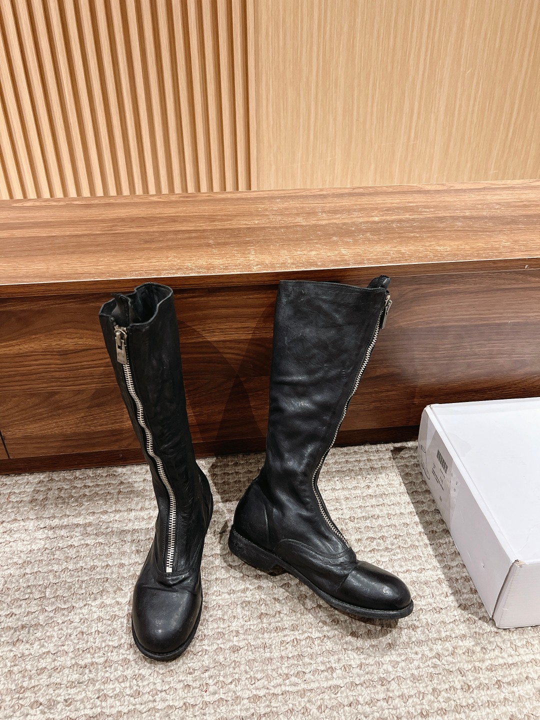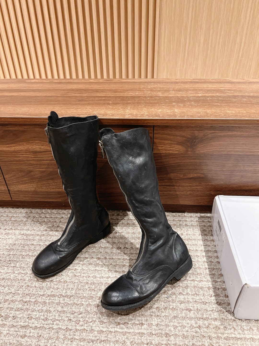 Top version Guidi washed retro Chelsea Derby handmade shoes. Unique irregular design, natural aged look. Thick sole enhances proportions. Upper: washed horsehide, lining: washed cowhide, sole: imported. Sizes 35-40.