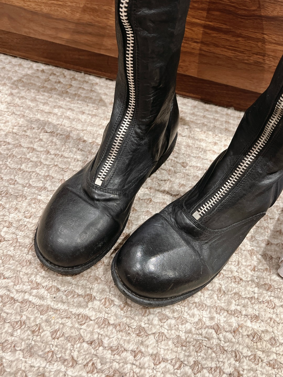 Home • Shoe • Top version Guidi washed retro Chelsea Derby handmade shoes. Unique irregular design, natural aged look. Thick sole enhances proportions. Upper: washed horsehide, lining: washed cowhide, sole: imported. Sizes 35-40.