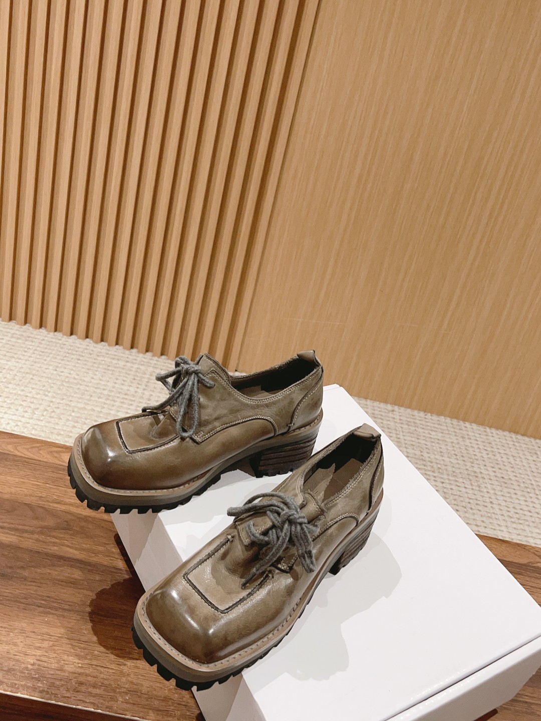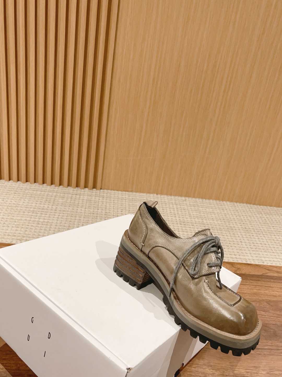 Home • Shoe • Top Version GUIDI | Washed Vintage Derby Handmade Shoes. Unique, irregular style with natural aging. Thick sole enhances height. Materials: washed horse leather upper and lining, 7cm heel, 2.5cm front, TPU sole. Sizes 35-39.