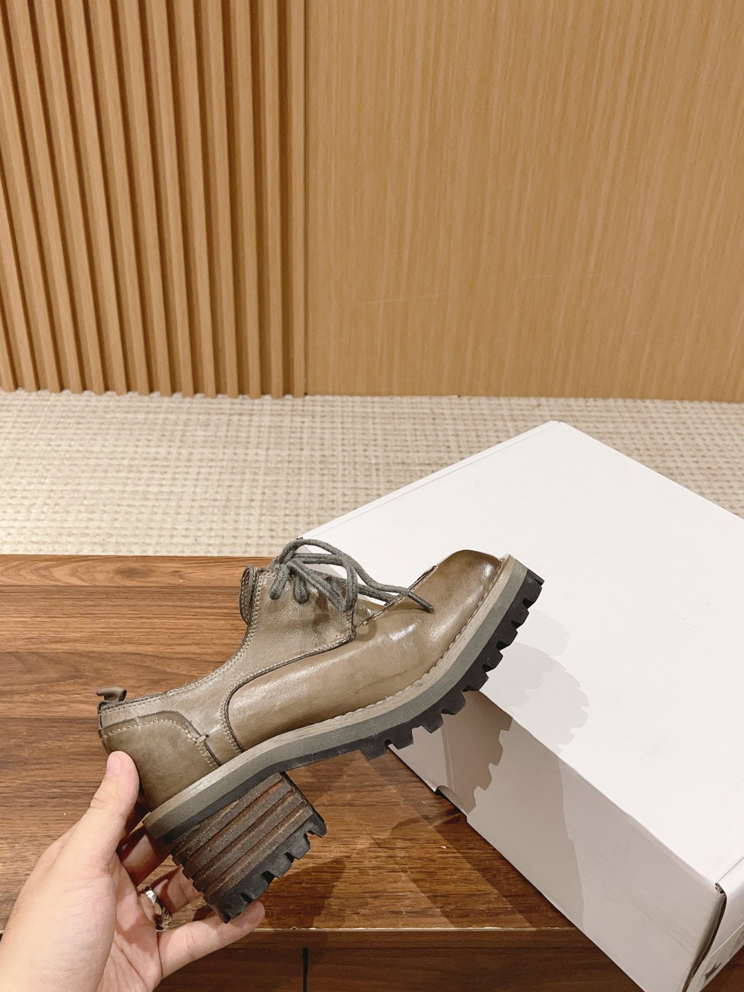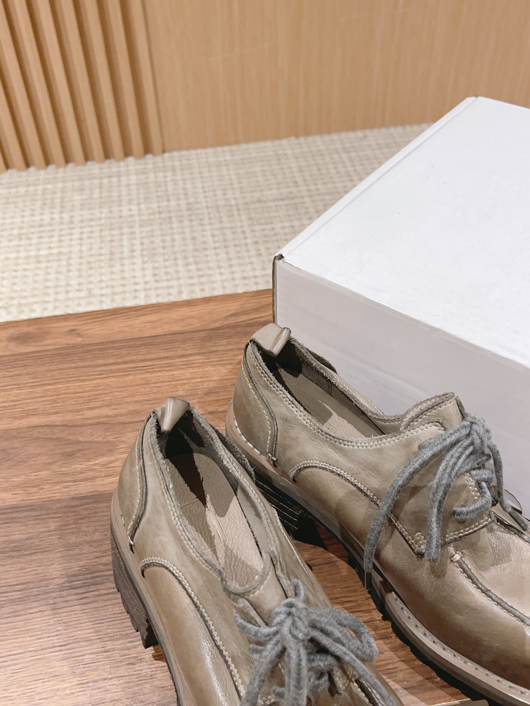 Handmade shoes emphasize a free-spirited nature, just like people. Each pair has its own character, unique features, no fixed template, and you won't find an identical pair! Irregularity is a hallmark of handmade shoes, embracing a retro, casual vibe with a natural, aged look. The shoe's color and creasing resemble marks from long-term wear, becoming more natural and developing more character over time. Each pair is unique~