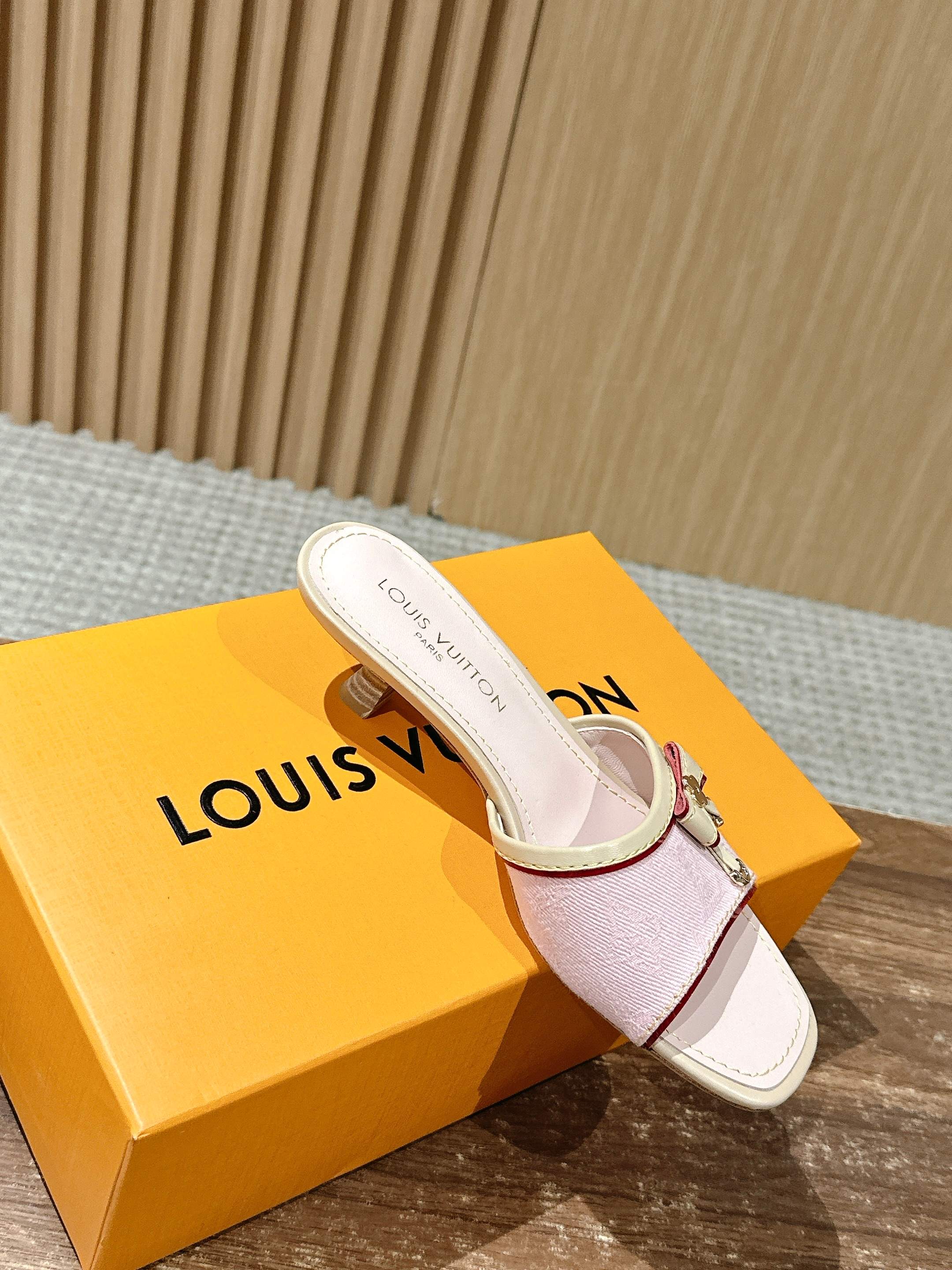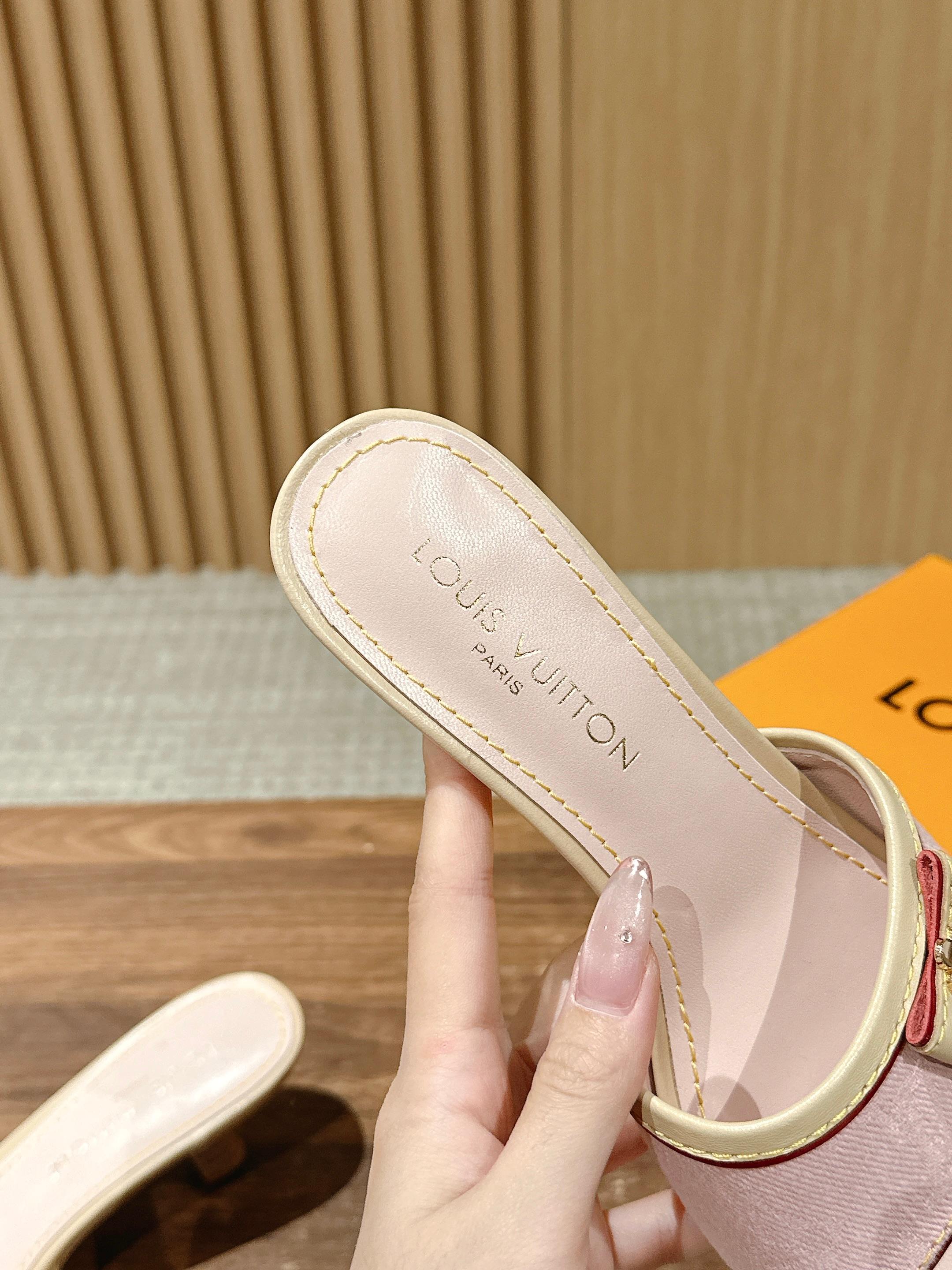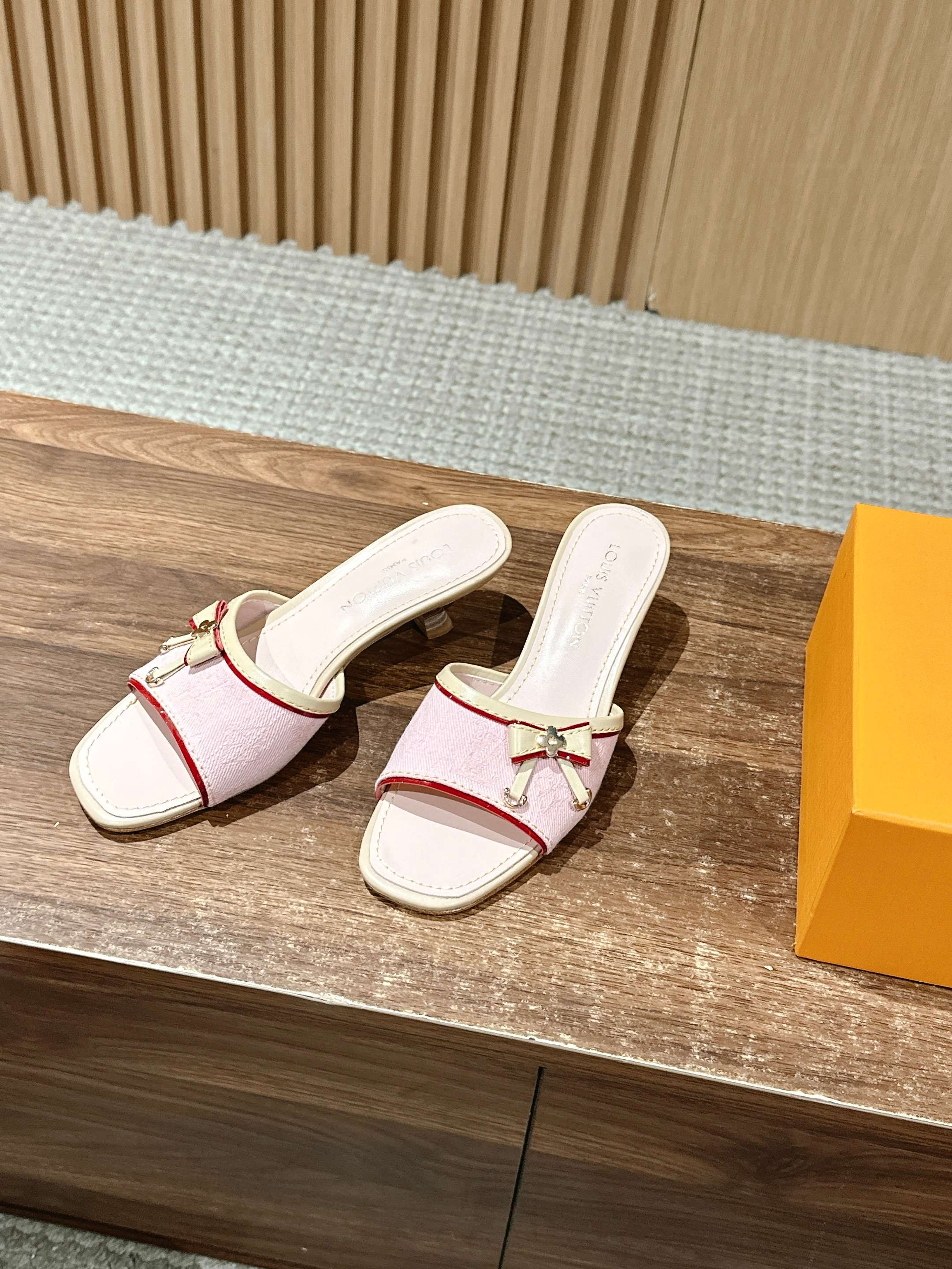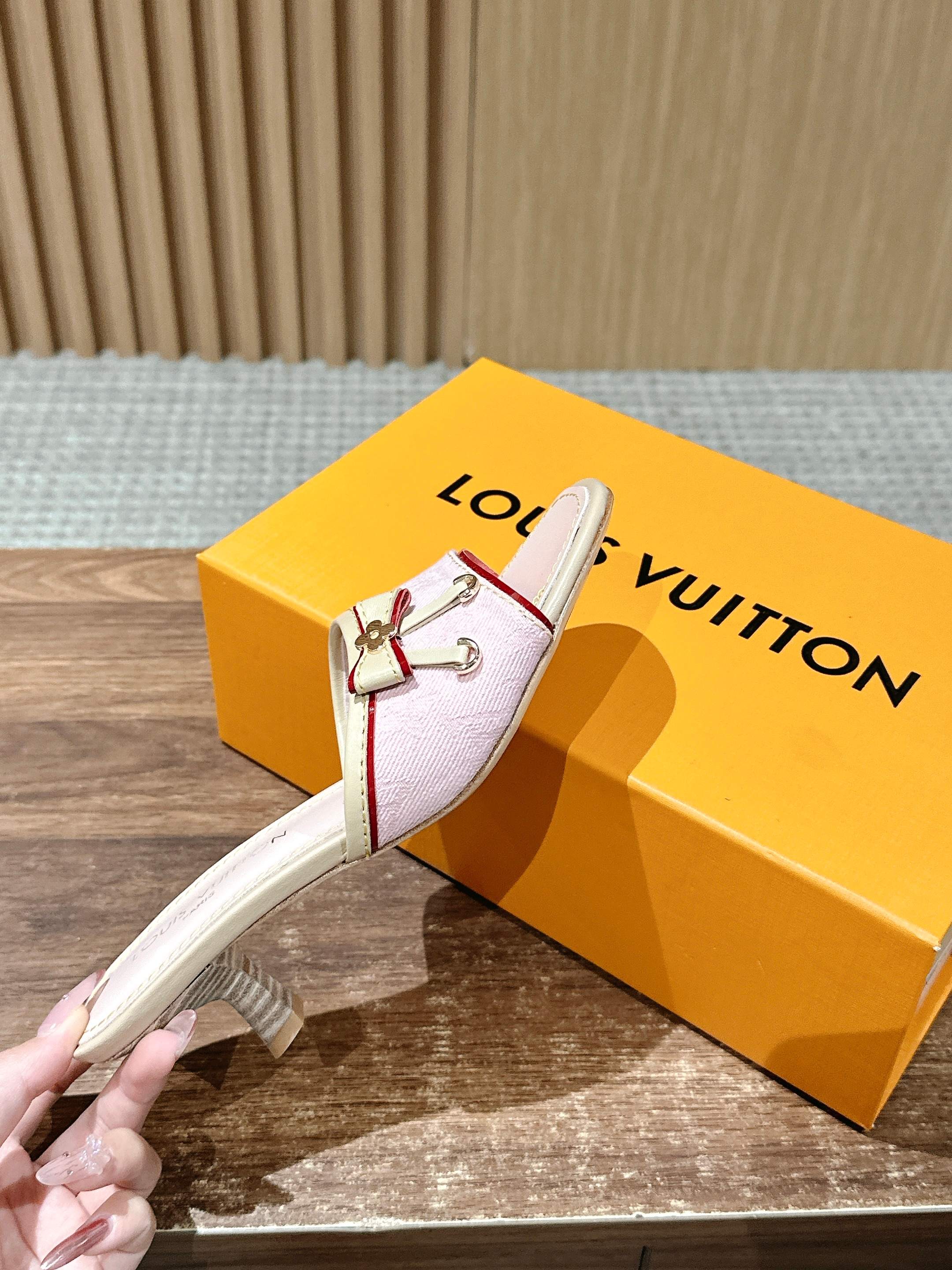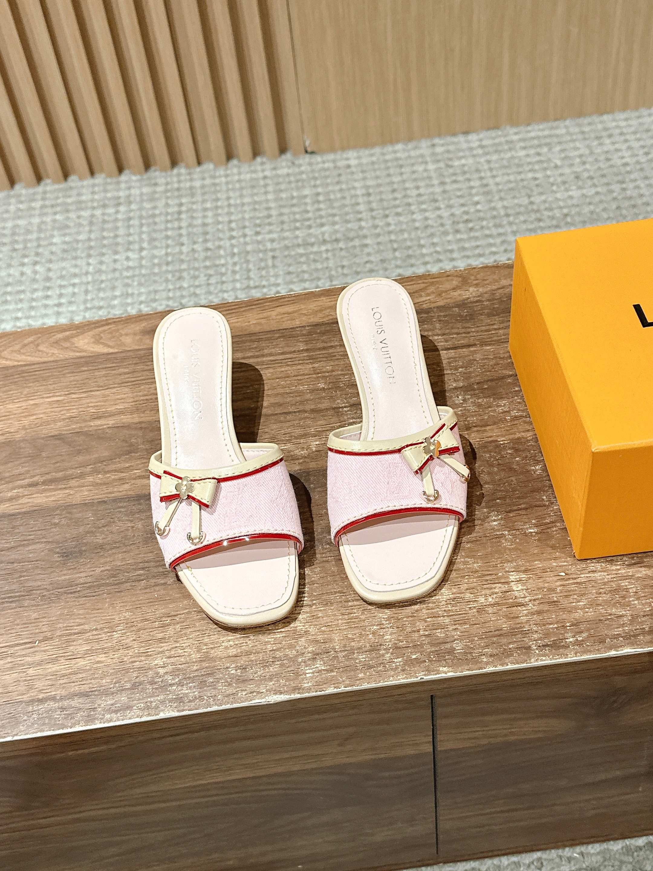 [Top Version] Louis Vuitton Revival 2025/SS New Denim Series Small Butterfly Kitten Heel Slippers Printed Slippers Lambskin Lining Genuine Leather Sole