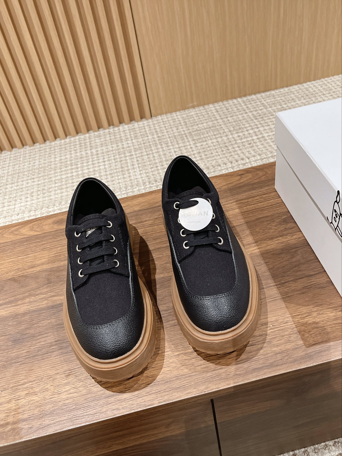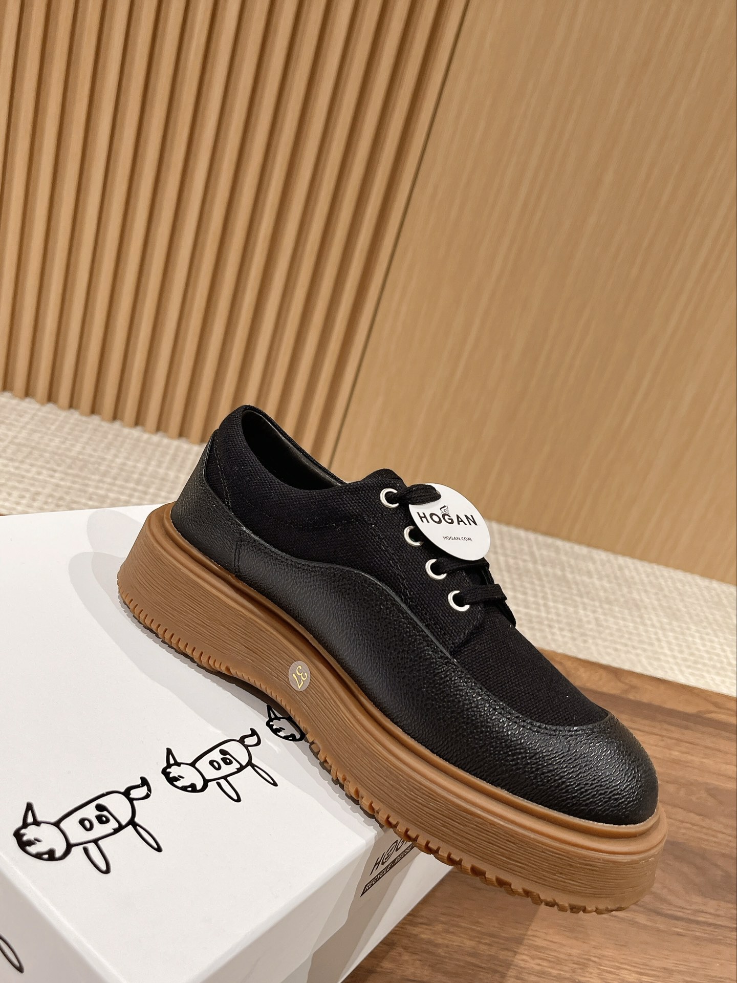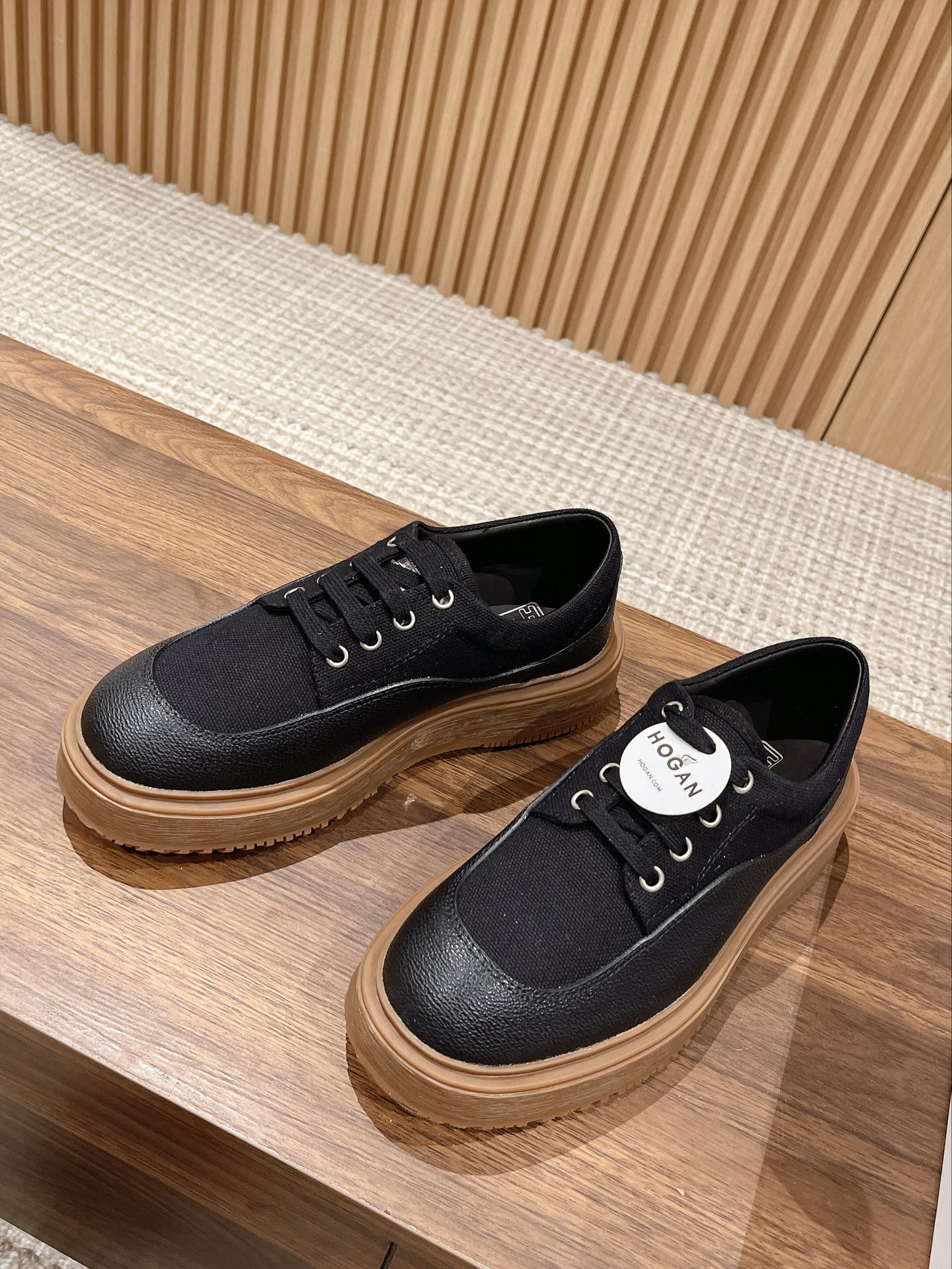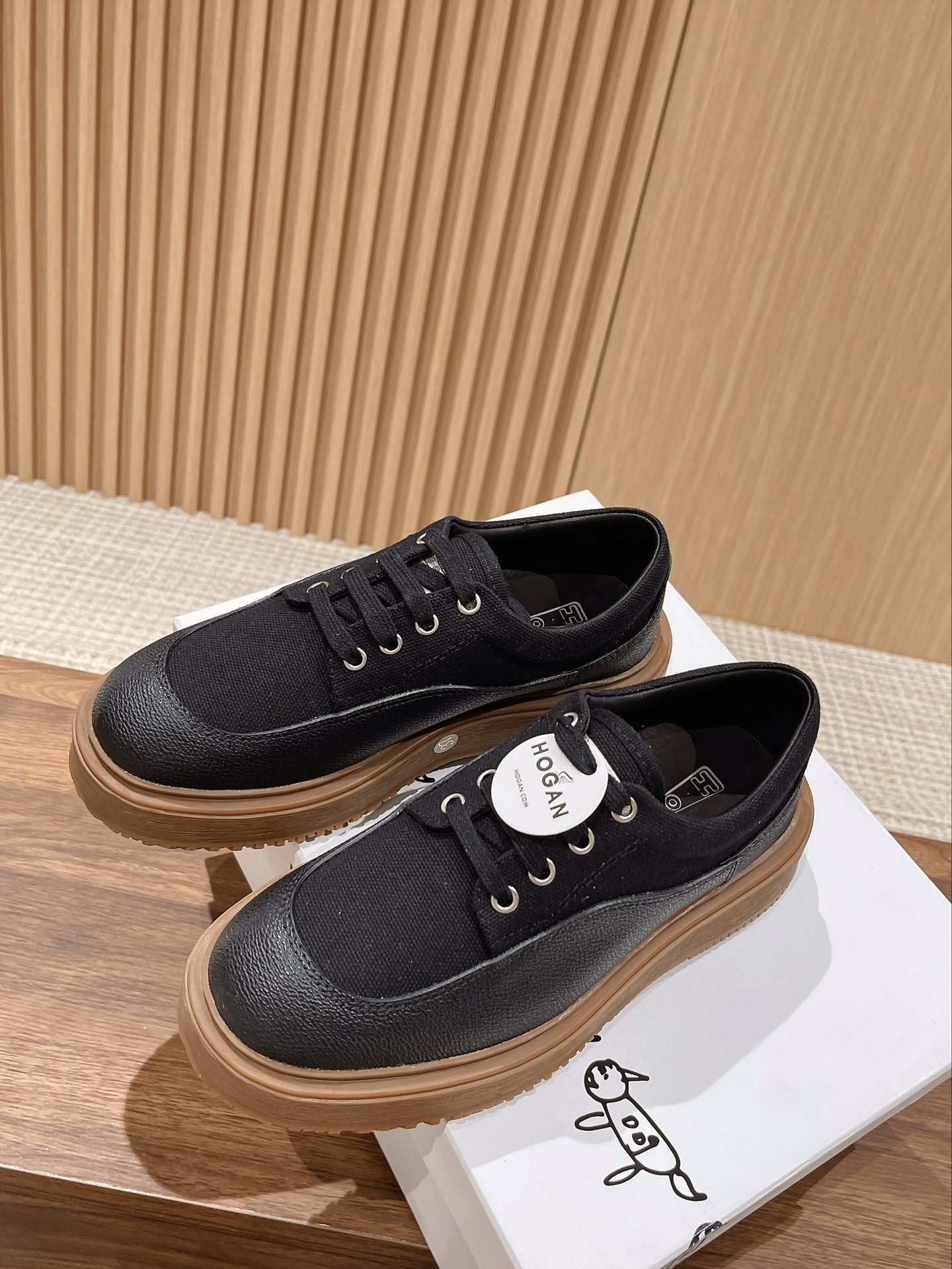 [Top Version] HOGAN Latest Untraditional All-Season Couples Casual Sneakers Original high-end customization, the overall shoe shape has elegant and dynamic lines, integrating different functional parts of the upper into one, making it the unique symbol of this shoe... ✅Material: Cowhide spliced with canvas ✅Lining: High-density space cotton spliced with sheepskin ✅Insole: Original injection molded ✅Outsole: Original molded rubber outsole ✅Packaging: Original full set of packaging ✅Sizes: Women 35-40 Men 39-44