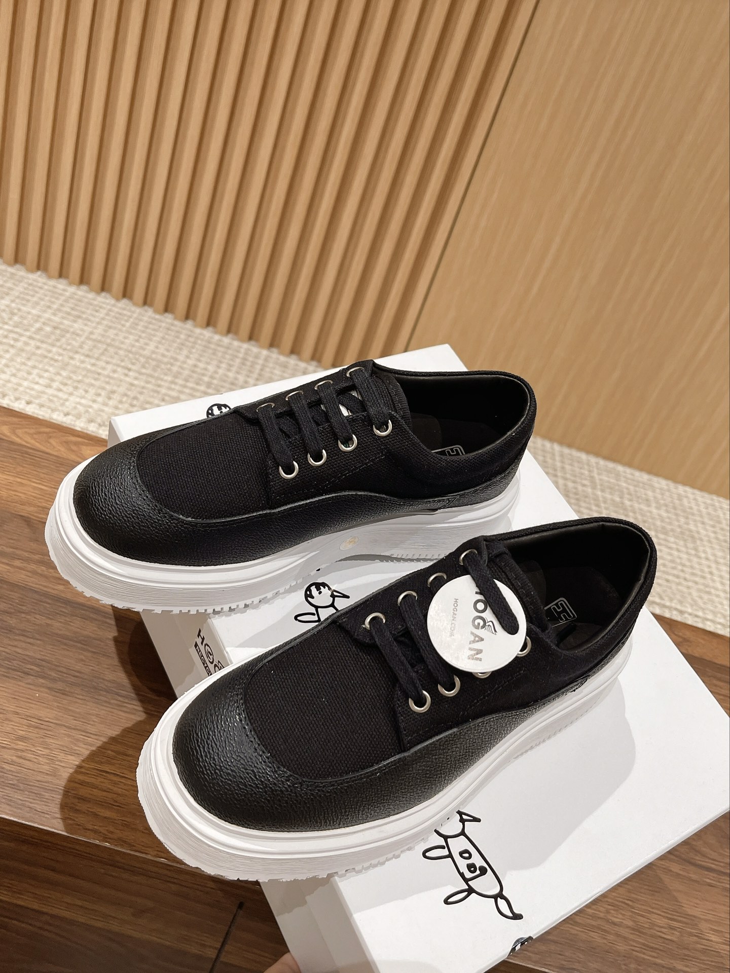 [Top Version] HOGAN Latest Untraditional All-Season Couple Casual Sneakers Original High-End Customization. The overall shoe shape features elegant and dynamic lines, integrating different functional parts of the upper into one, making it the unique signature of this shoe... ✅ Material: Cowhide spliced with canvas ✅ Lining: High-density space cotton spliced with sheepskin ✅ Insole: Original injection-molded ✅ Outsole: Original molded rubber outsole ✅ Packaging: Original full set packaging ✅ Sizes: Women 35-40 Men 39-44