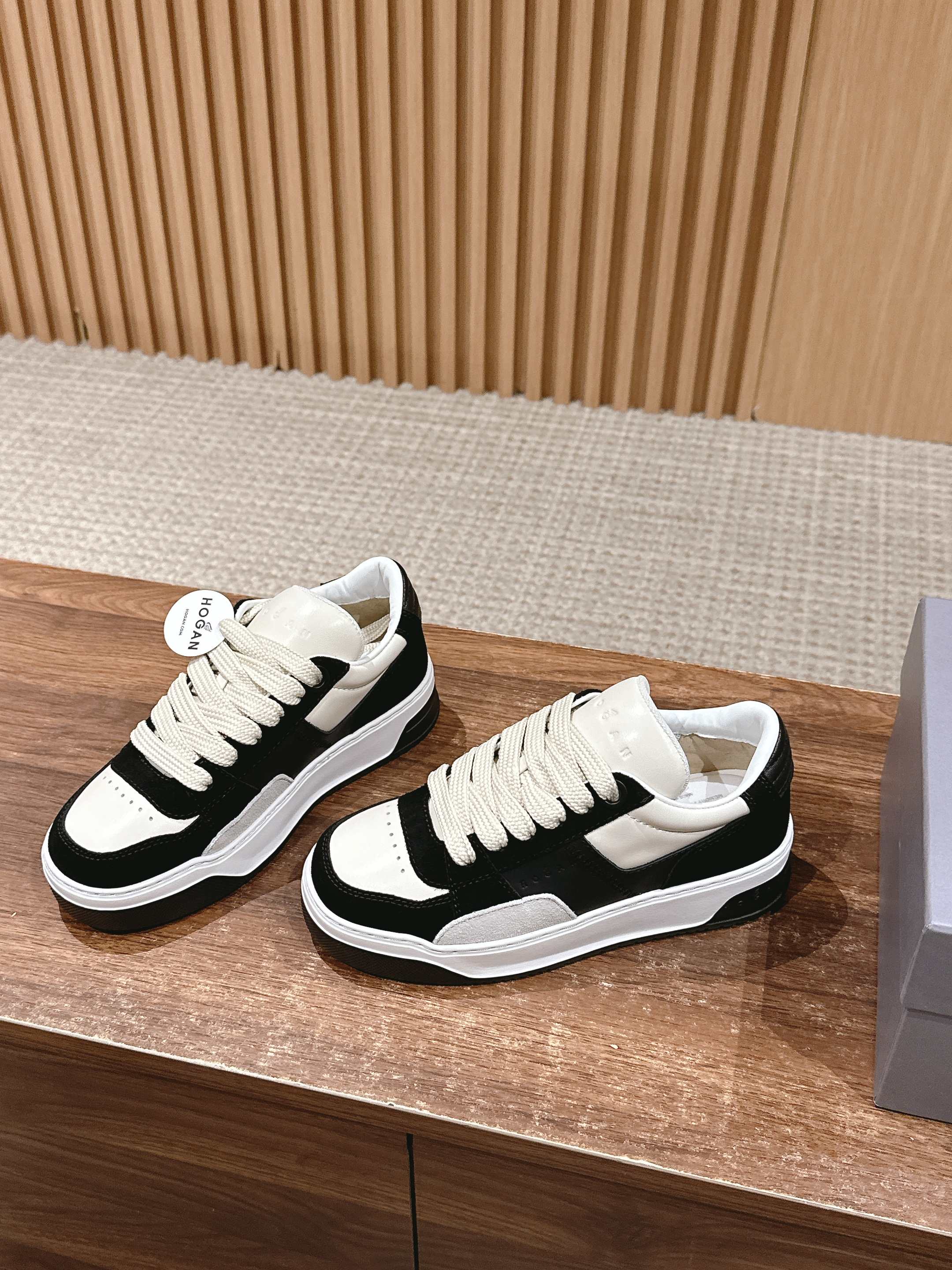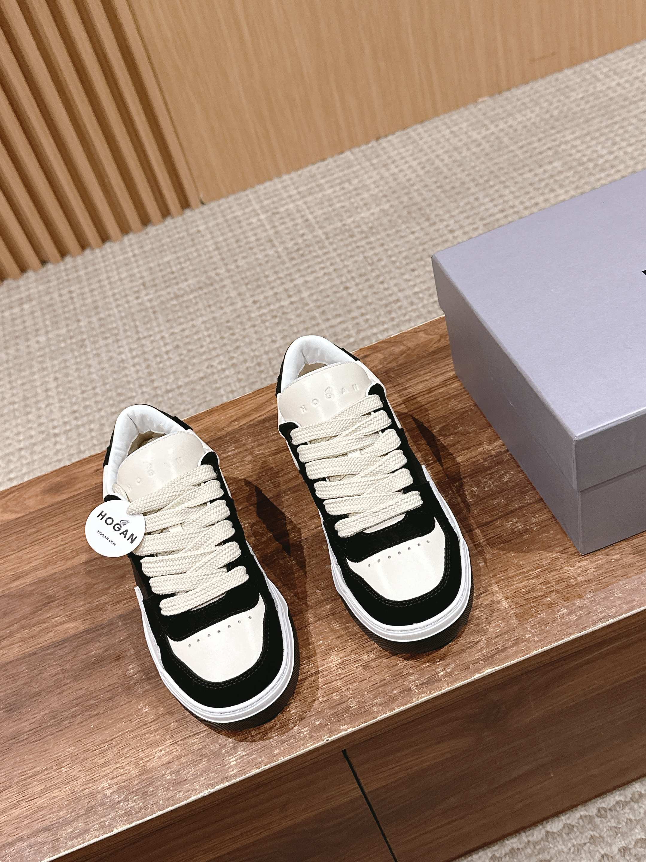 [Top Version] Hogan Chamallow #Series Hogan Couple's Style Chunky Platform Sports Casual Shoes blend street style and Hogan's fashion concept. The shoe design is uniquely stylish, incorporating skateboarding elements, with padded design for softness and comfort. Napa leather combined with smooth leather upper, lightweight outsole with non-slip traces of different textures, heel adorned with a three-dimensional Hogan logo, memory foam insole for cushioning and comfort, gently wrapping the feet. Top-grain leather, breathable mesh lining. Size: 35-45 (Size 45 is custom-made and non-returnable)