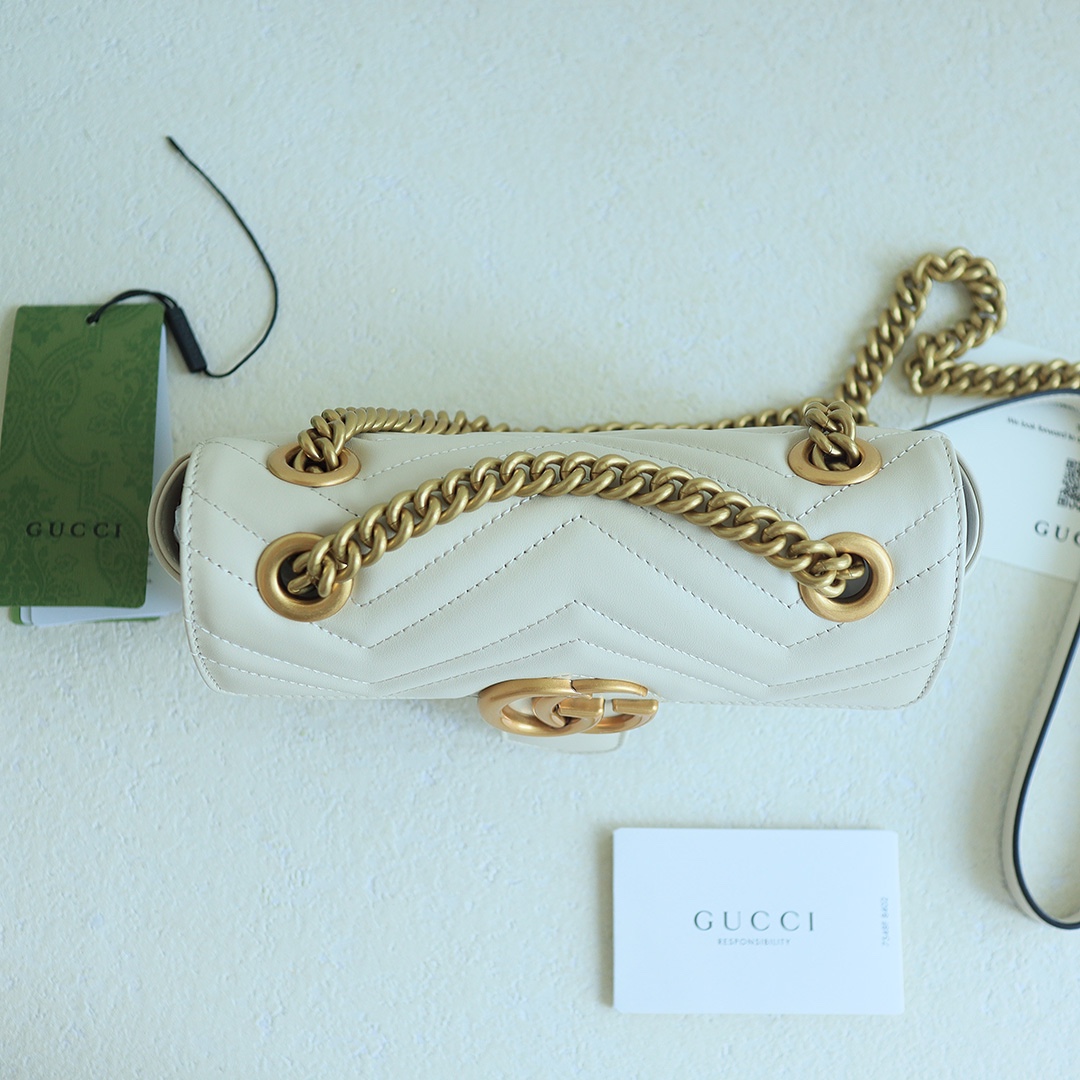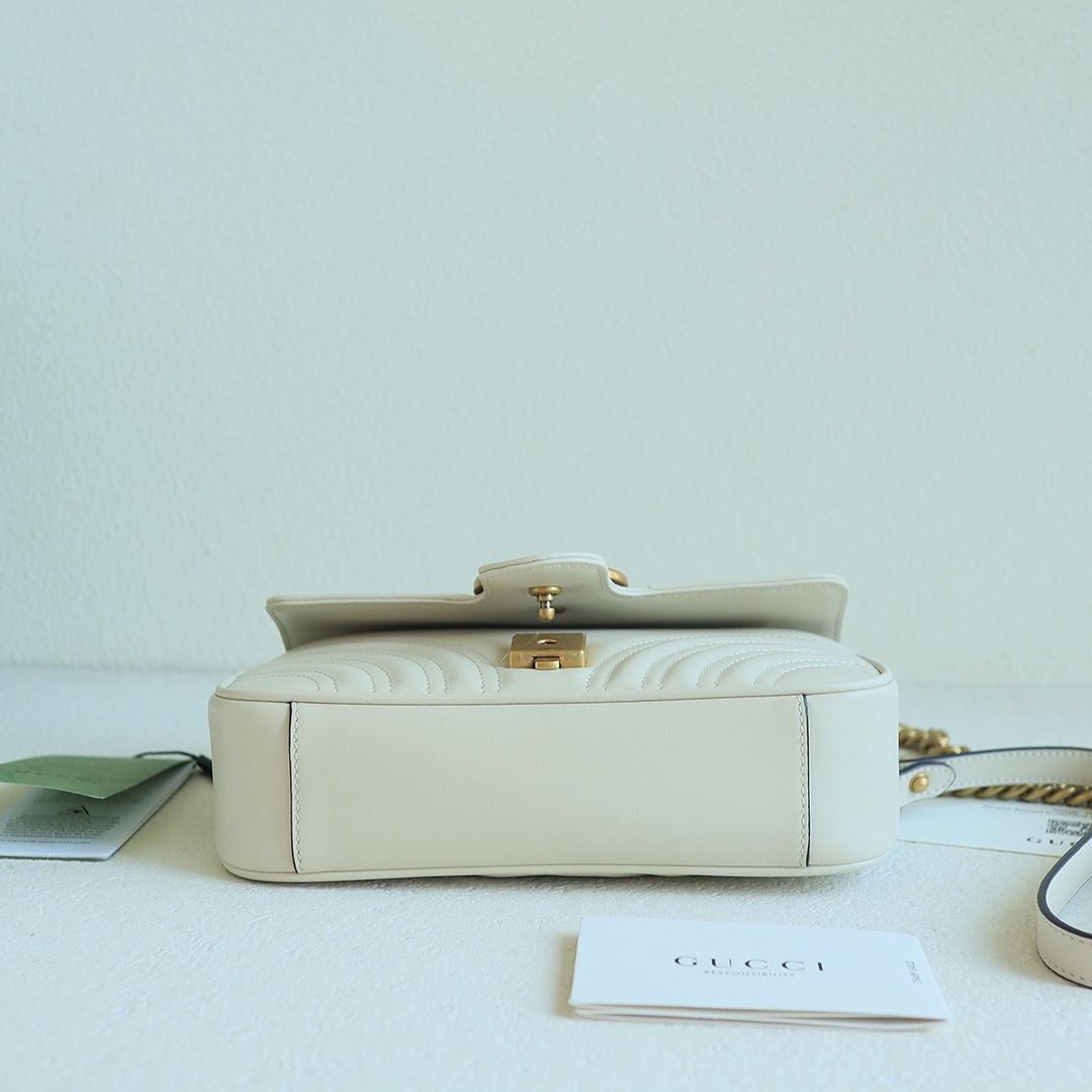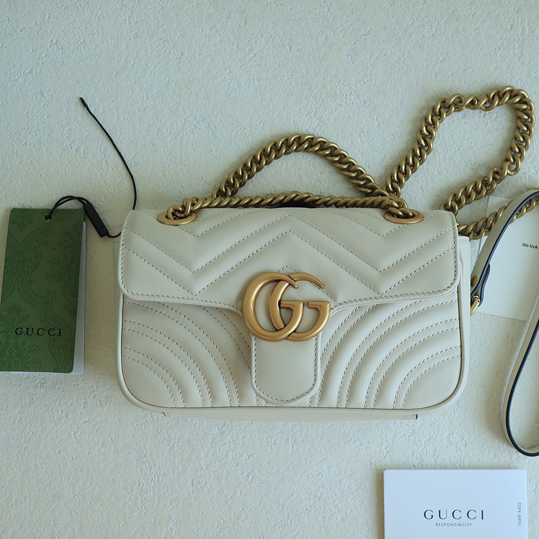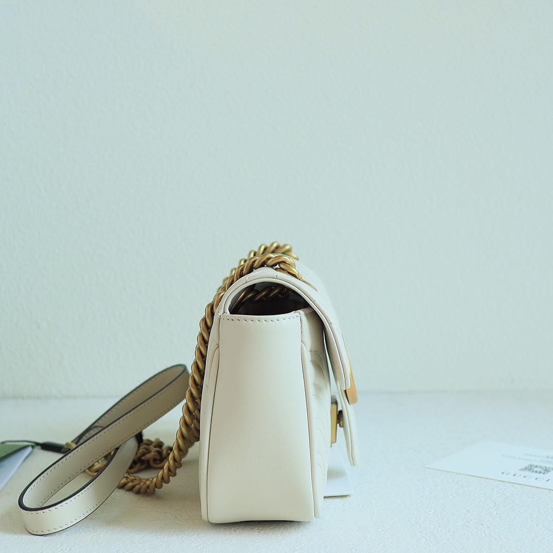 GG Marmont Wave Pattern Chain Bag, made from imported calfskin with an extremely soft feel, and high-end custom red bronze hardware. It has a sense of quality and weight. Dimensions: 22x13x6cm