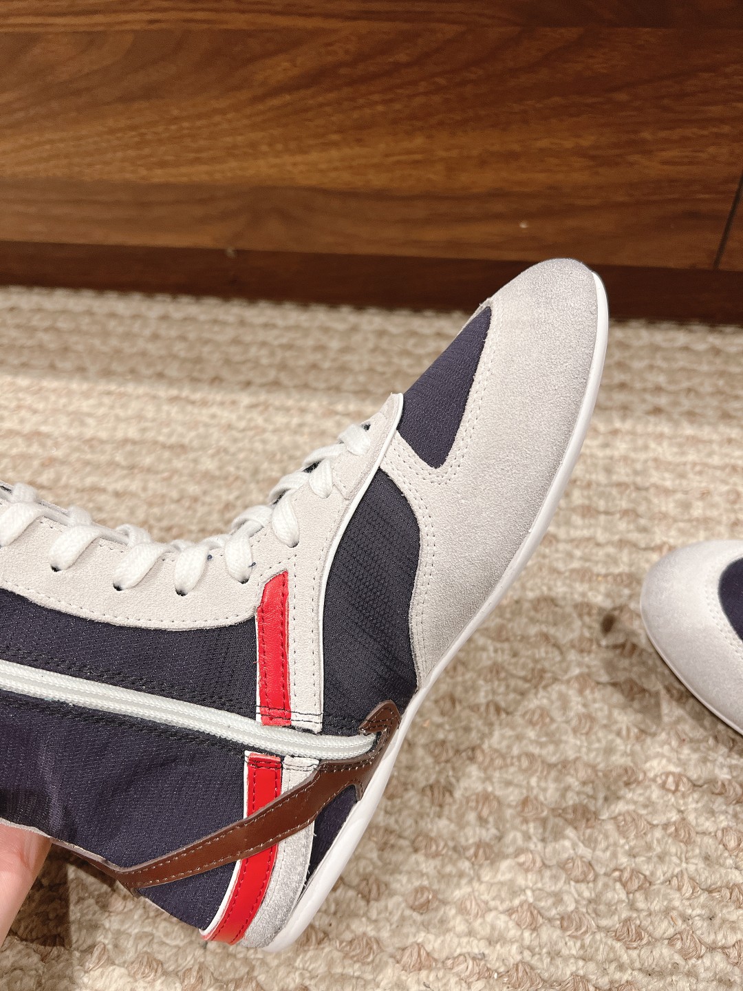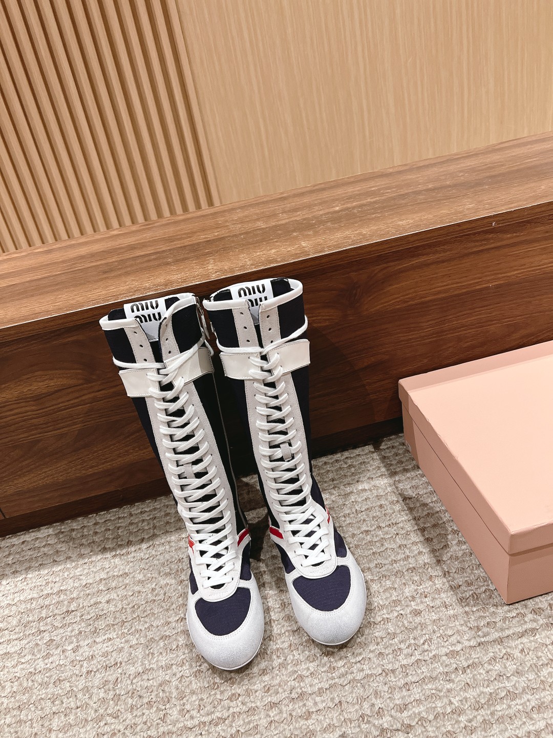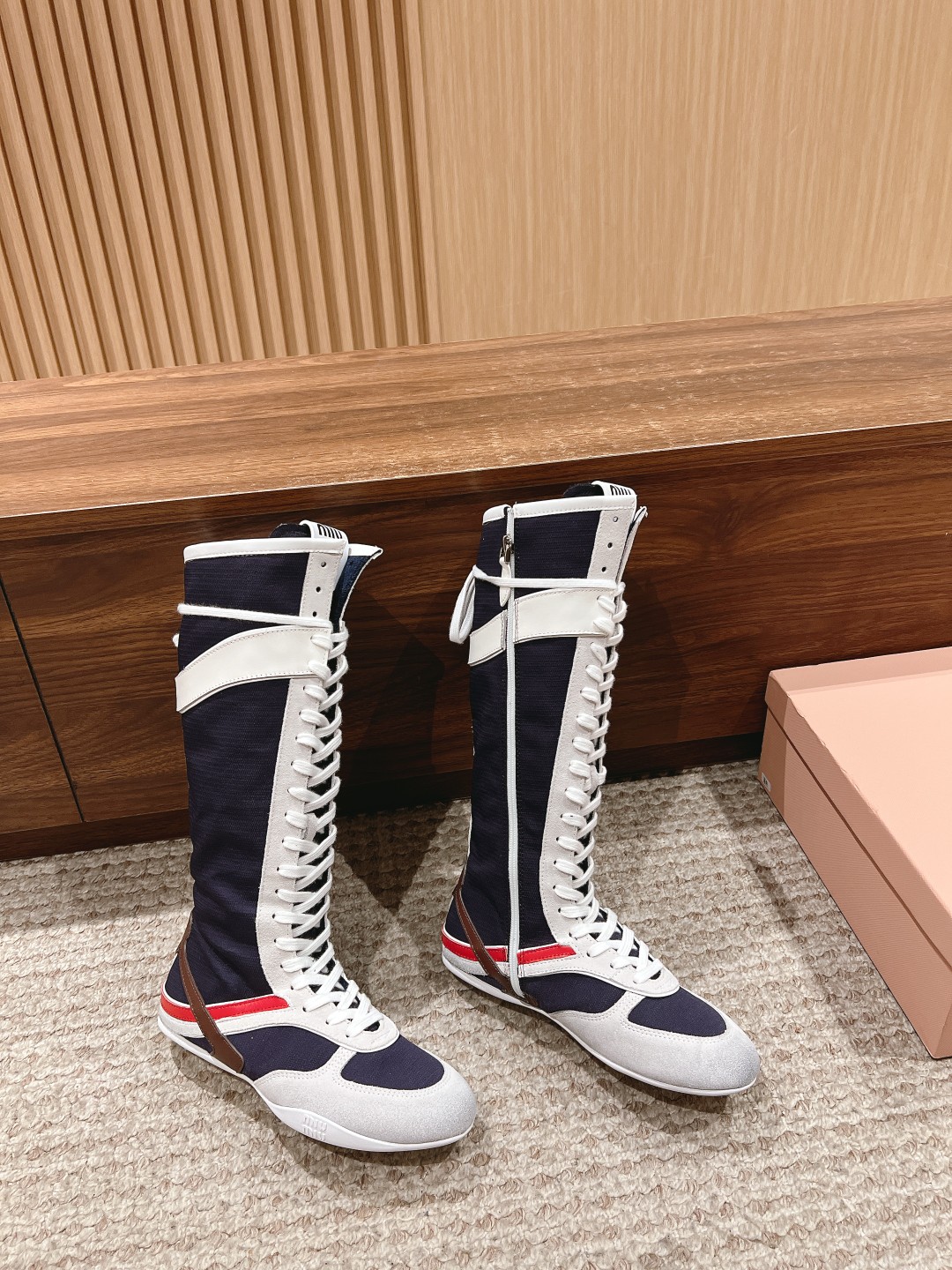 Home • Shoe • Miu Miu 2025 spring-summer high-top sneakers. Simplified lines, lightweight sole, bold colors. Made from imported suede. Sizes 35-41. Comfortable and fashionable.
