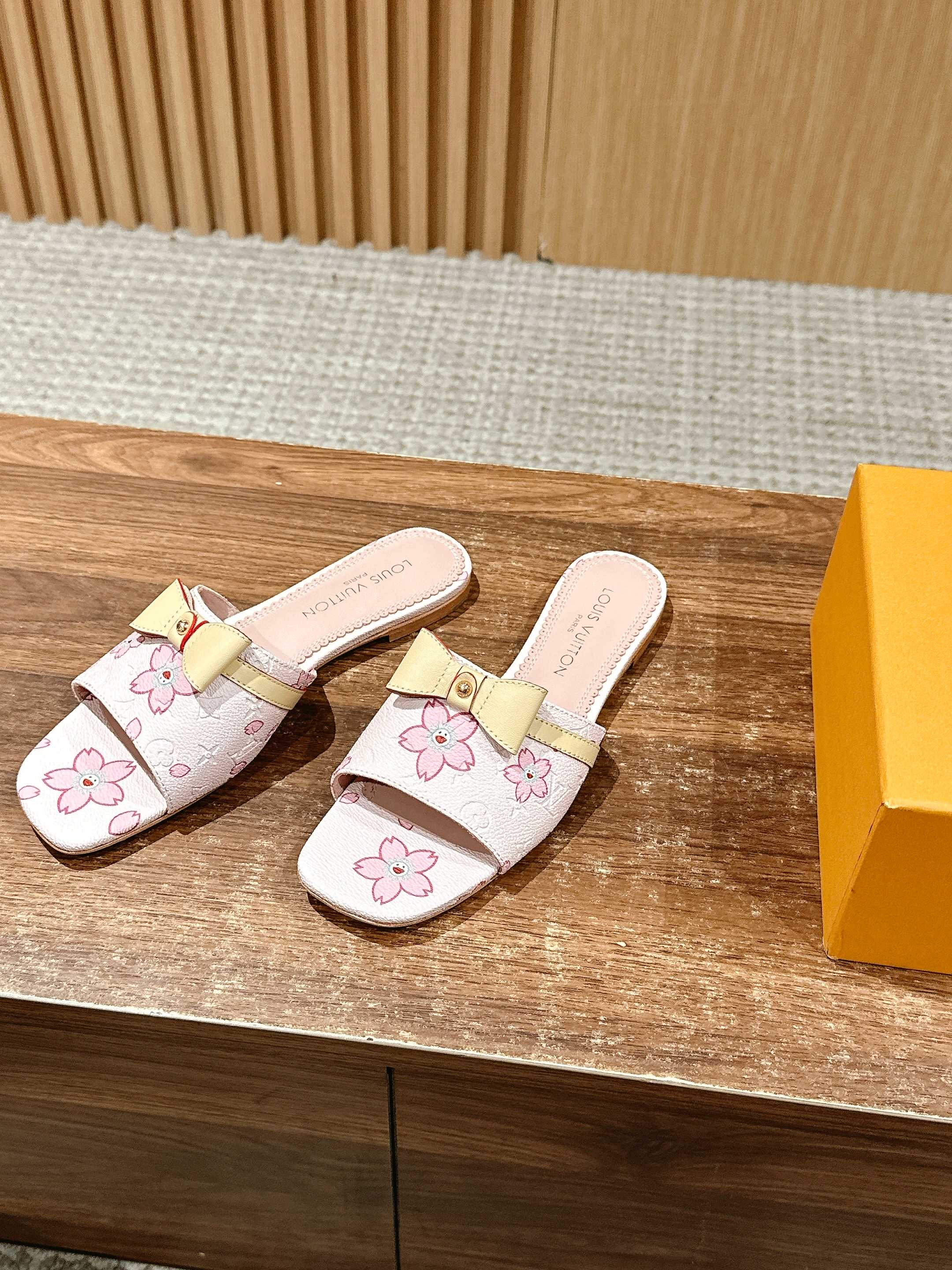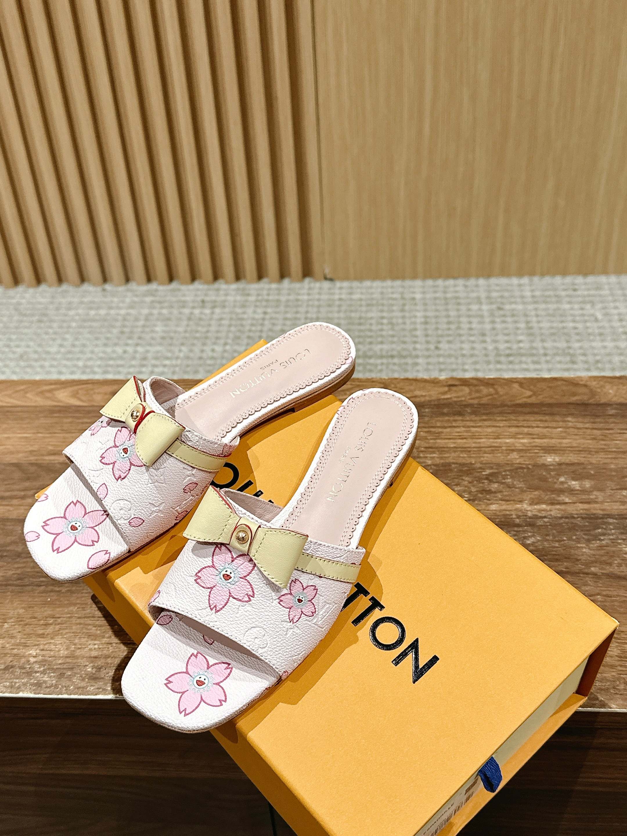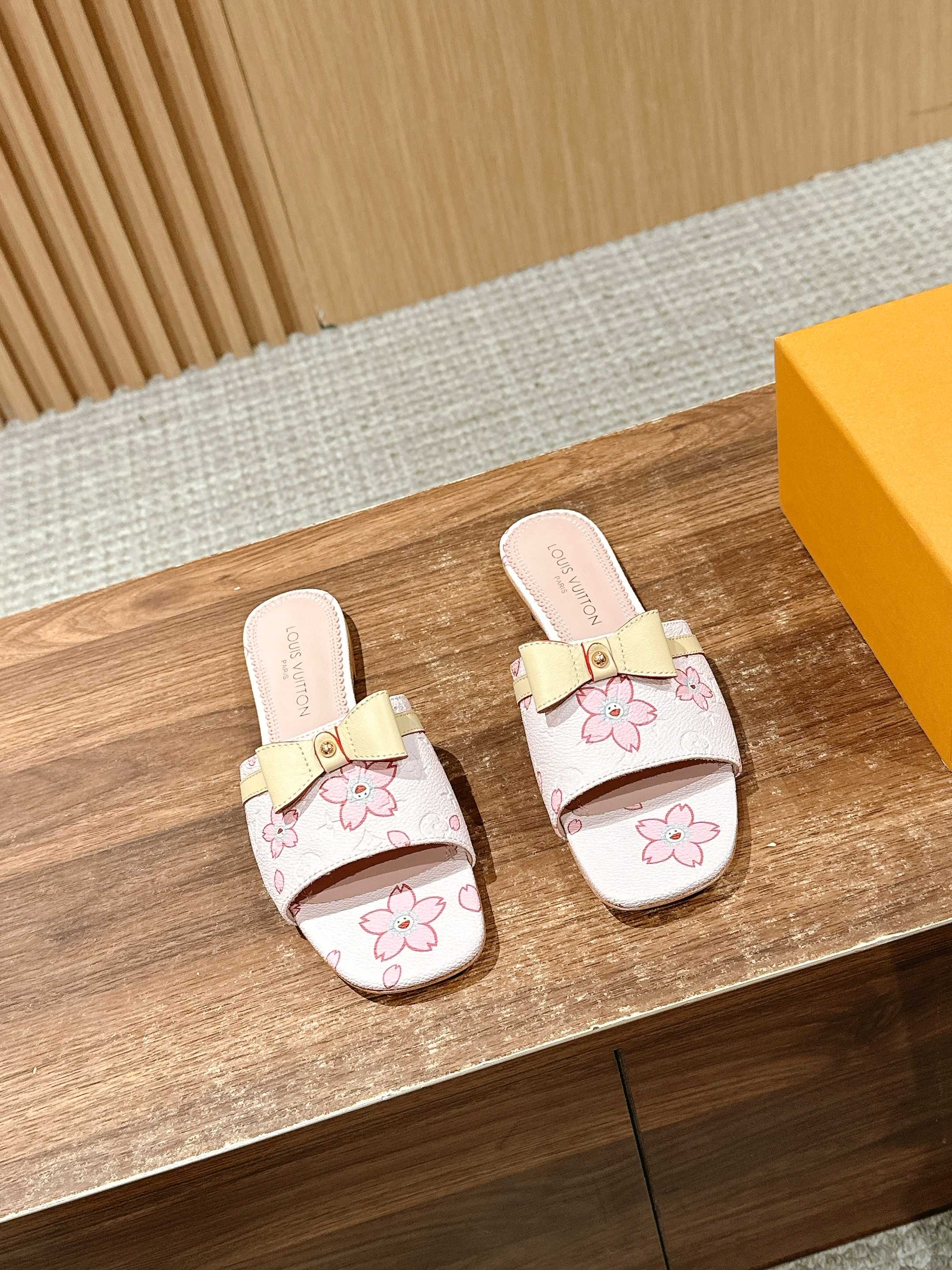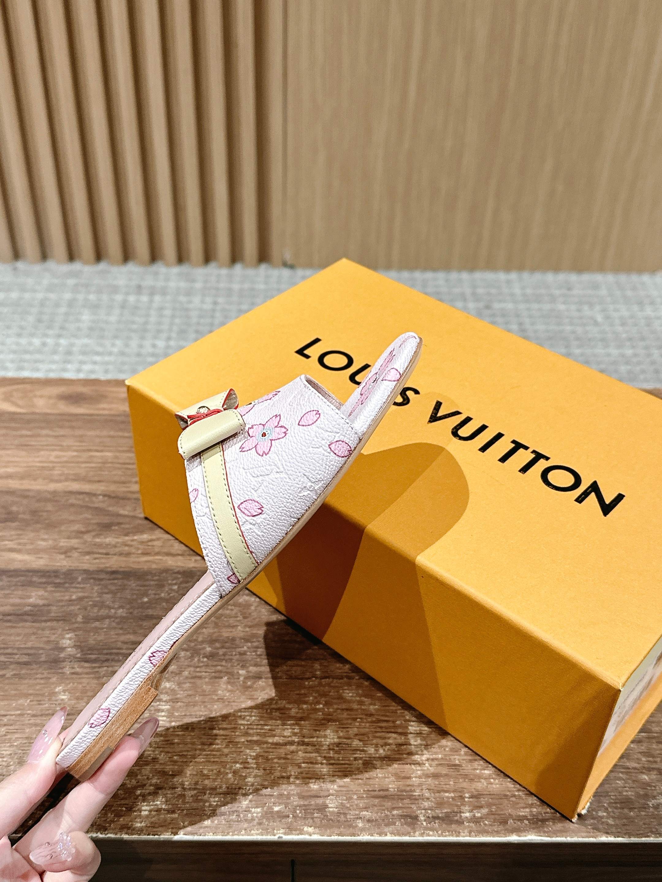 [Top Version] Louis Vuitton Revival 2025/SS New Denim Cowboy Series Small Butterfly Flip-Flops Printed Slippers Lambskin Lining Genuine Leather Sole