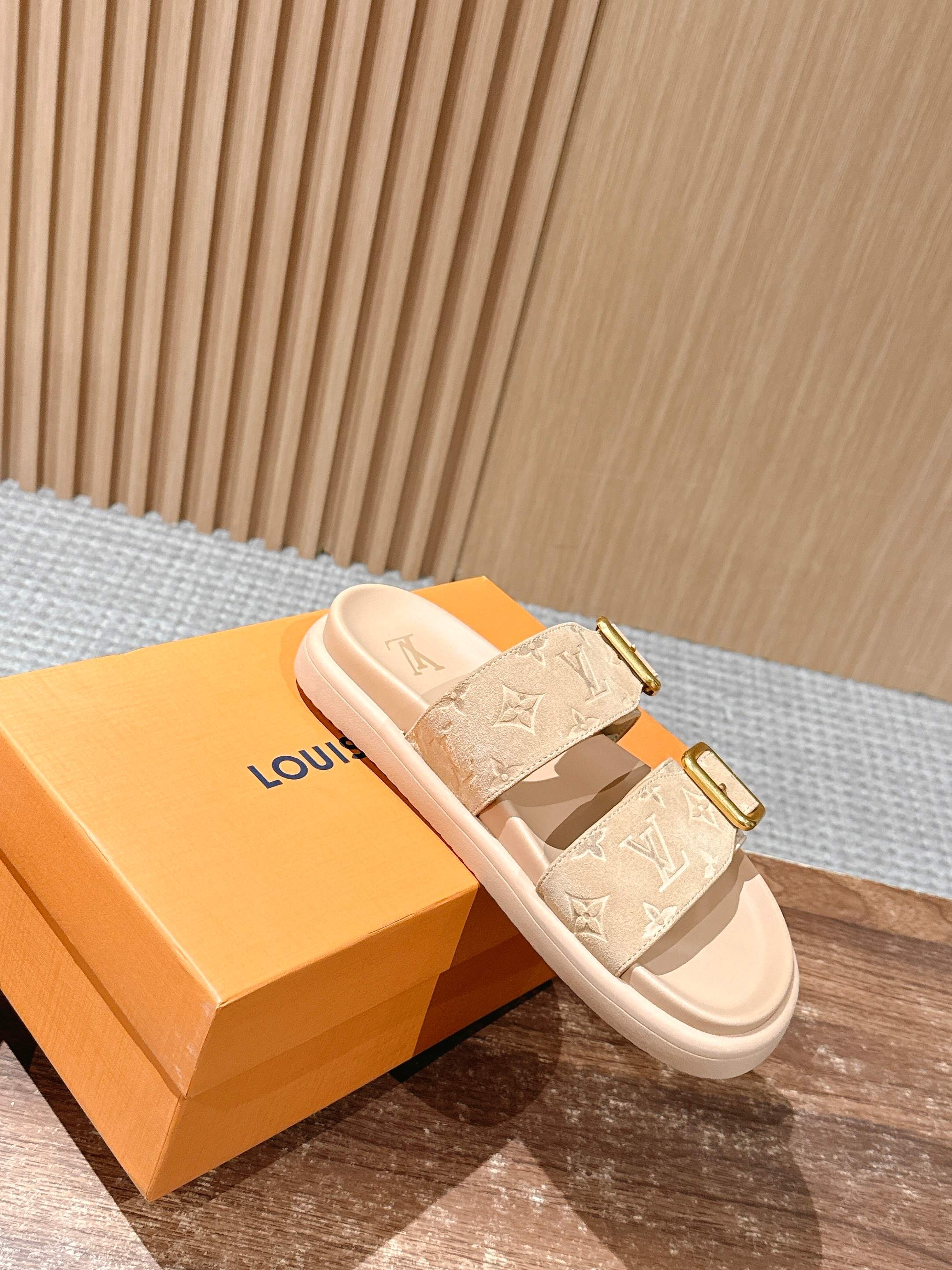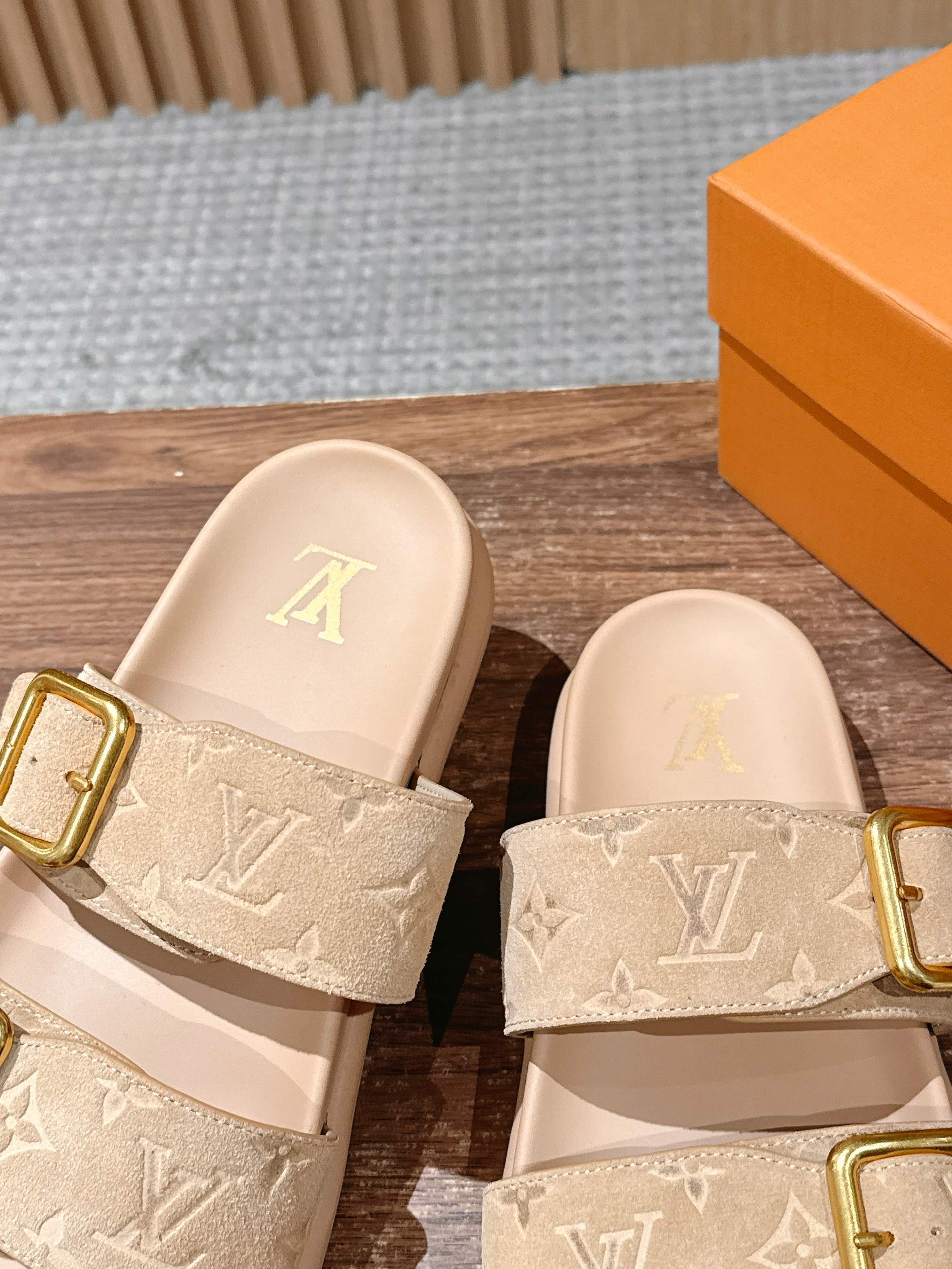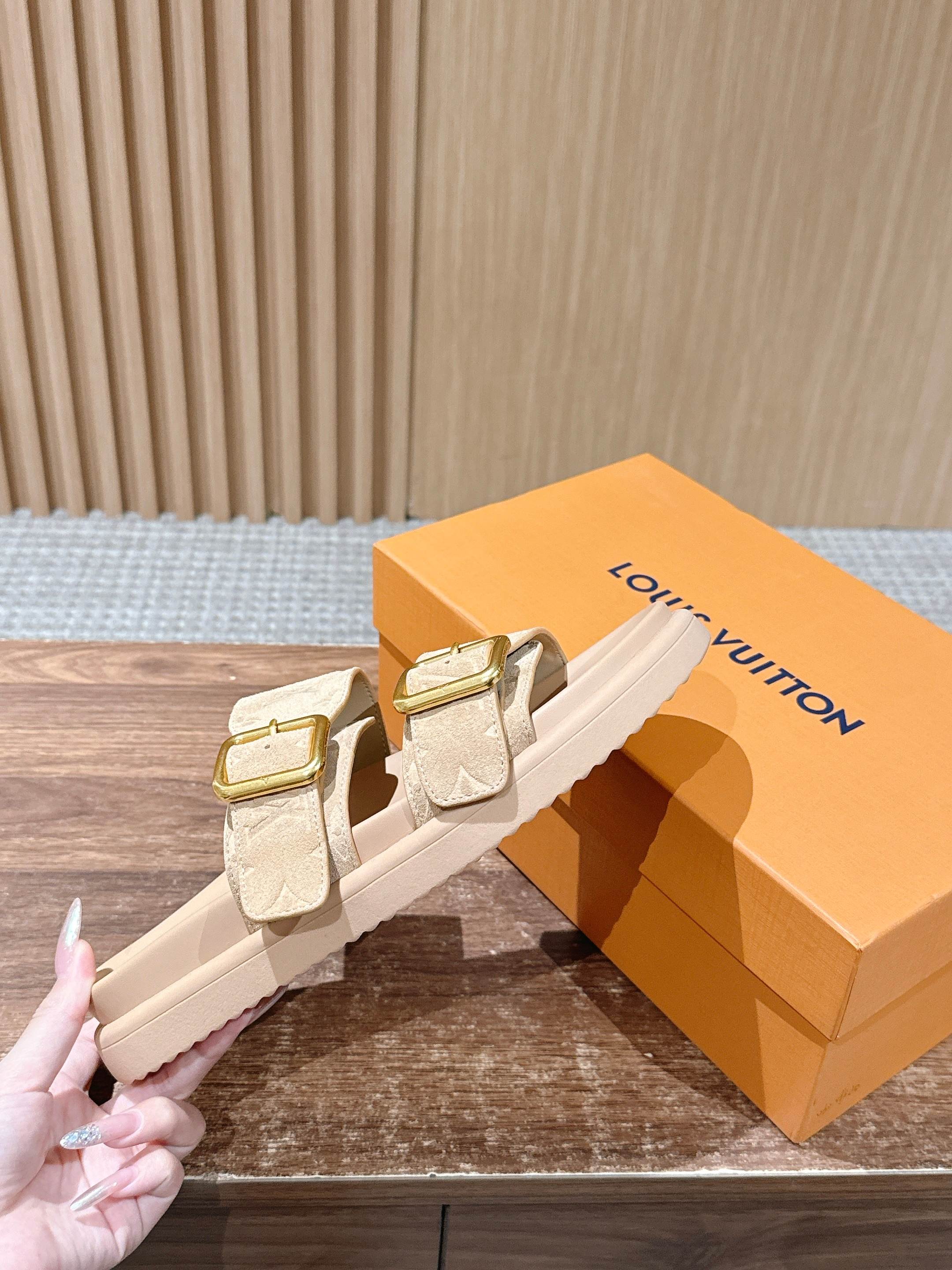 [Top Version] Louis Vuitton# New Men's Sandals from LV, Exudes a Premium Feel! A style heavily featured by bloggers both domestically and internationally, retro and fashionable. Looks amazing on feet! Suede/Calfskin Monogram material, lambskin lining.