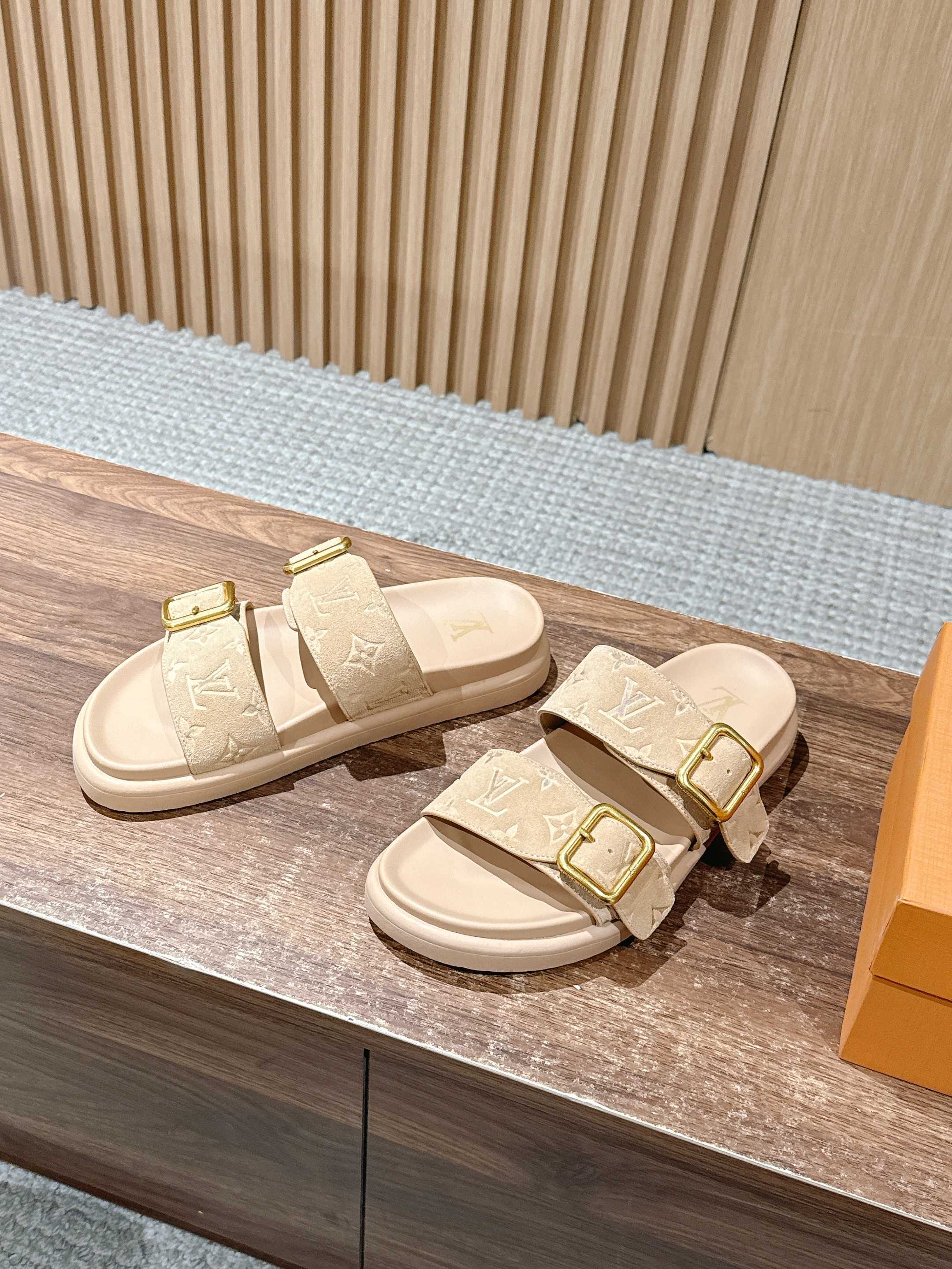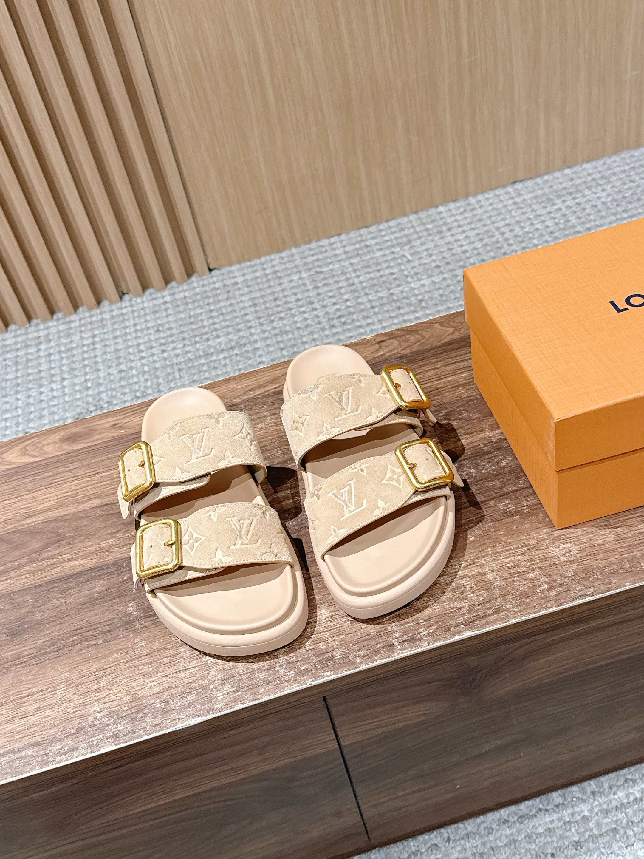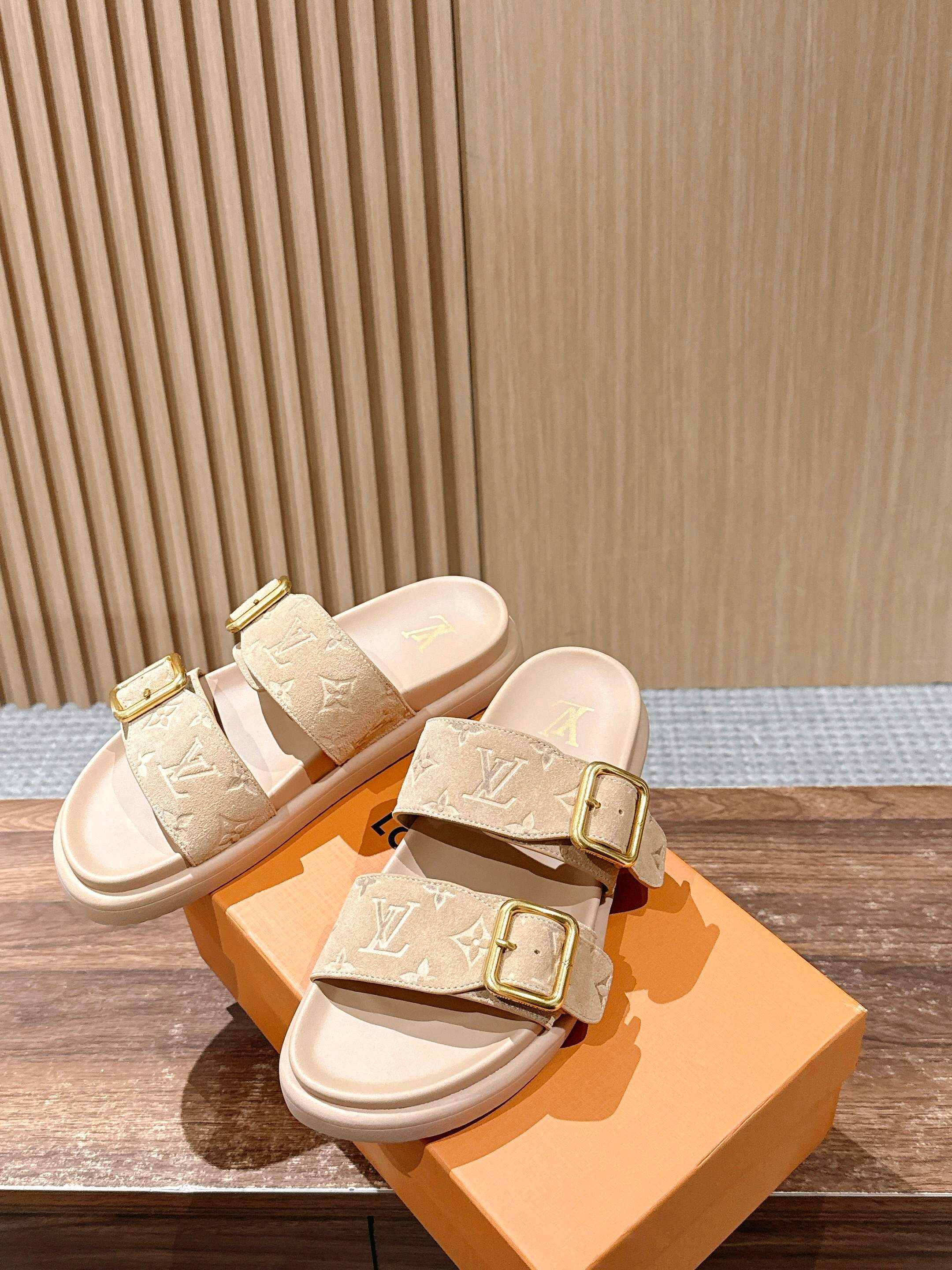 [Top Version] Louis Vuitton# New Men's Sandals from LV, Exudes a Premium Feel! A style heavily featured by bloggers both domestically and internationally, retro and fashionable. Looks amazing on feet! Suede/Calfskin Monogram material, lambskin lining.