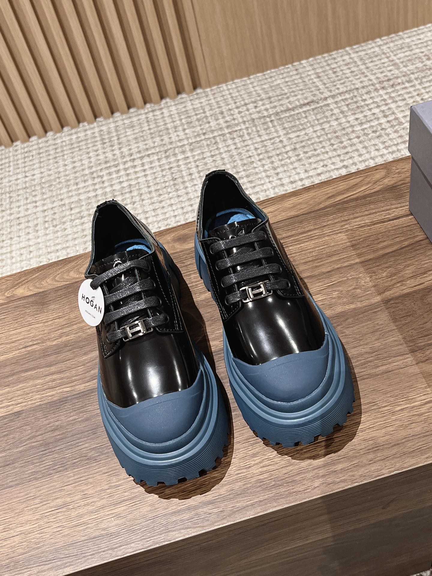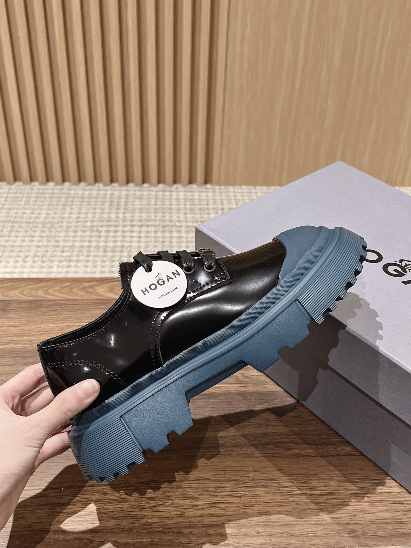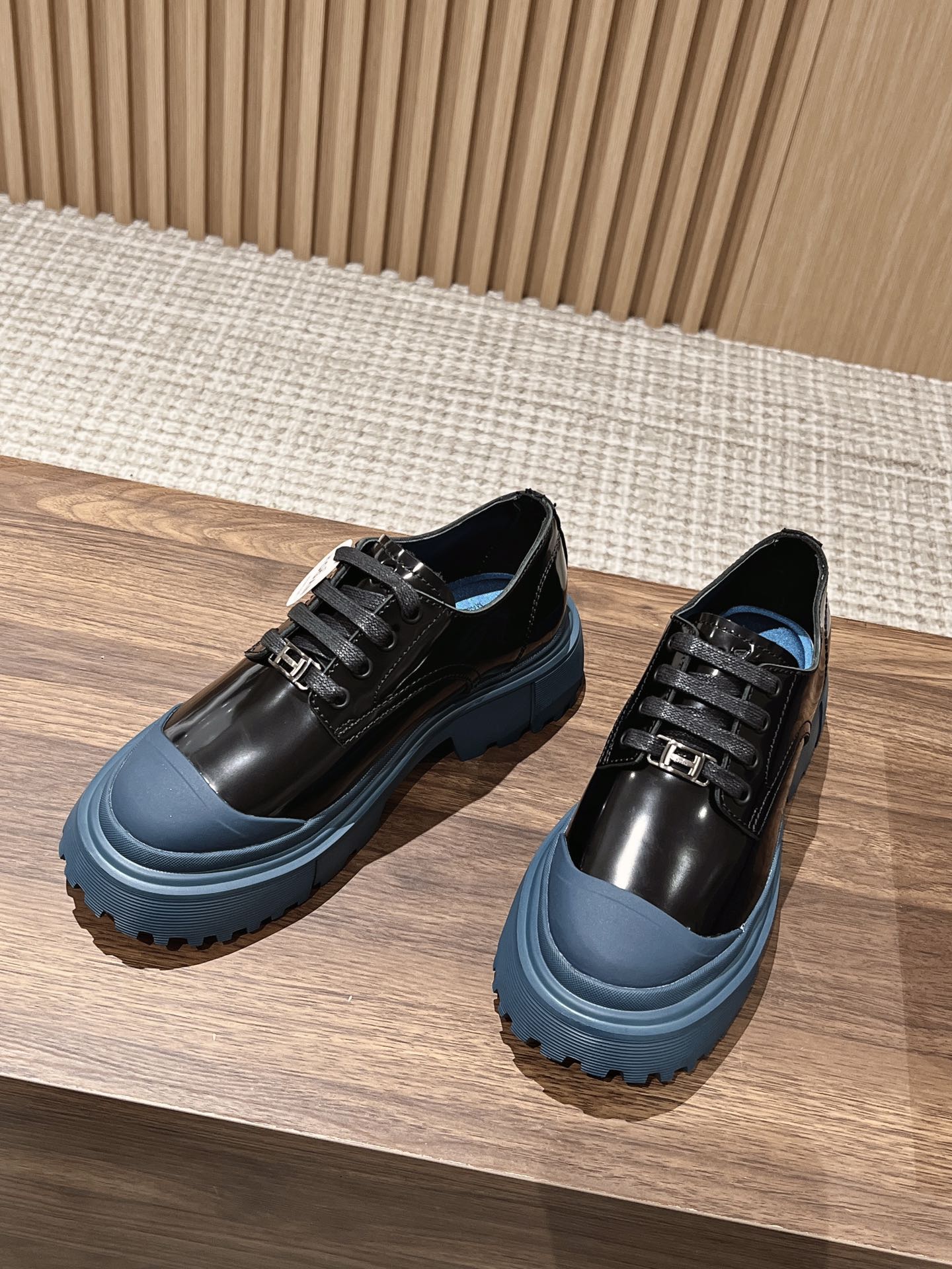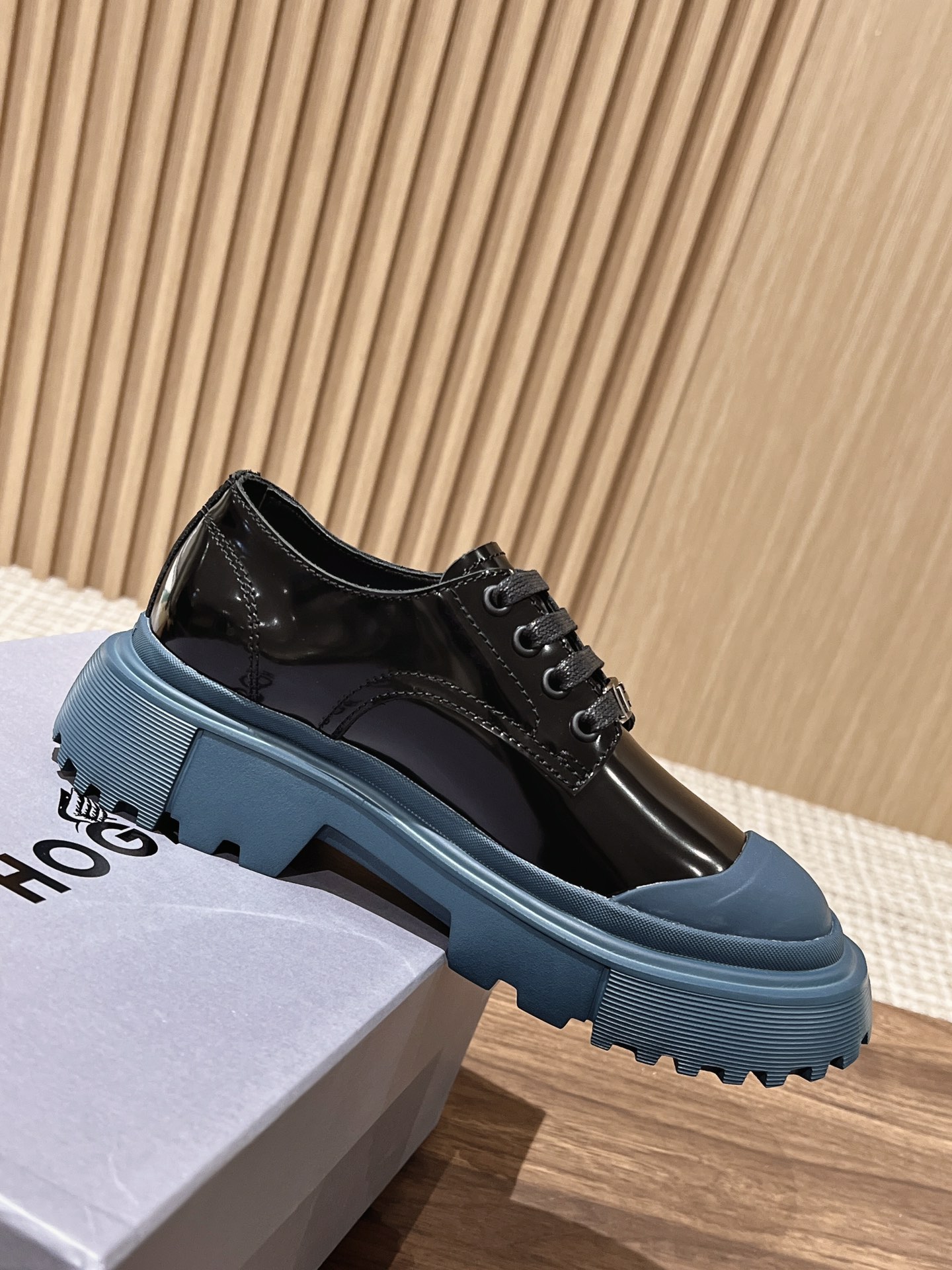 [Top Version] Hogan Hogan Fall/Winter 2022 New H619 Series Lace-up Loafers Platform. Originally purchased and developed for production. This women's winter loafers are made of patent leather, featuring a non-slip platform design incorporating military elements, with an H-shaped stripe on the sole for a rugged, personalized look. The sole contrasts with the elegant upper design. Adorned with exquisite horizontal stripe decorations and a warm, comfortable artificial fur lining. The memory foam insole gently wraps the feet, making it an excellent choice for creating a fashionable urban style. Comes with exquisite boutique packaging. Custom imported split pearl cowhide material. Imported soft lambskin lining. Original mold super-light rubber foam sole. 5CM platform. Size: Women's 35-40