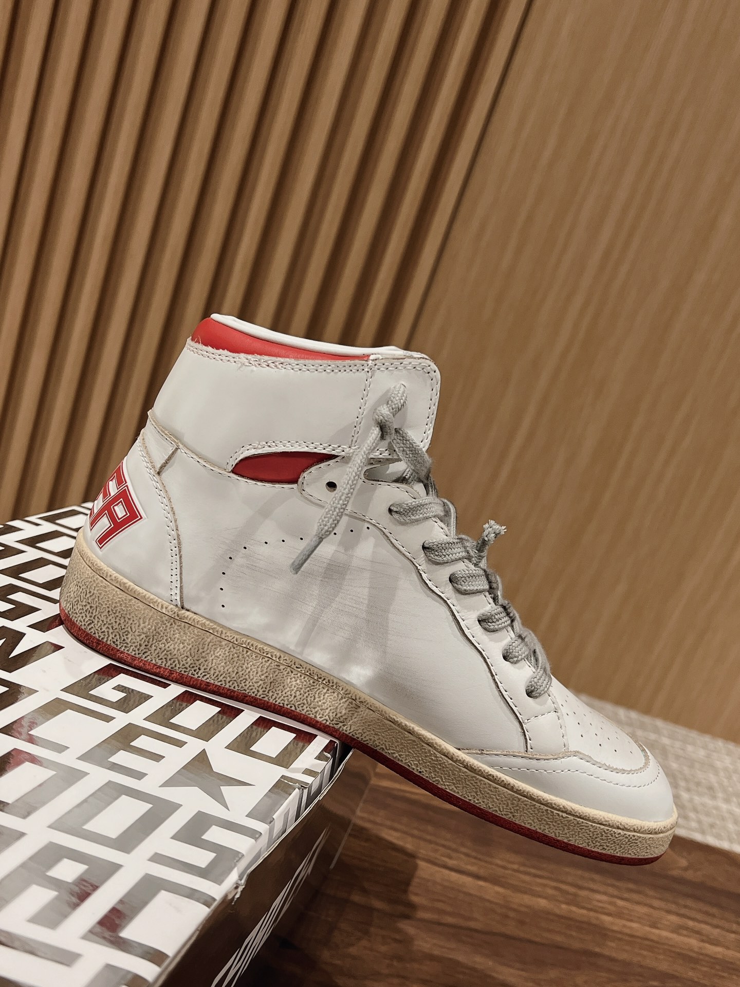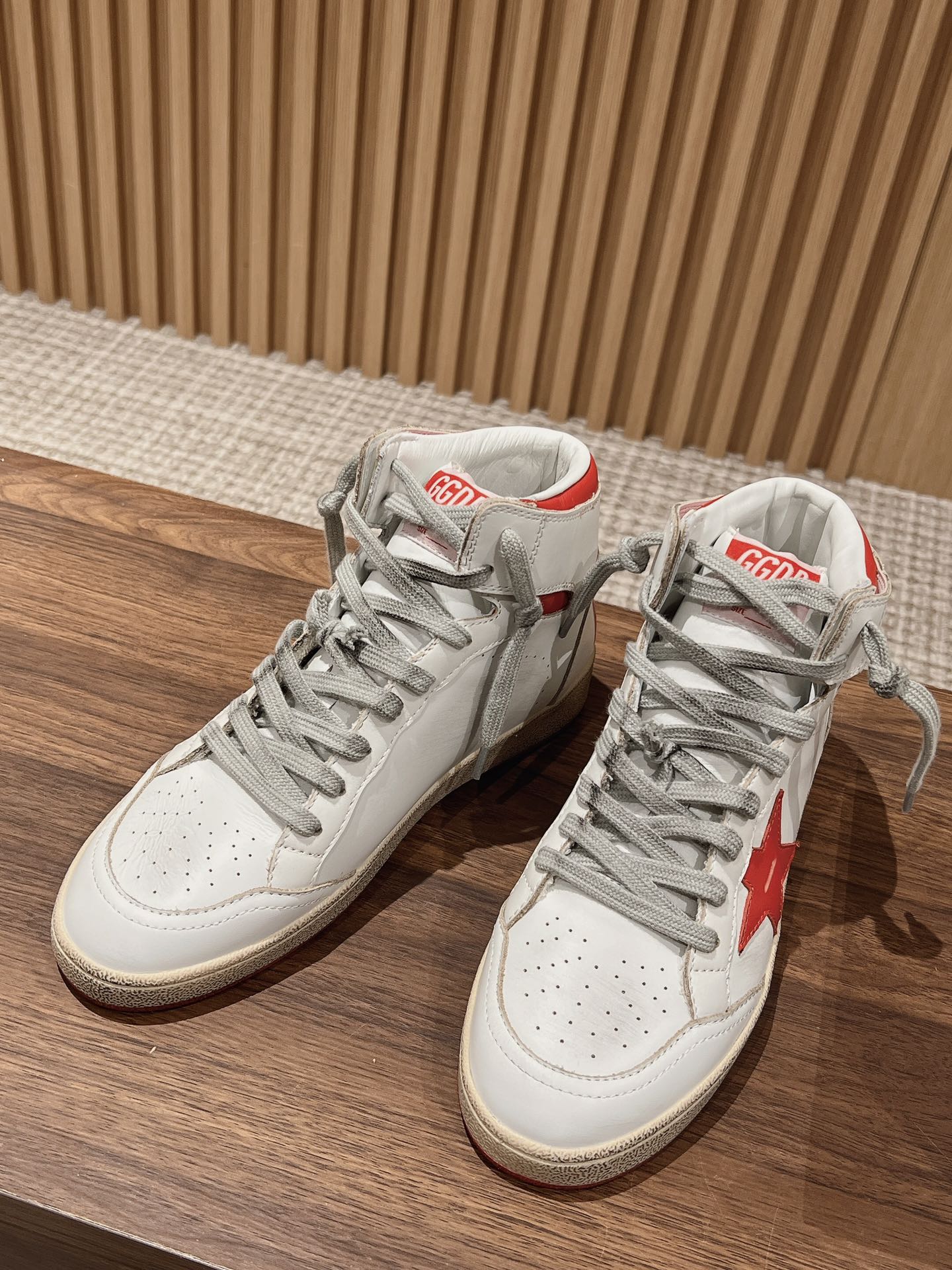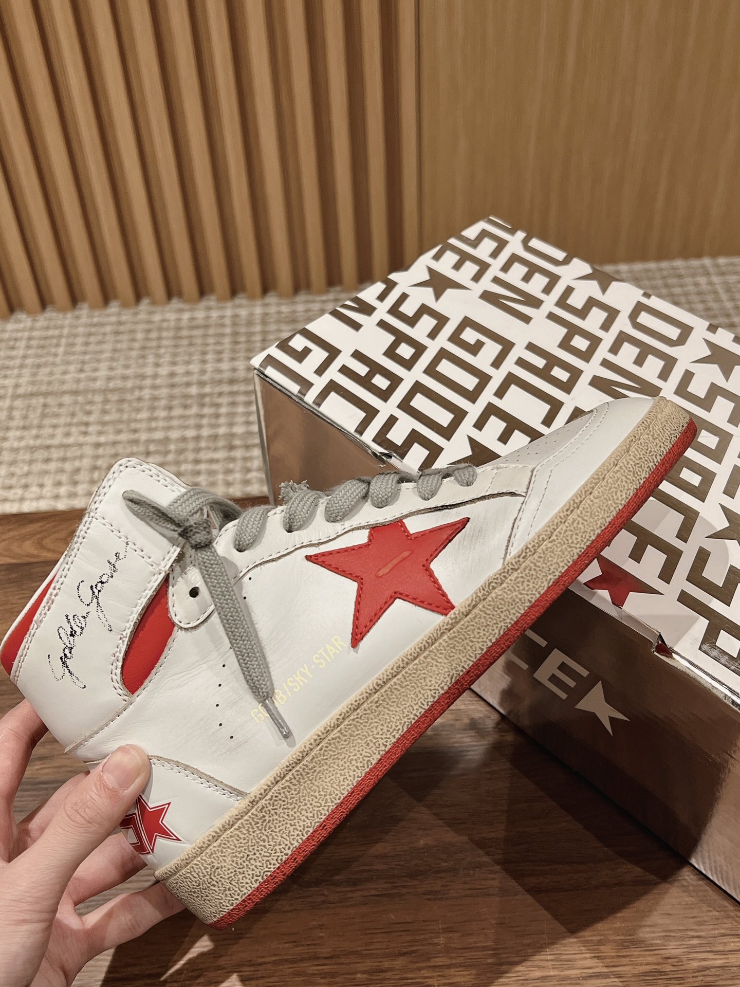 [Top Version] #Couple Style Golden Goose • ❥SNGG Introduction | Sky-Star High-Top Sneakers Design Details: Multi-color, side with iconic star patch, glitter details, distressed effect, ankle-high, tongue with logo patch, front lace-up, round toe, heel with brand logo, rubber flat sole. - MATERIAL - ⇢Upper: Calf leather (distressed) ⇢Lining: Cowhide + Fabric ⇢Sole: Original 1:1 TPU sole ⇢Size: 35-44