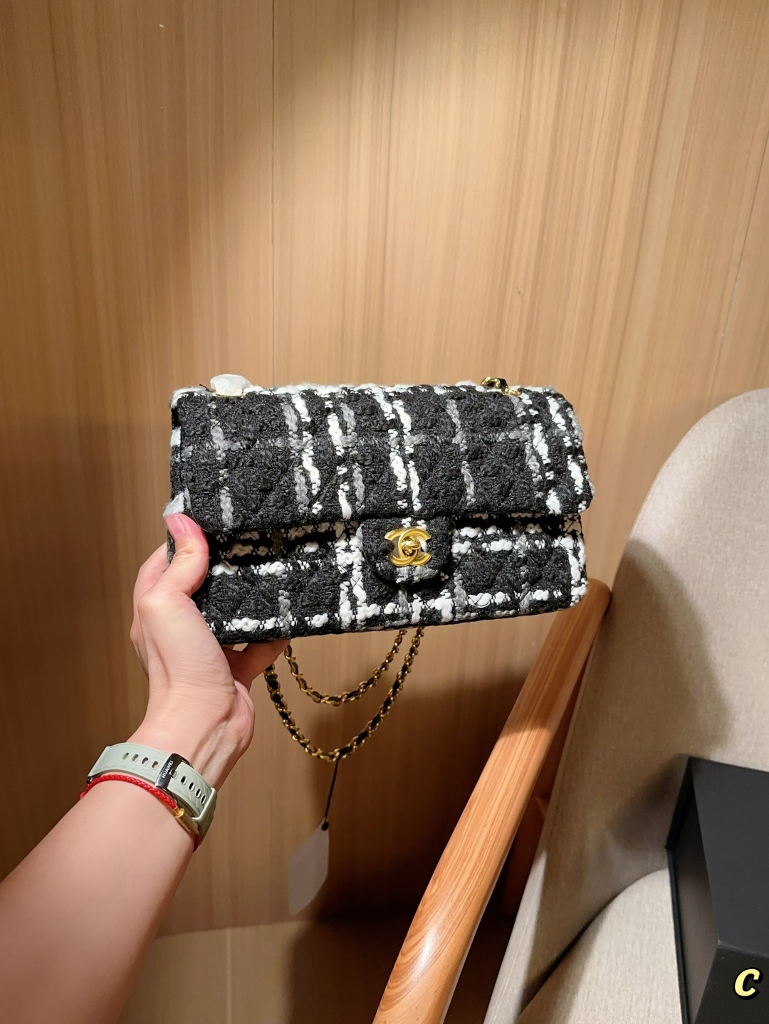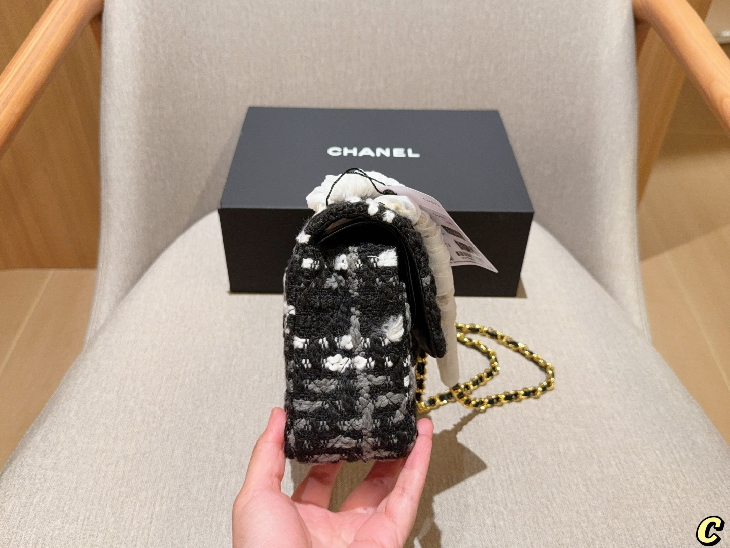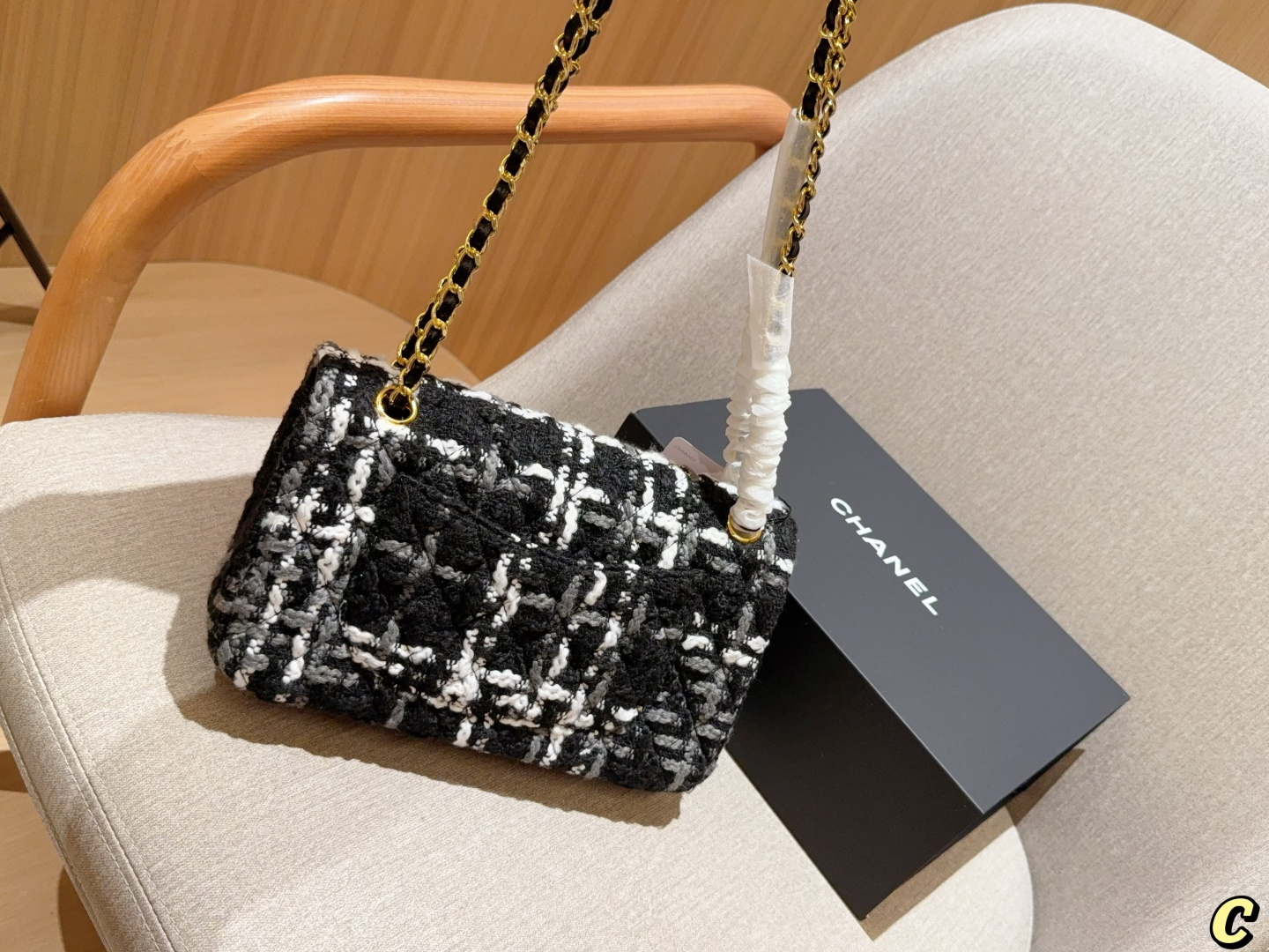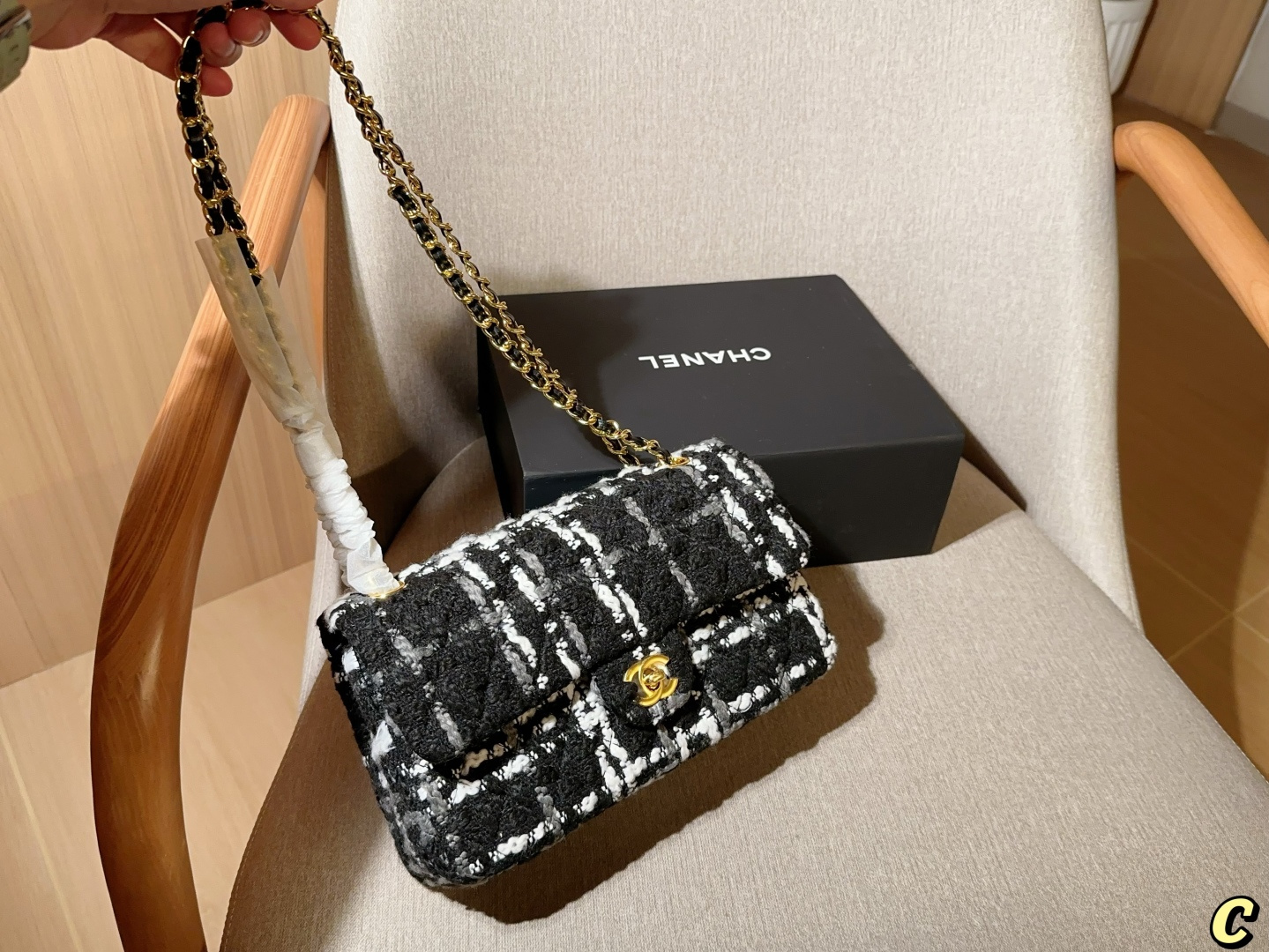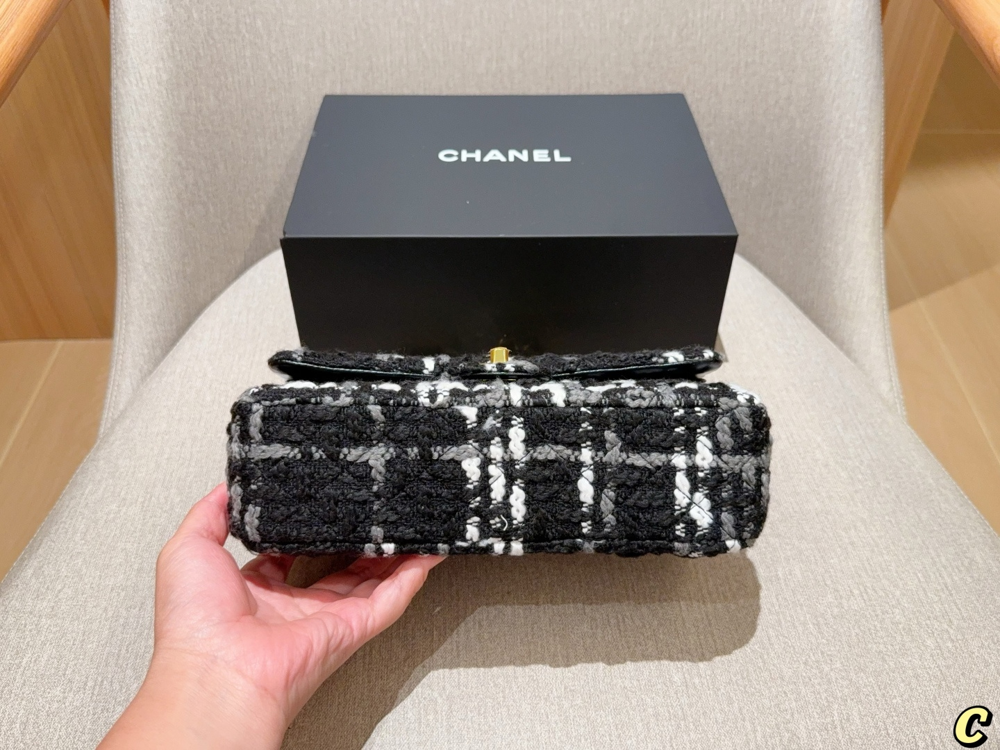 Chanel new tweed CF chain bag, 25cm, gift box packaging.