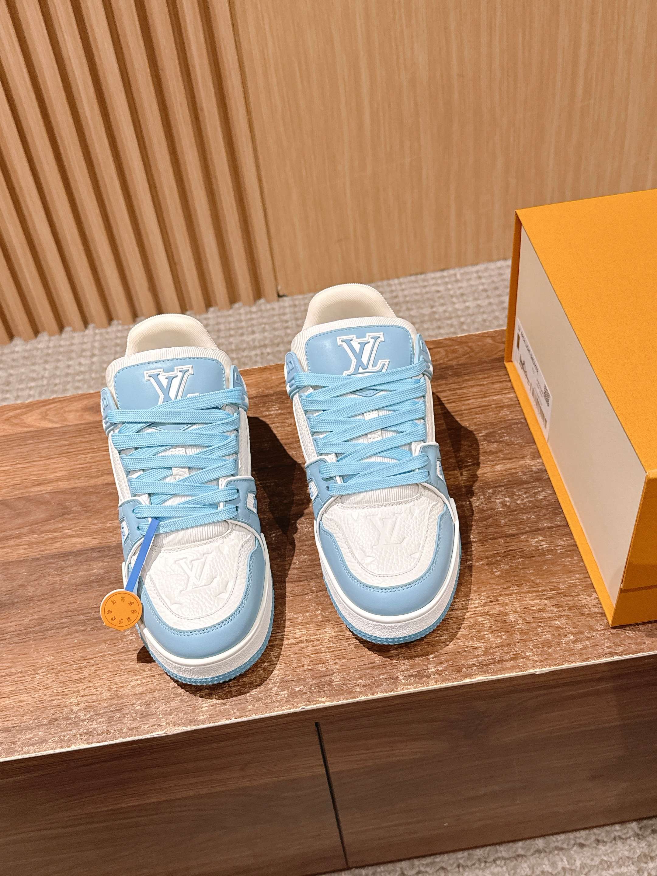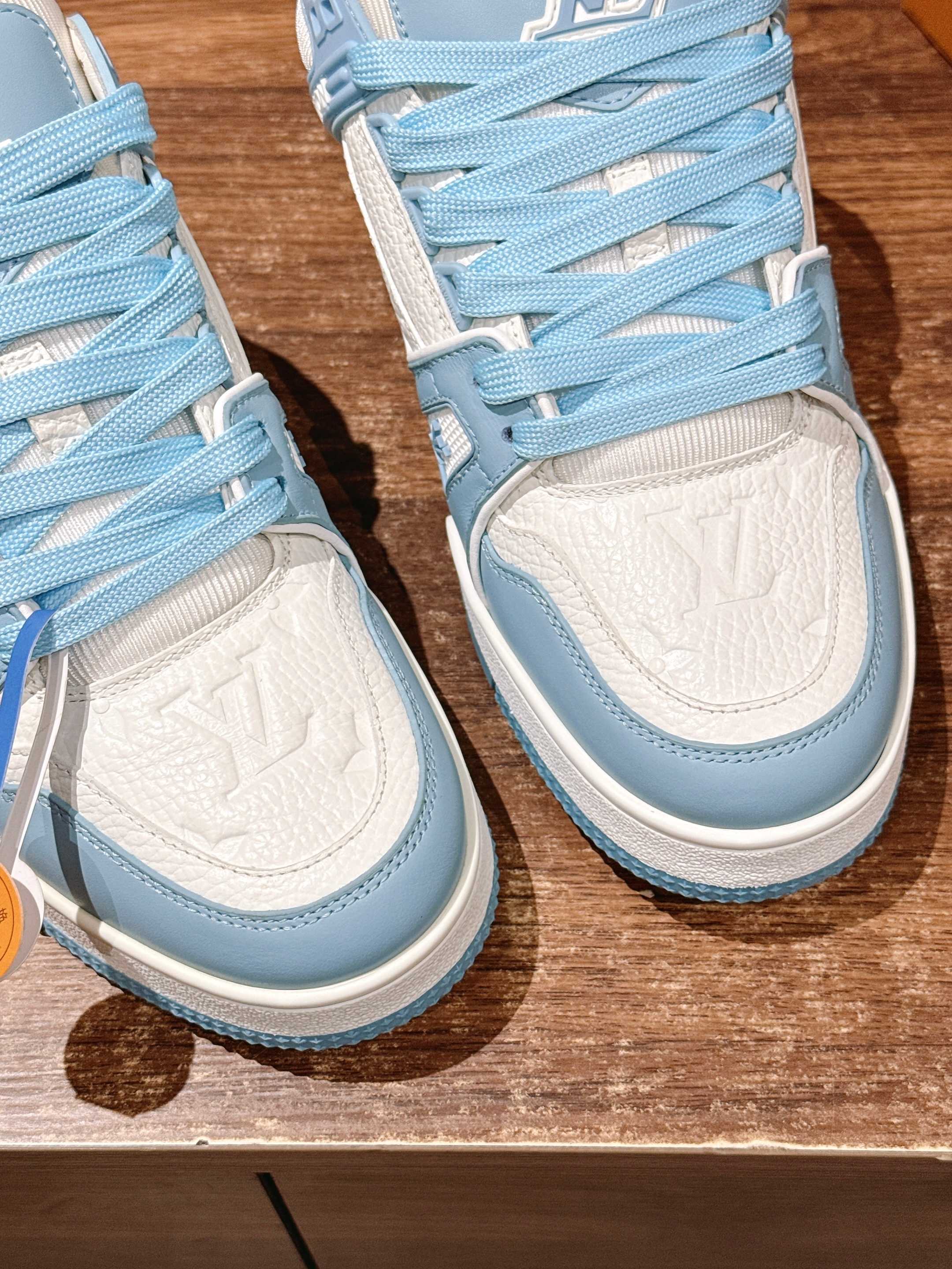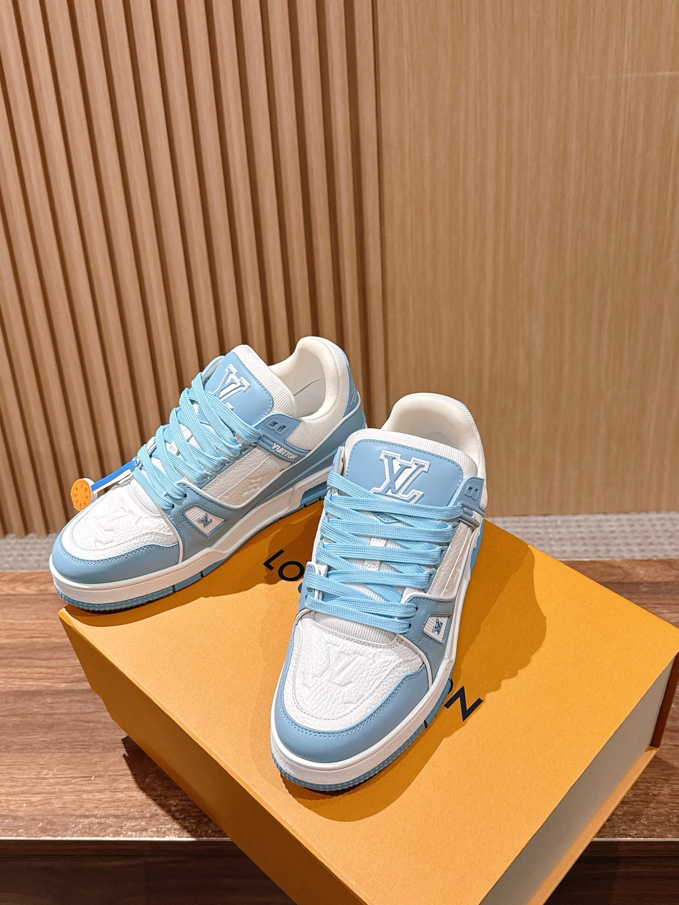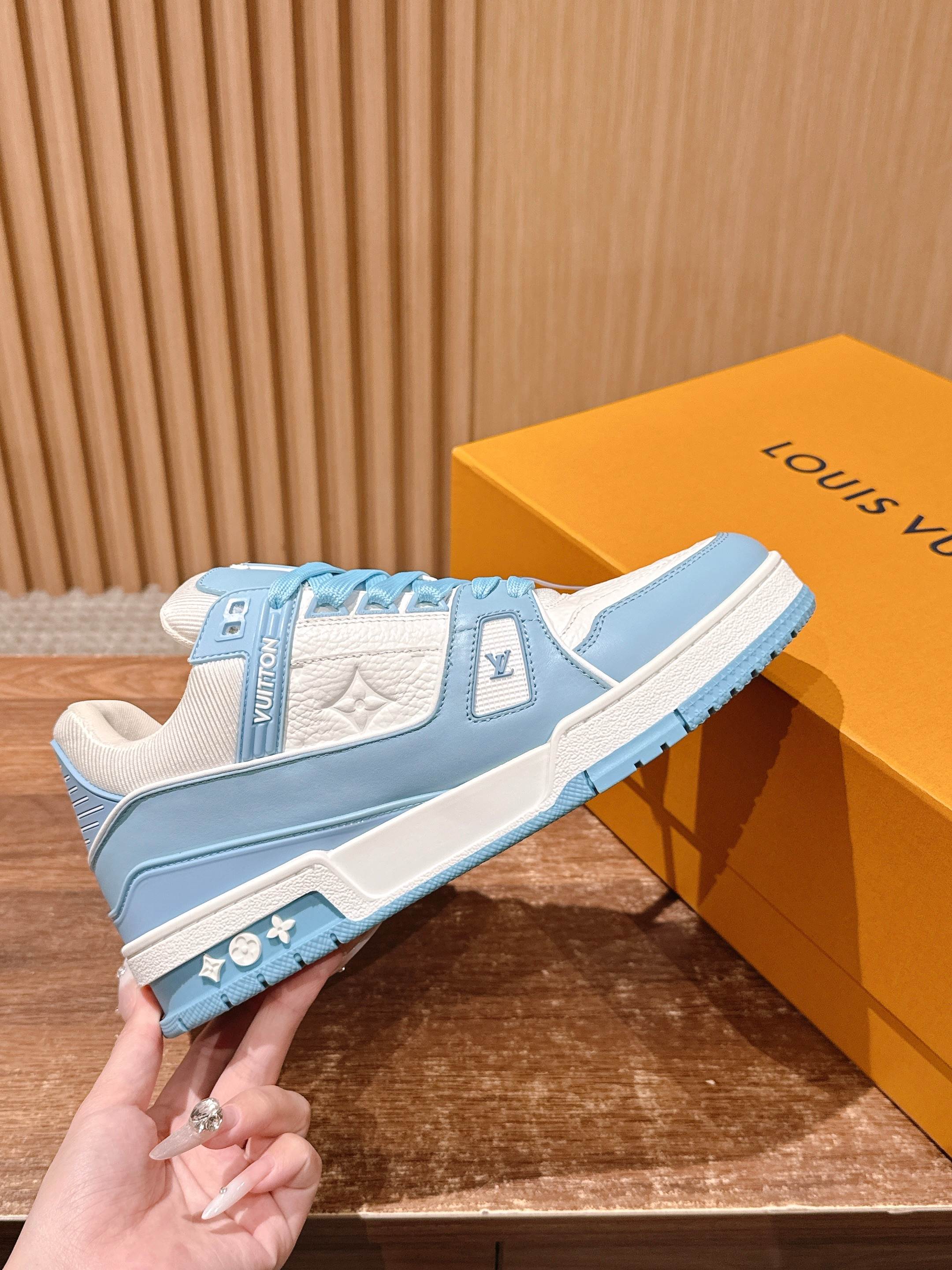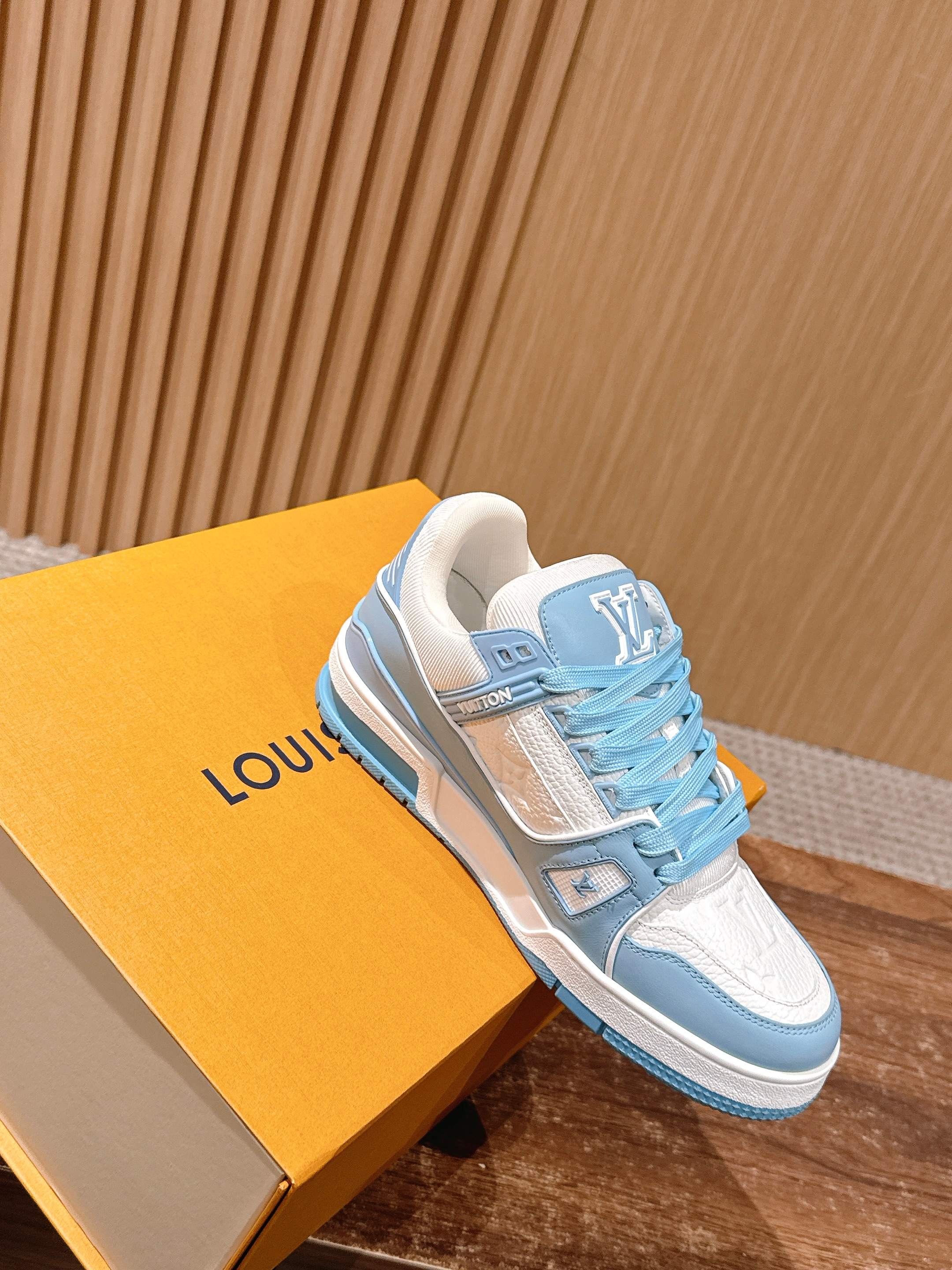 There are many classic color schemes for the LV Trainer. Although the designs this season are quite similar in shape, there are still many highlights in the details! Each pair requires 7 hours of sewing workmanship. The tongue, sides, and back are adorned with LV letters. The sides are decorated with the Vuitton signature.